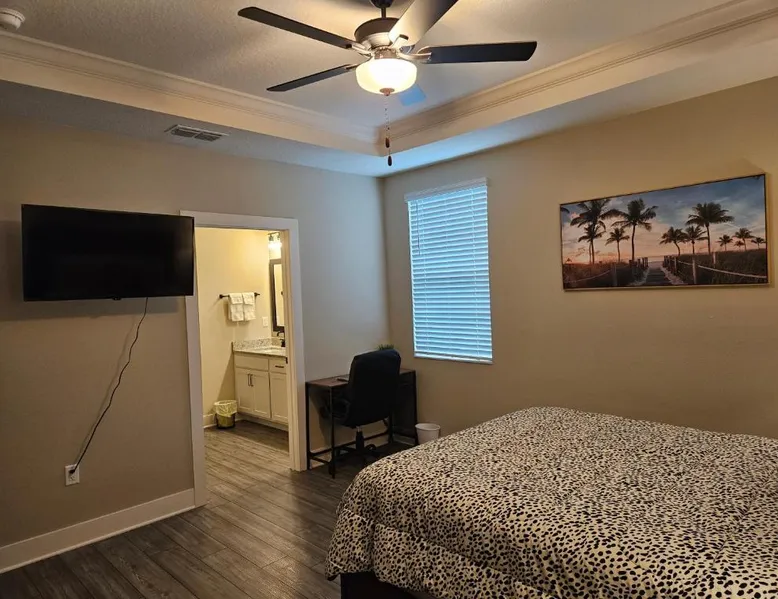 Comfortable Accommodations: Endearing Private Bedroom in Shared House in Reunion Resort offers a guest house experience in Kissimmee. The property features a rooftop swimming pool, indoor swimming pool, fitness center, and a beautiful garden. Modern Facilities: Guests can enjoy free WiFi, a restaurant, bar, and outdoor seating areas. Additional amenities include a hot tub, tennis equipment hire, and a children's playground. Free on-site private parking is available. Convenient Location: Located 25 mi from Orlando International Airport, the property is close to attractions such as ESPN Wide World of Sports (11 mi) and Disney's Animal Kingdom (11 mi). Highly rated by guests for its excellent facilities. Guests will have a special experience as this suite features a infinity pool and a hot tub. The suite features 1 bedroom and 1 bathroom with a walk-in shower and free toiletries. The air-conditioned suite offers a flat-screen TV, a washing machine, soundproof walls, a seating area as well as garden views. The unit offers 1 bed.