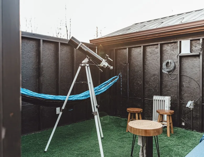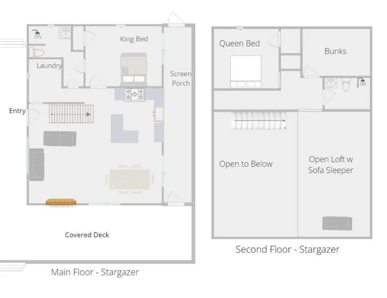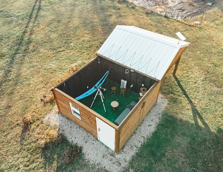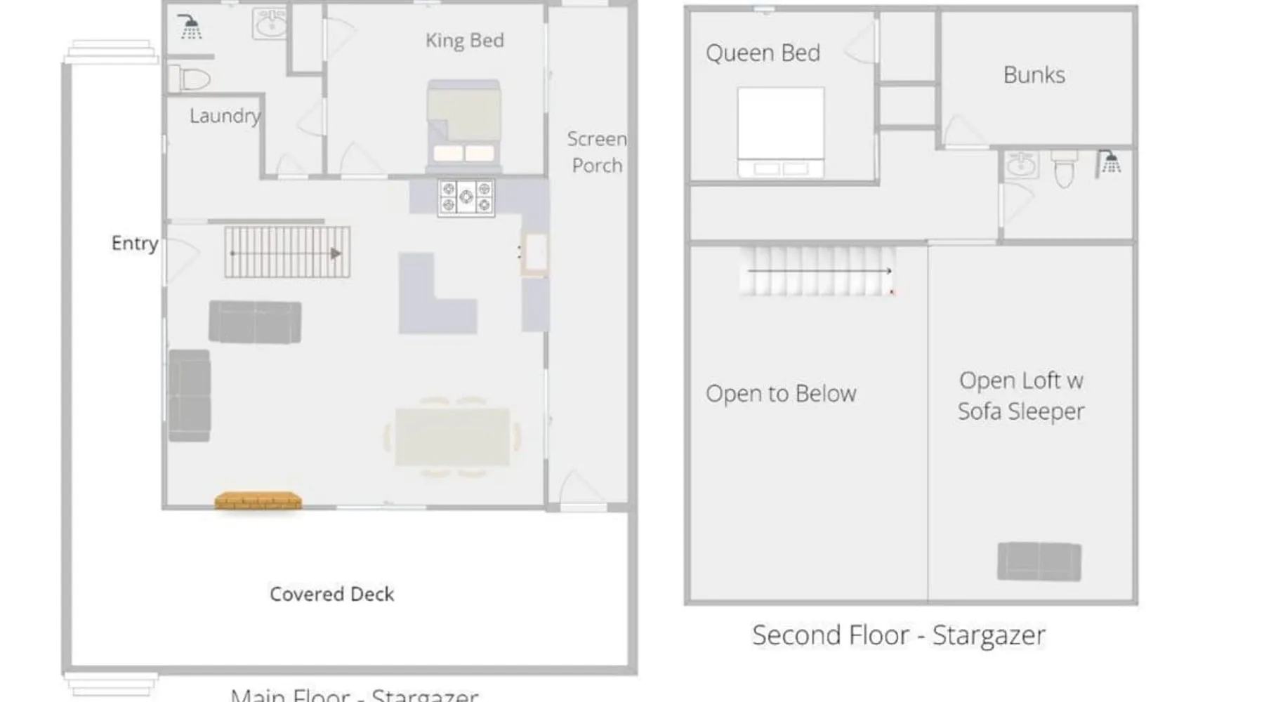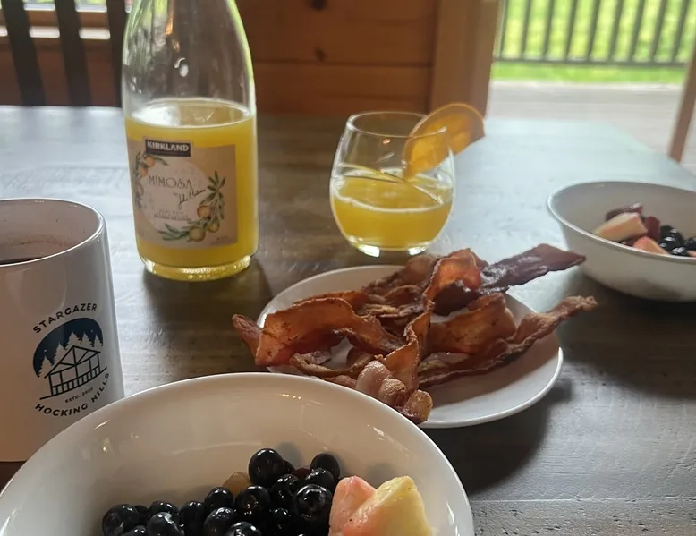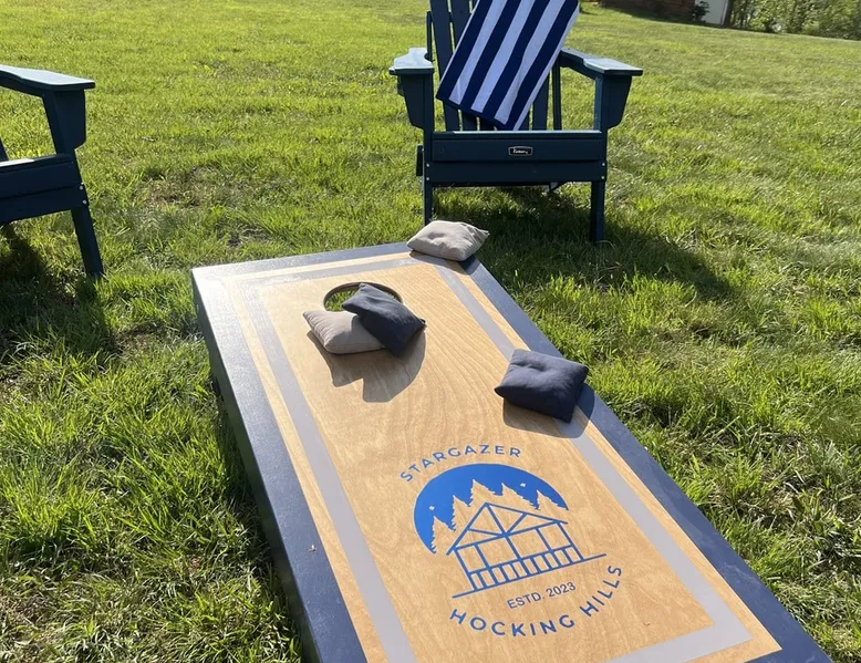 "Stargazer was absolutely beautiful! I’ve been going to Hocking Hills for 11 years & this place is on my top favorites!" - Brittney Stargazers, vacationers, families and friends - this is your spot! Escape to this beautiful cabin in the woods, featuring an open-sky celestial observatory, 11 acres with a stocked fishing pond and just 15 minutes to many of the most popular Hocking Hills attractions. Stargazer is loaded with premium features and amenities that will blow you away (starting with the The space "I have stayed at a lot of cabins in Hocking Hills and this was by far the best one yet." - Holly Welcome to Stargazer Hocking Hills, a family-owned vacation cabin where you'll experience adventure with friends and family while you explore the heavens and the hills! Spend quality time together on the oversized covered deck as you grill your evening meal, watching the sunset and the night sky extravaganza to follow. Chat about the day's hikes adventures throughout the interior of the genuine log cabin, huddled around the fireplace or large kitchen table in the main living area, or settled into the cozy loft with a digital board game on our Infinity Table. As you wind down, relax in the hot tub and give your body a break after a full day hiking the trails. Settle in for the night on one of our premium mattresses and fall asleep as you gaze at the stars outside your window. Wake in the morning to the amazing sunrise, an invigorating cup of coffee from our French press and a walk around the 11 acres of nature at its finest - including open grasslands, wooded hills and a stocked fishing pond. We know you'll be dreaming about this space for years to come after you've spent some of your best moments here. "We left feeling grateful for the unforgettable memories created in this stunning home!" - Shannon We've put a lot of love and care into the home to make it not only a wonderful place for a getaway for you and your family and friends, but also an incredible experience you'll be talking about for years. We know you'll enjoy every minute as much as we do, escaping to your own adventure. We're happy to be able to offer Stargazer for you to make your own memories in. Let us know if there is anything we can do to make your stay perfect. - The Martin Family FIRST FLOOR When you arrive, you'll enter through the rustic front door right off the wraparound deck using our secure keypad check-in. Walk into the primary living area to the right with cozy gas fireplace, 65" TV and comfortable seating for your entire group. "This kitchen is a dream and had everything we needed to cook at home." - Anne Straight ahead, you'll enter the fully stocked open kitchen with large breakfast bar island and dinner table - seating for 12 total. The kitchen is fully stocked - offering full sized appliances, dishes, cookware, Keurig and French press coffee machines, and host of other tools and kitchen items to complement your cooking needs. Also on the main level, the master bedroom offers a king-sized bed with premium mattress, Roku/YouTubeTV, closet space and sliding door walk-out to the screened-in deck. Connected is a dual-entry expansive master bathroom, with spacious shower and dual sinks. Need to get some laundry done during your stay? Use our spacious laundry room, with detergent provided, or hang your coats out of the way. UPPER FLOOR Climb the stairs to another excellent gathering space, with relaxing seating in the large loft and huge open-view windows. Prepare to battle your friends and family on hundreds of games on the Infinity game table, relax on the oversized sleeper sofa or settle in for a movie or the big game on the 65" TV! You'll be blown away by the featured hi-res photos of the astronomical wonders, all taken from our very own observatory on the property! Need to get a bit of work done while the family plays? Retreat to our cozy remote-work space with adjustable height desk and ergonomic office chair in the loft nook, or grab a book for anyone in the family to dive in to. Additionally on the second floor, you'll find a full bathroom to the right with vaulted ceiling and skylight. Two bedrooms round out the space - one comfortable queen bed setup with a TV and in-room closet, and our bunk room - perfect for the kids to settle into or any of the "big" kids in your group. This room also hosts "the best bed in the house", with a perfect view of the night sky to fall asleep to! OUTDOORS "Joel's place is perfect for a stay in Hocking Hills! The location was great. It was a quick drive to all the hikes and highlights we had scheduled - Ash Cave, Old Man's Cave, etc were a mere 10 minutes away. It's called Stargazer, but Moongazer would also be apt... our group was blown away by viewing the moon on two clear night's from the observatory! Add in an outdoor fire ring, ample property space, a hot tub, and a beautiful open living space indoors and we couldn't have asked for a better long weekend away!" - Emily The real crowd-pleaser for our home is the outside setup, highlighted by the only private open-sky observatory on the rental market! When the sun goes down, slide the motor-driven roof off and gaze in awe at a sky rarely witnessed with this level of clarity and beauty in pure darkness. Give our high-end Celestron telescope a try and take your own heavenly pictures with the smart phone adapter. Relax in the double hammock or on the futon with your closest friends - in late spring through early fall, sleep under the stars! Explore our 11 acres - fish in our stocked quarter-acre pond, blaze your own trail through the wooded ravine, and play catch with the kids or the dogs. Fire up the grill, relax on the oversized covered porch, or feed your competitive side with our ping pong table and Stargazer-branded cornhole set. This place truly has it all! BEDROOMS AND BATHS - Main Floor - Master Suite King with shared Full bath - Roku and YouTubeTV - Sliding-door access to screened in porch - 2nd Floor - Guest Room Q