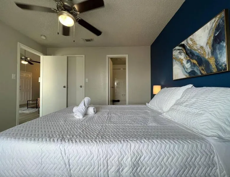 Comfortable Living Space: Cushy 2BD Apt Austin Texas offers a spacious apartment in Austin, featuring two bedrooms, two bathrooms, and a comfortable living room. Guests enjoy free WiFi, air-conditioning, and a private pool. Modern Amenities: The apartment includes a fully equipped kitchen with a refrigerator, oven, stovetop, microwave, and tea and coffee maker. Additional amenities include a washing machine, fireplace, balcony, and free on-site private parking. Convenient Location: Located 20 mi from Austin-Bergstrom International Airport, the property is close to attractions such as Dell Diamond (11 mi), University of Texas at Austin (14 mi), and Mount Bonnell (11 mi). Reception staff speak English. The private pool and fireplace are the special features of this apartment. The well-fitted kitchen features a stovetop, a refrigerator, an oven and a microwave. The apartment provides air conditioning, a washing machine, a private entrance, a tea and coffee maker, as well as a flat-screen TV. The unit offers 3 beds.