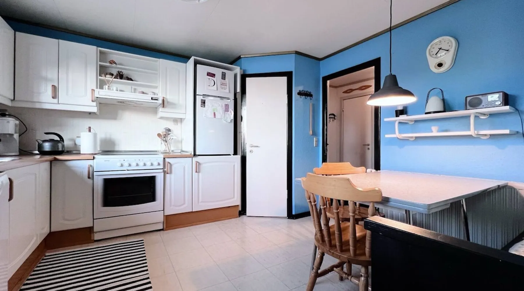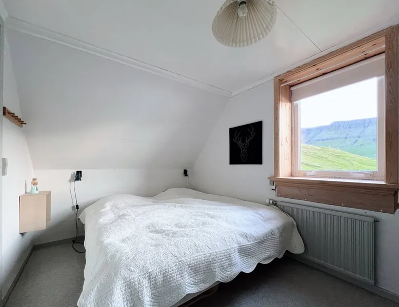 This two-storey, cosy house is located "off the beaten track" in Suðuroy, Nes. Close by are cliffs and a large beach. This house has a kitchen with all the amenities you will need, a living room, and a toilet downstairs. Upstairs, there is one bathroom and two bedrooms. Other things to note Bedding and towels For your comfort, bedding and towels are included in the price (130 DKK per person). If you prefer to bring your own, we’re happy to offer a discount – just let us know after booking, and we’ll refund 130 DKK per person.