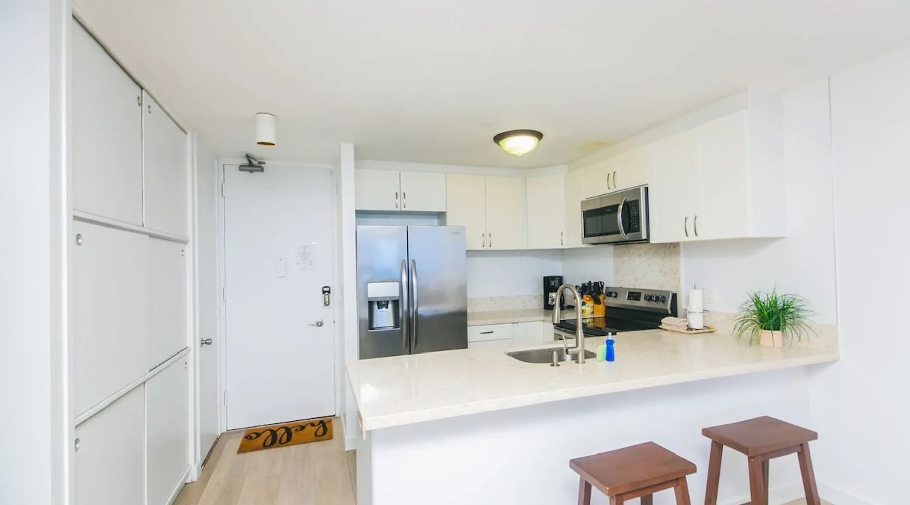 Ilikai Marina is situated directly on the water with a 180-degree ocean view, right around the corner from the Hawaii Convention Center, Ala Moana Center and Waikiki Beach. Condo has a queen bed and sofa sleeper, FREE WIFI, cable TV, central AC in the condo. There is a shared & paid laundry facility on the 8th floor. Parking is available in the building for an additional cost. The condo is fully furnished and ready for move in! Registration details 260100020207, 1684, TA-016-821-4528-01