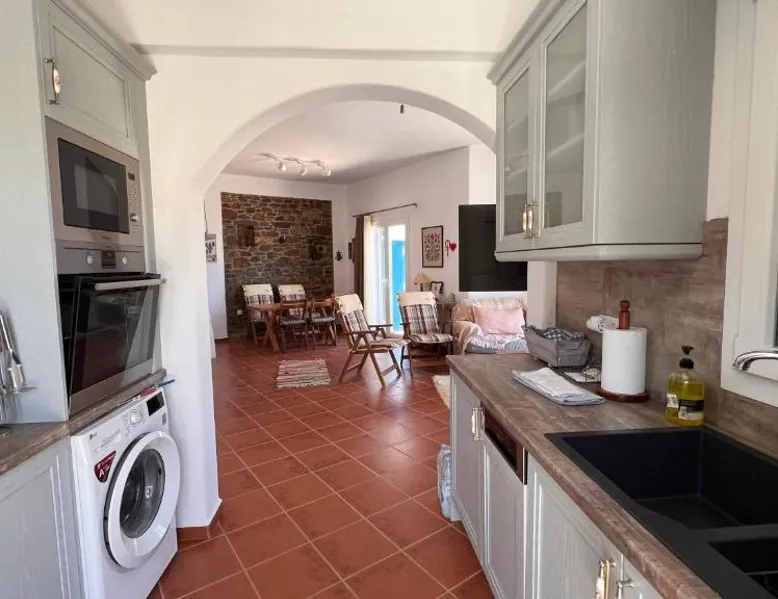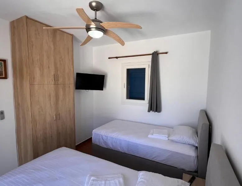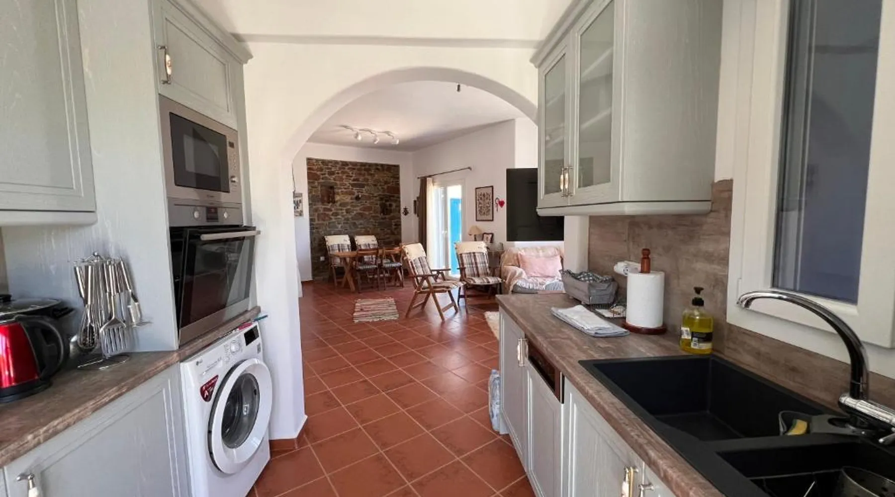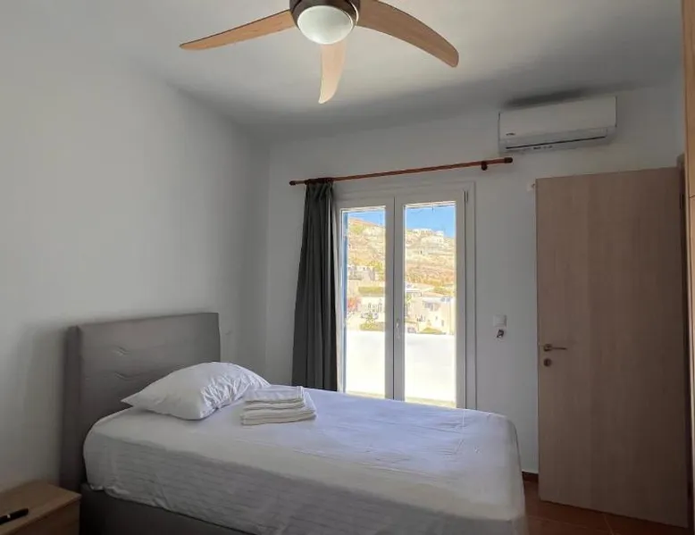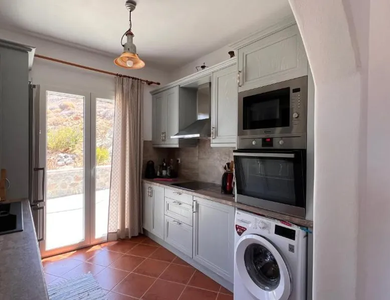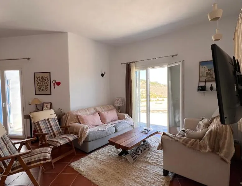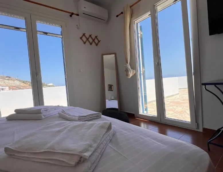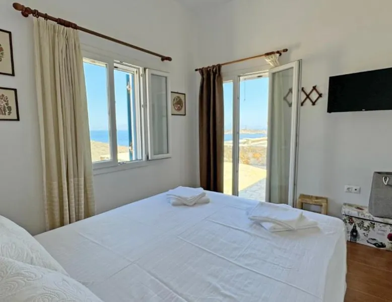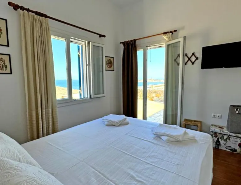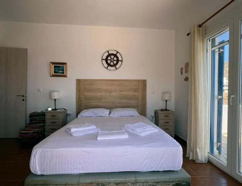 Sun Terrace and Garden: Lighthouse View Maisonette in Syros offers a sun terrace and a lush garden. Guests enjoy free WiFi throughout the property, ensuring connectivity during their stay. Comfortable Accommodations: The villa features three bedrooms and two bathrooms, equipped with air-conditioning, balconies, and sea views. Family rooms provide ample space for relaxation, while the ground-floor unit offers easy access. On-Site Facilities: Amenities include a coffee shop, outdoor seating area, and free private parking. Additional facilities include a washing machine, patio, kitchen, and barbecue, catering to all guest needs. Nearby Attractions: Azolimnos Beach is 1.2 mi away, while Saint Nicholas Church and the Industrial Museum of Ermoupoli are 3.1 mi from the property. Syros Island National Airport is just a few steps away, offering convenient travel options. Guests will find a stovetop, a refrigerator, a dishwasher and kitchenware in the well-equipped kitchen. The villa also offers a barbecue. The air-conditioned villa provides a flat-screen TV with satellite channels, a washing machine, a private entrance, soundproof walls as well as sea views. The unit offers 4 beds.
