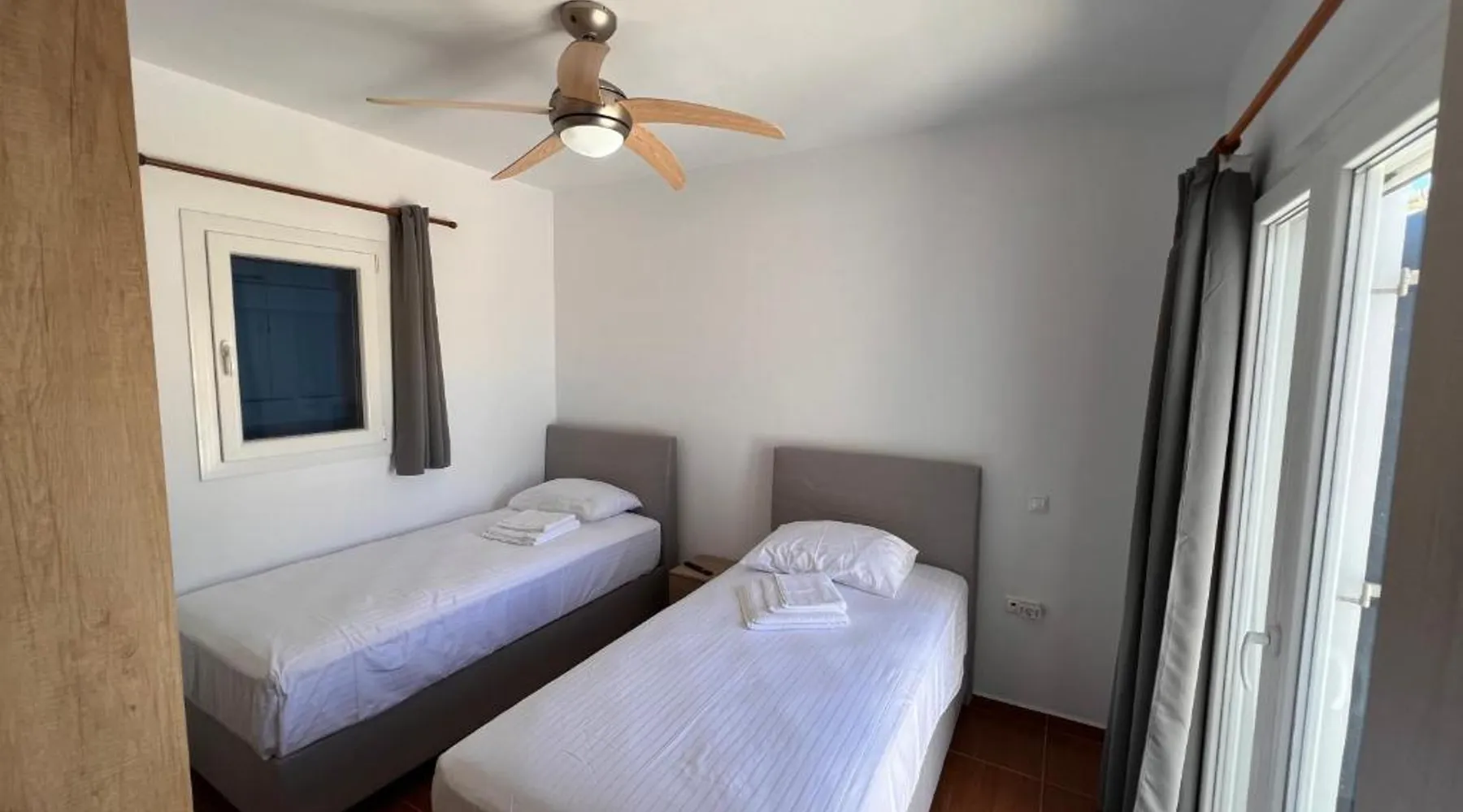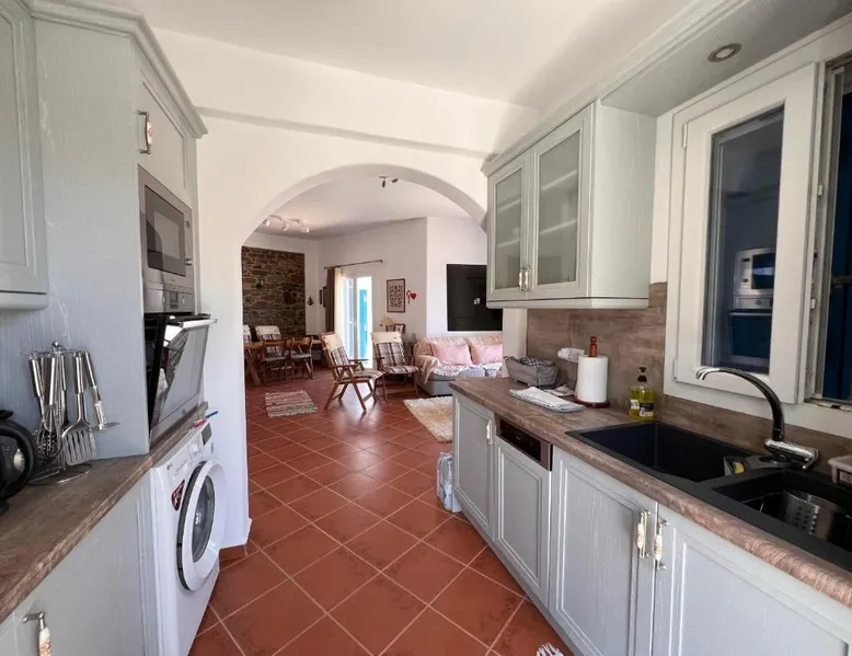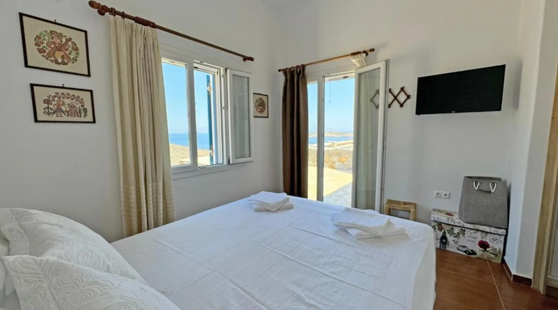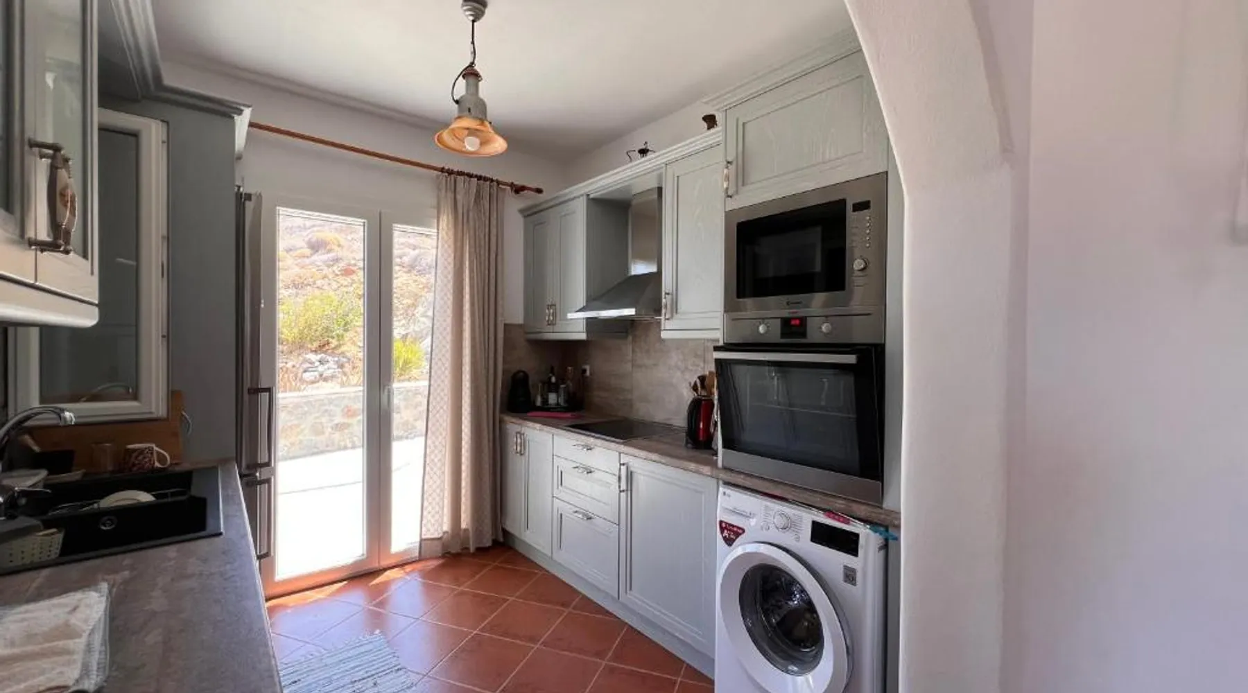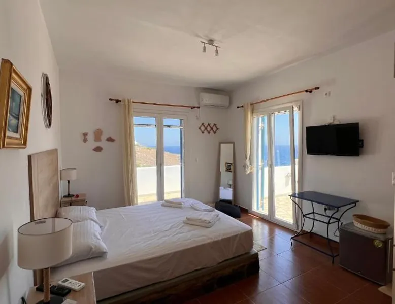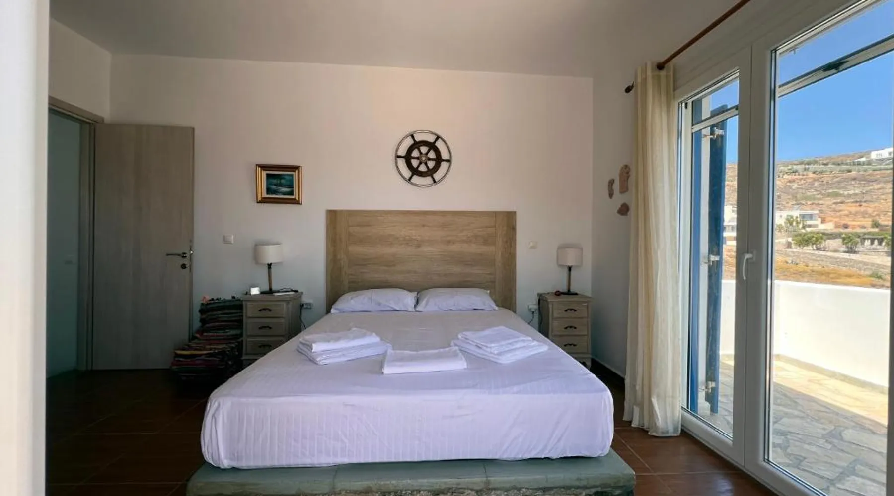 Sun Terrace and Garden: Lighthouse View Maisonette in Syros offers a sun terrace and a lush garden. Guests enjoy free WiFi throughout the property, ensuring connectivity during their stay. Comfortable Accommodations: The villa features three bedrooms and two bathrooms, equipped with air-conditioning, balconies, and sea views. Family rooms provide ample space for relaxation, while the ground-floor unit offers easy access. On-Site Facilities: Amenities include a coffee shop, outdoor seating area, and free private parking. Additional facilities include a washing machine, patio, kitchen, and barbecue, catering to all guest needs. Nearby Attractions: Azolimnos Beach is 1.2 mi away, while Saint Nicholas Church and the Industrial Museum of Ermoupoli are 3.1 mi from the property. Syros Island National Airport is just a few steps away, offering convenient travel options. Guests will find a stovetop, a refrigerator, a dishwasher and kitchenware in the well-equipped kitchen. The villa also offers a barbecue. The air-conditioned villa provides a flat-screen TV with satellite channels, a washing machine, a private entrance, soundproof walls as well as sea views. The unit offers 4 beds.