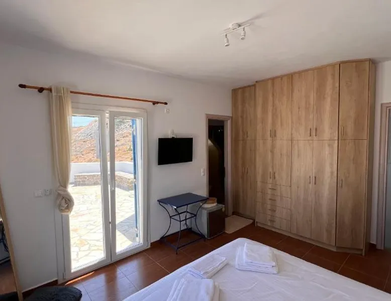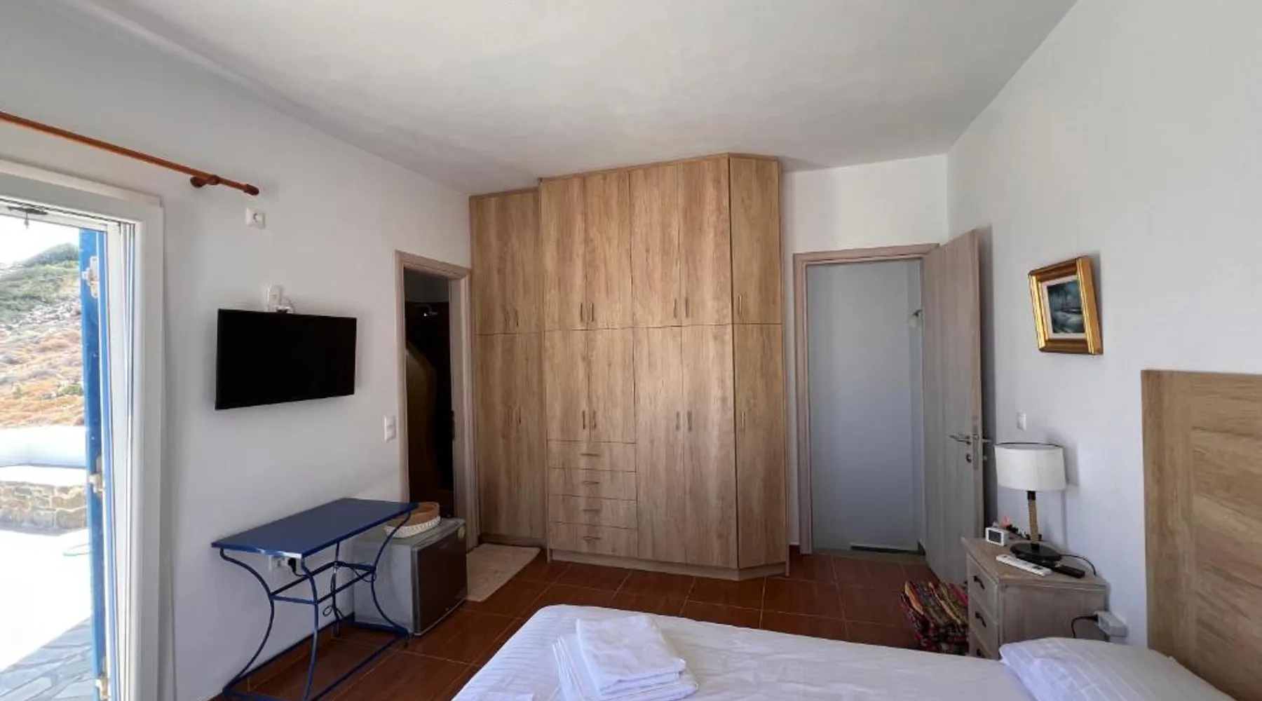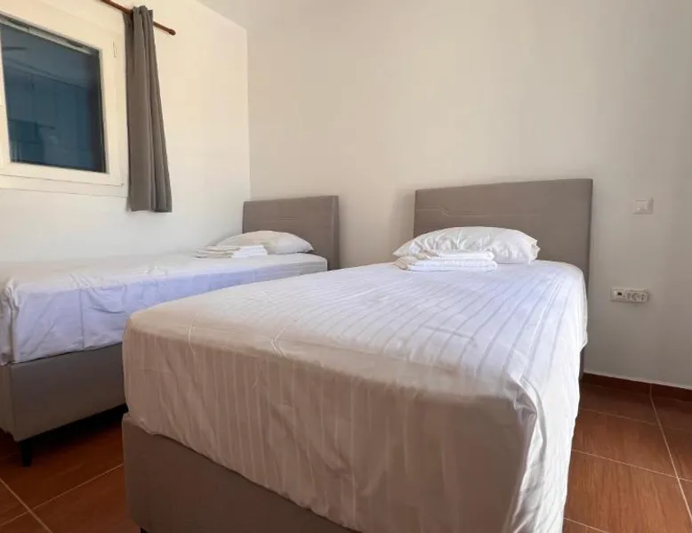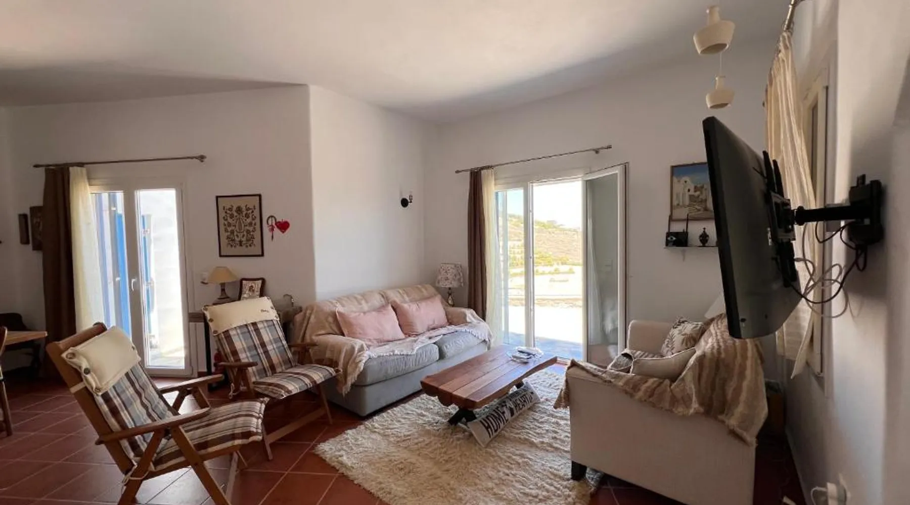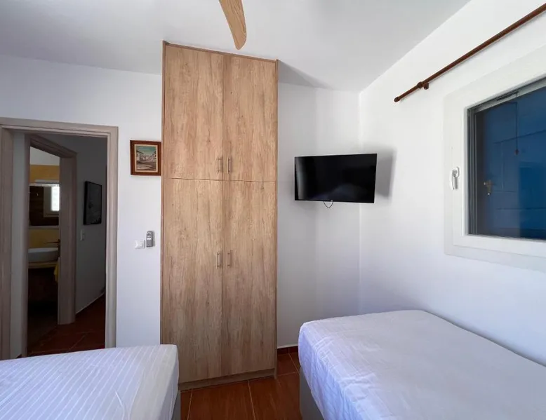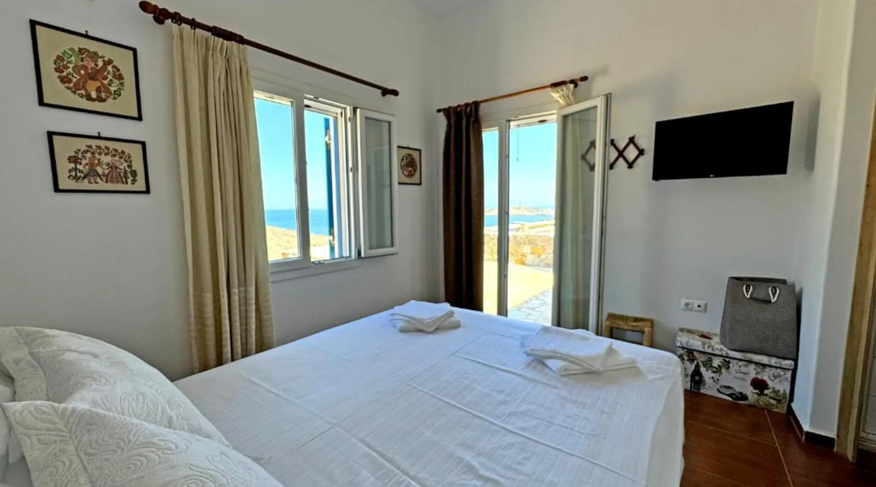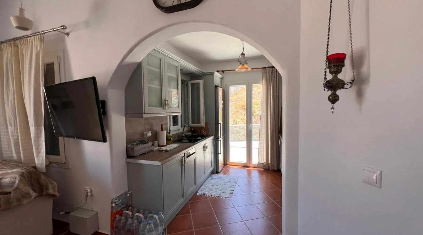 Sun Terrace and Garden: Lighthouse View Maisonette in Syros offers a sun terrace and a lush garden. Guests enjoy free WiFi throughout the property, ensuring connectivity during their stay. Comfortable Accommodations: The villa features three bedrooms and two bathrooms, equipped with air-conditioning, balconies, and sea views. Family rooms provide ample space for relaxation, while the ground-floor unit offers easy access. On-Site Facilities: Amenities include a coffee shop, outdoor seating area, and free private parking. Additional facilities include a washing machine, patio, kitchen, and barbecue, catering to all guest needs. Nearby Attractions: Azolimnos Beach is 1.2 mi away, while Saint Nicholas Church and the Industrial Museum of Ermoupoli are 3.1 mi from the property. Syros Island National Airport is just a few steps away, offering convenient travel options. Guests will find a stovetop, a refrigerator, a dishwasher and kitchenware in the well-equipped kitchen. The villa also offers a barbecue. The air-conditioned villa provides a flat-screen TV with satellite channels, a washing machine, a private entrance, soundproof walls as well as sea views. The unit offers 4 beds.