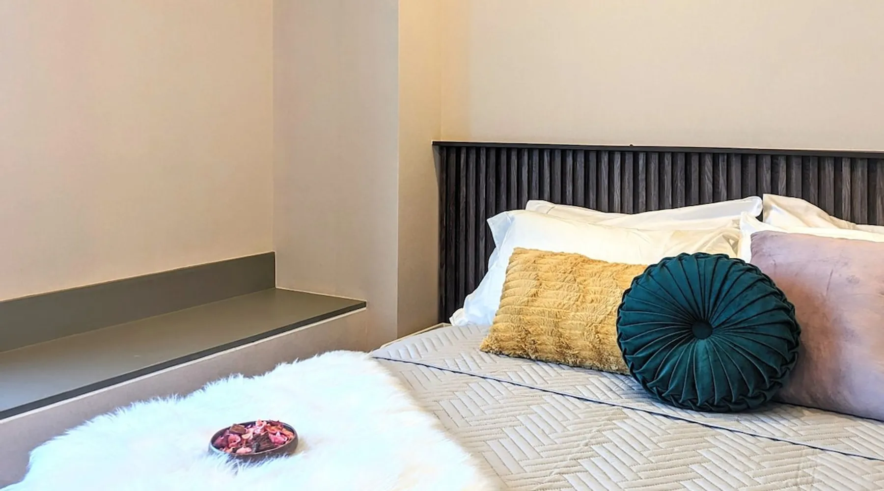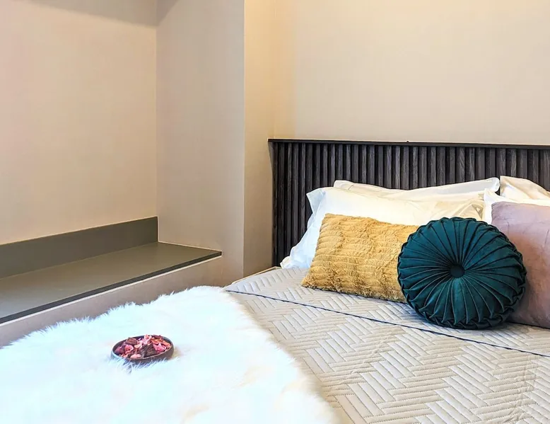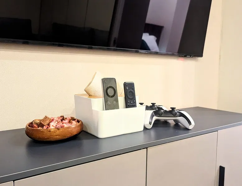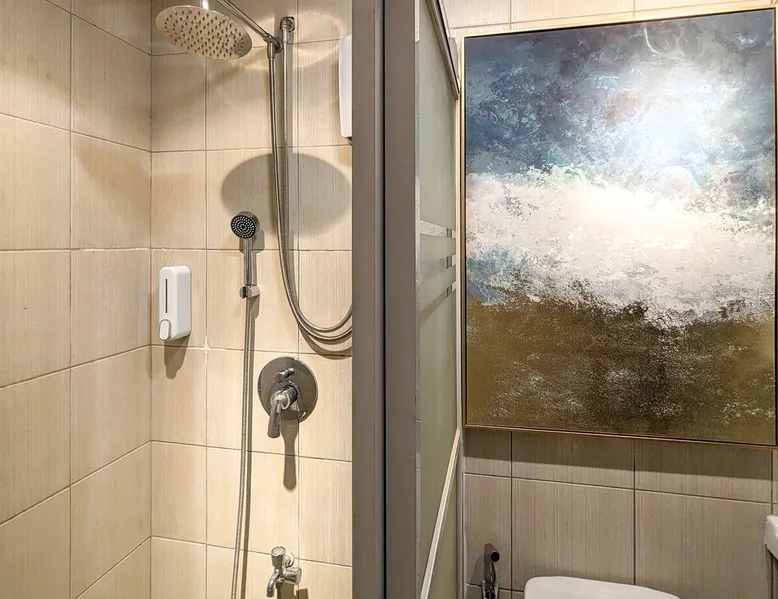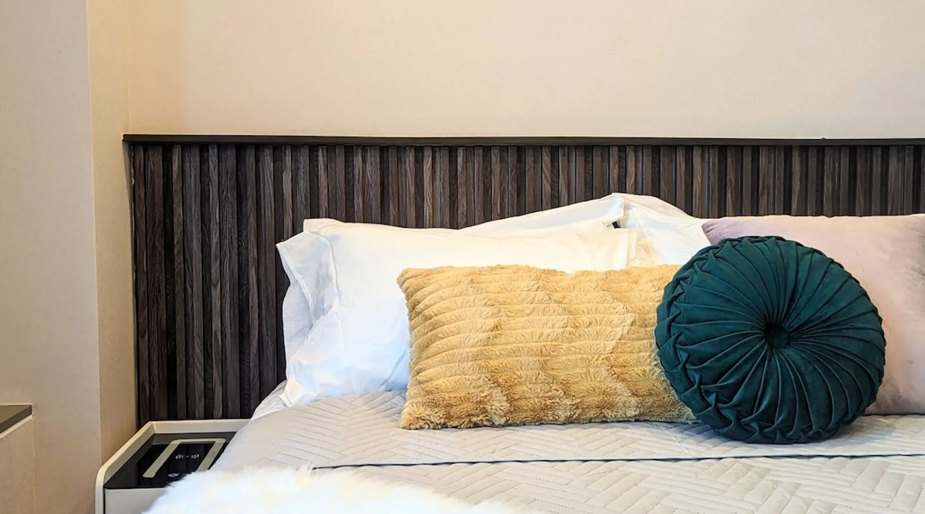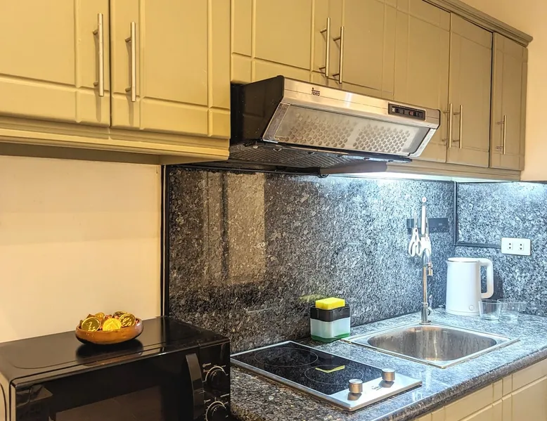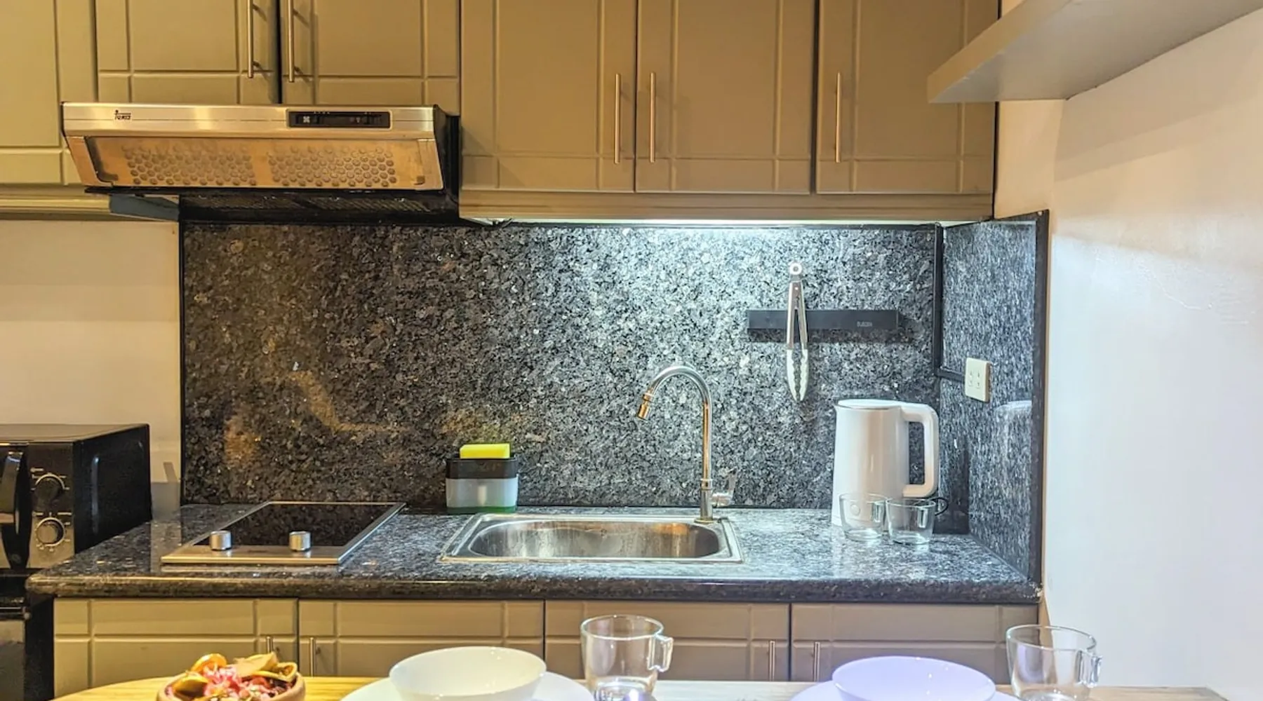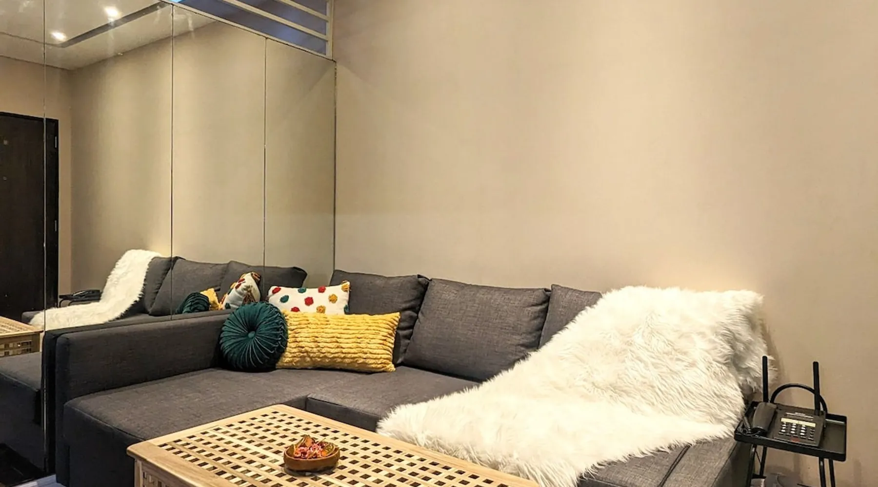Kick back and relax in this calm, stylish space in Alabang, Muntinlupa. 22nd floor facing Laguna bay skyline. Just in front and 1min walk to Festival Mall. With Parking Space and Pool/Gym access for a fee. Wi-Fi & Netflix ready in a 55" TV. Work from home or a quick staycation at its finest. The space 22nd Floor Laguna Bay Skyline 1 Bedroom Unit 1 queen bed and 1 very comfy foldable sofa good for 4 guests. Fee applies after 2 guests. 1min walk to Festival Mall Just accross southstation Alabang GUESTS PERMIT & DECLARATION -GUESTS after 2 guests, 3yrs old and above have an extra fee of 500php per guest per night. Please declare the final number of guests before booking, the fee will automatically reflect in the total price. Please avoid sneaking unauthorized guests, the lobby is entitled to check the guest permit upon arrival verifying the number of guests and their identity who the unit owners allowed to stay in the unit in a specific duration. Thank you for your cooperation. Guest access 500php fee per head per day to access Crimson Hotel Amenities (Gym & Pool) located in the same building of the unit. Other things to note The unit is located in a multi-use high rise condominium. Some units are for residential (local/expats/pogos), offices, airbnbs & etc. Condos share the same water and drain line where our uninvited guests, the baby cockroaches, likes to crash and pass thru. No judgment at all, but we're not sure if our neighbors or the other units are well maintained. If not, uncontrollable infestation will occur and we dont want that. 🫣 With this, we assure, we as hosts initiated installing a door seal and spreading a gel trap inside the unit as part of our insect prevention. Lastly, we on the dot clean and prepare the unit every guests checks out. In worst case scenario you still got to encounter the uninvited guests, there's a Baygon Insect spray inside the overhead cabinet above the kitchen sink for you to use. And please always clean up after cooking and eating inside the unit. Thank you so much for understanding! 🌞