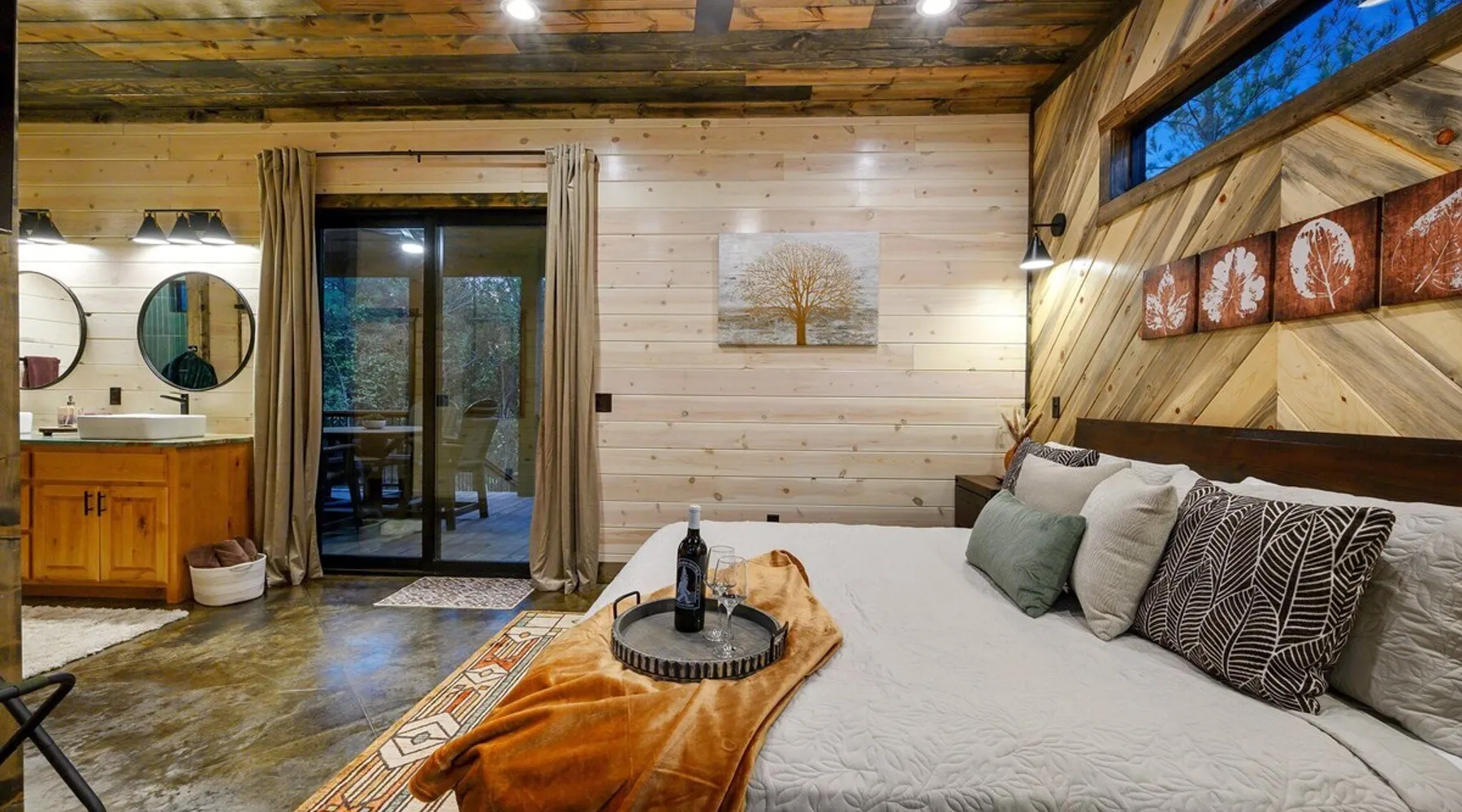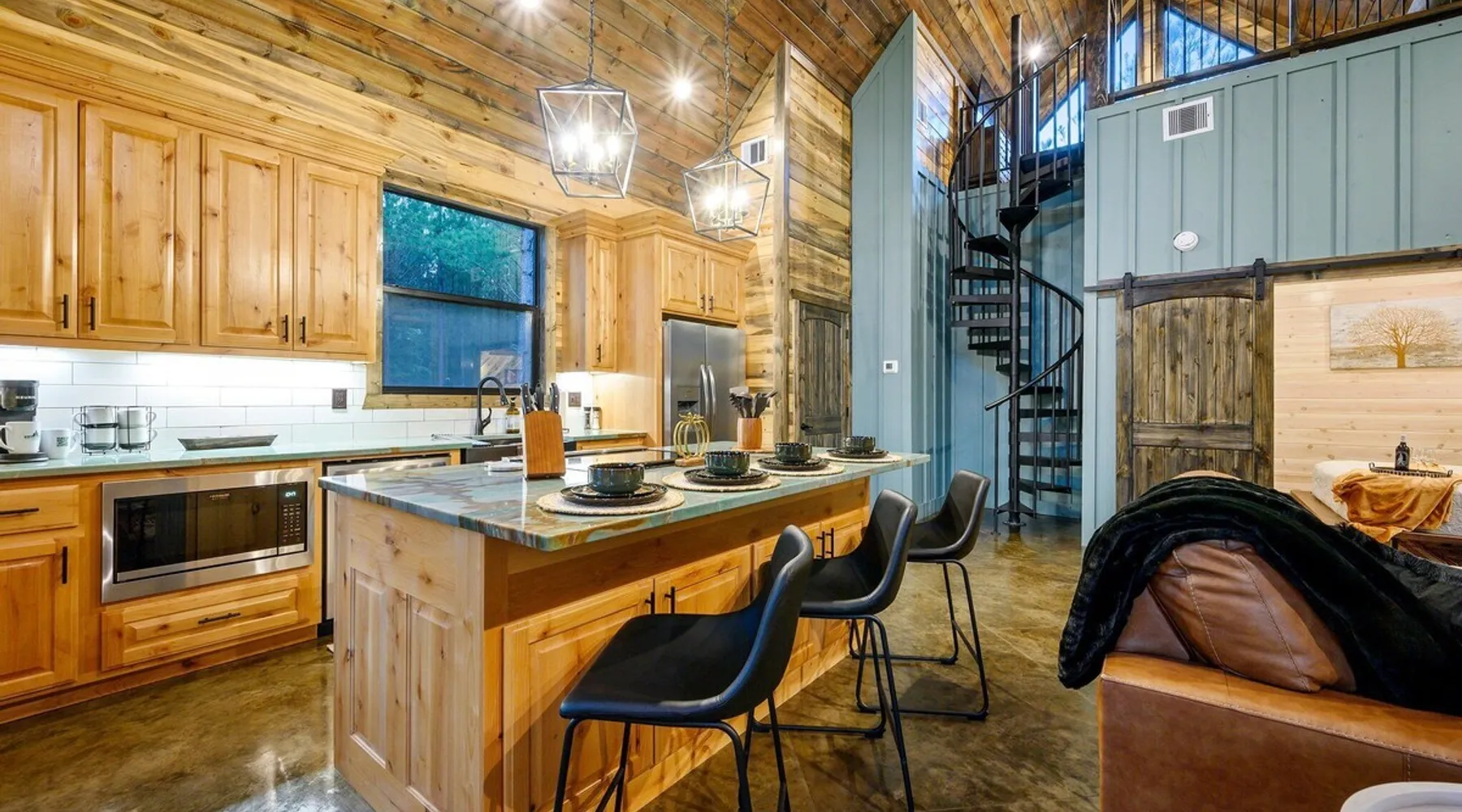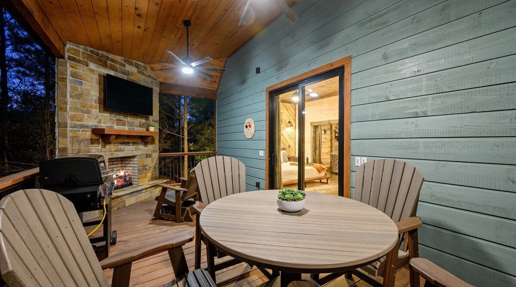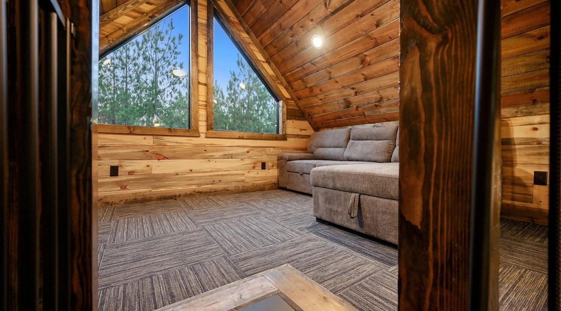 Tequila Sunset,Family,Loft,HotTub,Firepit,EV Plug Tequila Sunset - Hosted by Bravo Cabin Rentals, LLC Tequila Sunset is the epitome of a luxurious getaway with its cozy ambiance and inviting atmosphere. This one-bedroom rental in Broken Bow is perfect for up to three guests who are seeking a relaxing and rejuvenating stay. The highlight of this retreat is undoubtedly the hot tub, where you can soak your worries away while enjoying the serene surroundings. Additionally, the gas grill allows you to indulge in some outdoor cooking, while the fireplaces both inside and outside create a warm and cozy ambiance. The furnished back deck provides the perfect spot to unwind and take in breathtaking views of the surrounding nature. Inside, the living room boasts a comfortable leather couch, a lounge chair, and a gas fireplace, creating a cozy space to relax and unwind. For entertainment, a big-screen TV is also available. The kitchen and dining area are fully stocked with all the essentials you might need during your stay. From a toaster and blender to a Keurig coffee maker (with a starter pack of coffee provided) and a crockpot, you'll have everything you need to prepare delicious meals. The island features four bar stools, providing ample seating for dining or enjoying a quick snack. The bedroom offers a king-sized bed, ensuring a restful night's sleep. Side tables with storage on both sides of the bed provide convenience, while a big-screen TV allows you to unwind with your favorite shows. The bedroom also offers direct access to the patio, allowing you to step outside and enjoy the fresh air. The ensuite bathroom features a double vanity sink, a private toilet, a walk-in shower stocked with shampoo, conditioner, and shower gel, and a luxurious soaker tub for ultimate relaxation. Upstairs, the cozy loft features a game nook with a sofa sleeper, providing additional sleeping accommodations for guests. The outdoor amenities at Tequila Sunset are equally impressive. The patio is furnished with comfortable furniture, allowing you to relax and soak up the sun. The hot tub provides the perfect spot to unwind and enjoy the peaceful surroundings. The gas grill is ideal for outdoor cooking, while the gas fireplace adds warmth and ambiance to your outdoor gatherings. A big-screen TV ensures you don't miss out on your favorite shows even while enjoying the outdoors. The firepit with seating for four is perfect for cozy evenings spent roasting marshmallows and sharing stories. Lastly, a hockey game adds a touch of fun and entertainment to your outdoor experience. General Information - Full-size washer and dryer available in the laundry closet. The bedding for the sleeper sofa is located inside the sofa. Gas fireplaces are seasonally available (October-May 15th). Any cancellations processed in which a refund is due to the guest will incur a $50 processing fee. The maximum occupancy for this cabin is 3, with no exceptions. It is located near all the best restaurants, activities, and park amenities. It is just a short drive to Broken Bow Lake, Beavers Bend State Park, popular hiking trails, restaurants, breweries, wineries, and downtown Hochatown, and access to all the outdoors activities you want – boating, hiking, fly-fishing, kayaking, zip-lining, ATV trails, horseback riding, Cedar Creek Golf Course, Choctaw Landing Casino, mini-golf, helicopter rides, mining for gold, train rides, go-carts, and a great petting zoo. Don't forget these items when you come to visit: • Rain gear and light jackets (Our average rainfall is 55″-60″ each year). • We have beautiful scenic trails; good hiking boots are a must. • Water shoes for our vast shorelines and streams. • Insect repellent, sunblock, and other first-aid supplies. • Coffee and filters – enjoy this while sitting on the deck in the early morning. • Condiments --A starter supply of coffee/filters, salt/pepper, paper towels, toilet paper, bath soap, dish soap, dishwasher tablets, trash bags, and laundry soap is provided. Still, guests may need to bring additional supplies. If we are missing something or you have a question we haven't answered, please feel free to reach out to us directly at Bravo Cabin Rentals and we will personally respond as soon as possible. We look forward to making your next vacation in Broken Bow/Hochatown one you won't forget! Languages English