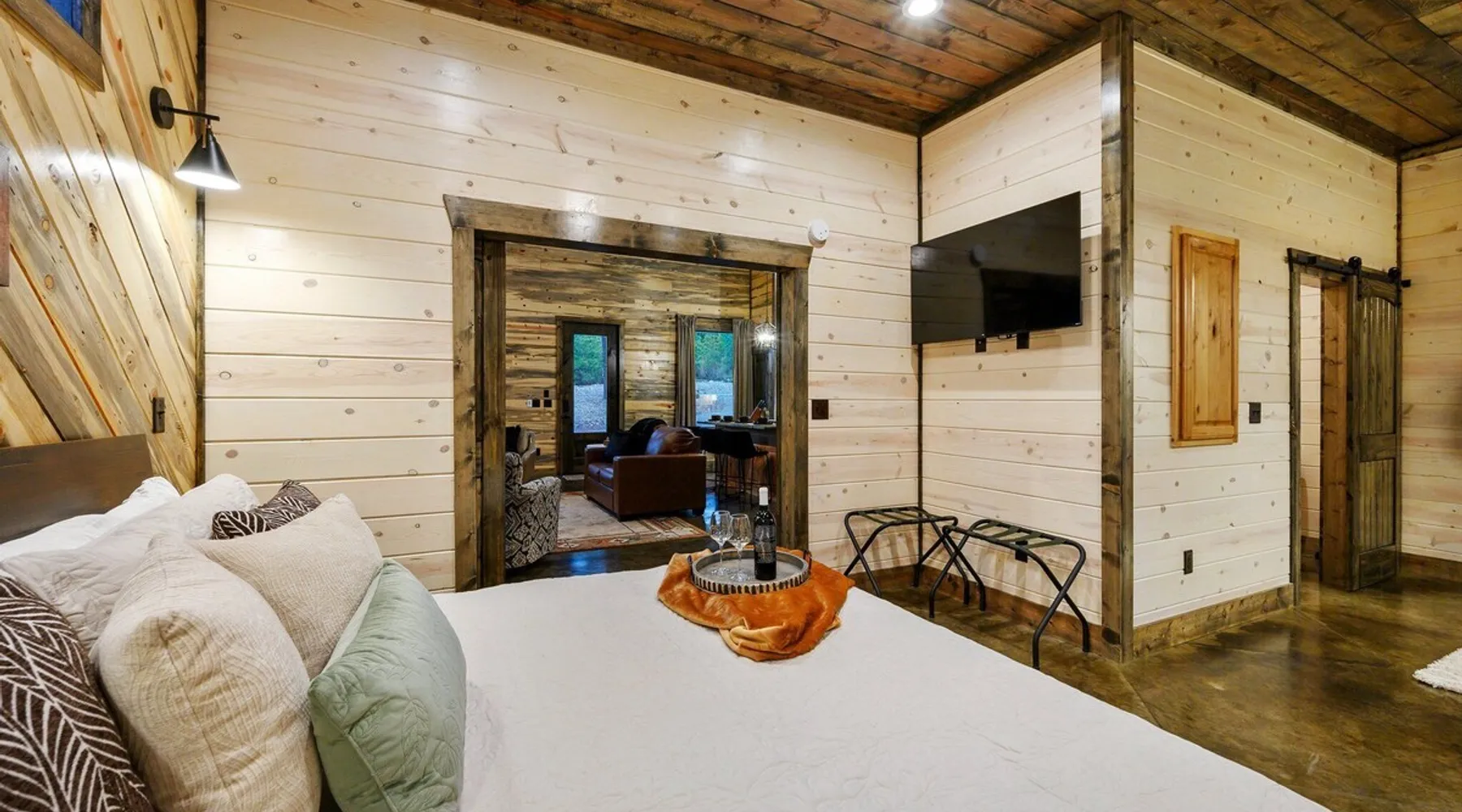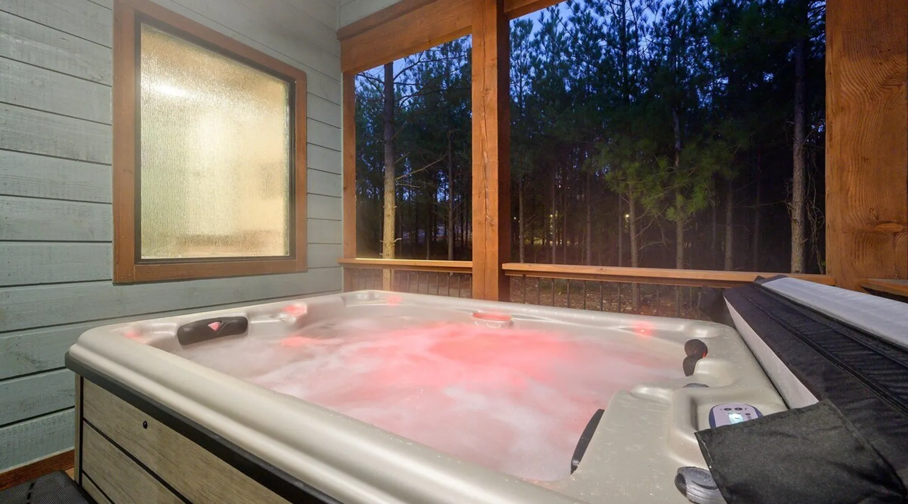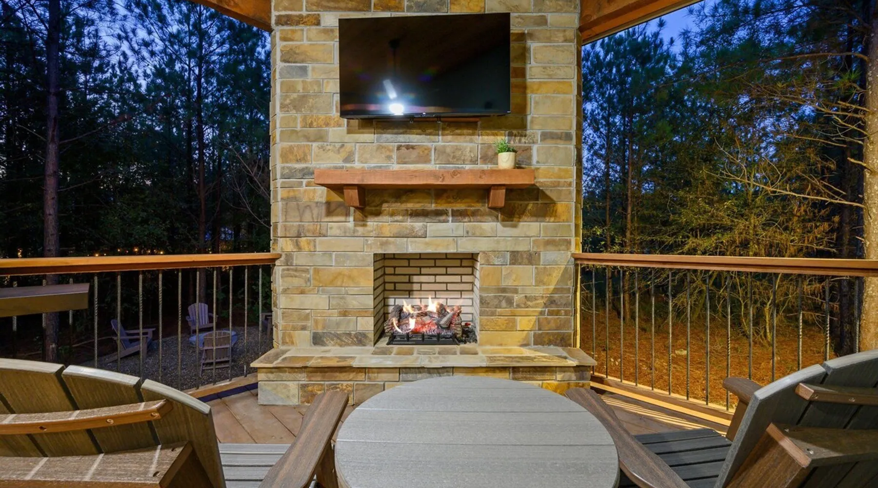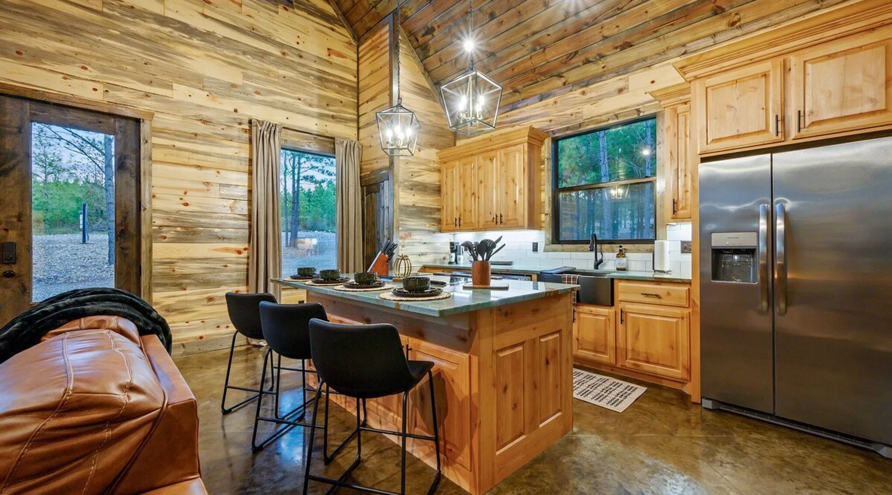 Tequila Sunset,Family,Loft,HotTub,Firepit,EV Plug Tequila Sunset - Hosted by Bravo Cabin Rentals, LLC Tequila Sunset is the epitome of a luxurious getaway with its cozy ambiance and inviting atmosphere. This one-bedroom rental in Broken Bow is perfect for up to three guests who are seeking a relaxing and rejuvenating stay. The highlight of this retreat is undoubtedly the hot tub, where you can soak your worries away while enjoying the serene surroundings. Additionally, the gas grill allows you to indulge in some outdoor cooking, while the fireplaces both inside and outside create a warm and cozy ambiance. The furnished back deck provides the perfect spot to unwind and take in breathtaking views of the surrounding nature. Inside, the living room boasts a comfortable leather couch, a lounge chair, and a gas fireplace, creating a cozy space to relax and unwind. For entertainment, a big-screen TV is also available. The kitchen and dining area are fully stocked with all the essentials you might need during your stay. From a toaster and blender to a Keurig coffee maker (with a starter pack of coffee provided) and a crockpot, you'll have everything you need to prepare delicious meals. The island features four bar stools, providing ample seating for dining or enjoying a quick snack. The bedroom offers a king-sized bed, ensuring a restful night's sleep. Side tables with storage on both sides of the bed provide convenience, while a big-screen TV allows you to unwind with your favorite shows. The bedroom also offers direct access to the patio, allowing you to step outside and enjoy the fresh air. The ensuite bathroom features a double vanity sink, a private toilet, a walk-in shower stocked with shampoo, conditioner, and shower gel, and a luxurious soaker tub for ultimate relaxation. Upstairs, the cozy loft features a game nook with a sofa sleeper, providing additional sleeping accommodations for guests. The outdoor amenities at Tequila Sunset are equally impressive. The patio is furnished with comfortable furniture, allowing you to relax and soak up the sun. The hot tub provides the perfect spot to unwind and enjoy the peaceful surroundings. The gas grill is ideal for outdoor cooking, while the gas fireplace adds warmth and ambiance to your outdoor gatherings. A big-screen TV ensures you don't miss out on your favorite shows even while enjoying the outdoors. The firepit with seating for four is perfect for cozy evenings spent roasting marshmallows and sharing stories. Lastly, a hockey game adds a touch of fun and entertainment to your outdoor experience. General Information - Full-size washer and dryer available in the laundry closet. The bedding for the sleeper sofa is located inside the sofa. Gas fireplaces are seasonally available (October-May 15th). Any cancellations processed in which a refund is due to the guest will incur a $50 processing fee. The maximum occupancy for this cabin is 3, with no exceptions. It is located near all the best restaurants, activities, and park amenities. It is just a short drive to Broken Bow Lake, Beavers Bend State Park, popular hiking trails, restaurants, breweries, wineries, and downtown Hochatown, and access to all the outdoors activities you want – boating, hiking, fly-fishing, kayaking, zip-lining, ATV trails, horseback riding, Cedar Creek Golf Course, Choctaw Landing Casino, mini-golf, helicopter rides, mining for gold, train rides, go-carts, and a great petting zoo. Don't forget these items when you come to visit: • Rain gear and light jackets (Our average rainfall is 55″-60″ each year). • We have beautiful scenic trails; good hiking boots are a must. • Water shoes for our vast shorelines and streams. • Insect repellent, sunblock, and other first-aid supplies. • Coffee and filters – enjoy this while sitting on the deck in the early morning. • Condiments --A starter supply of coffee/filters, salt/pepper, paper towels, toilet paper, bath soap, dish soap, dishwasher tablets, trash bags, and laundry soap is provided. Still, guests may need to bring additional supplies. If we are missing something or you have a question we haven't answered, please feel free to reach out to us directly at Bravo Cabin Rentals and we will personally respond as soon as possible. We look forward to making your next vacation in Broken Bow/Hochatown one you won't forget! Languages English