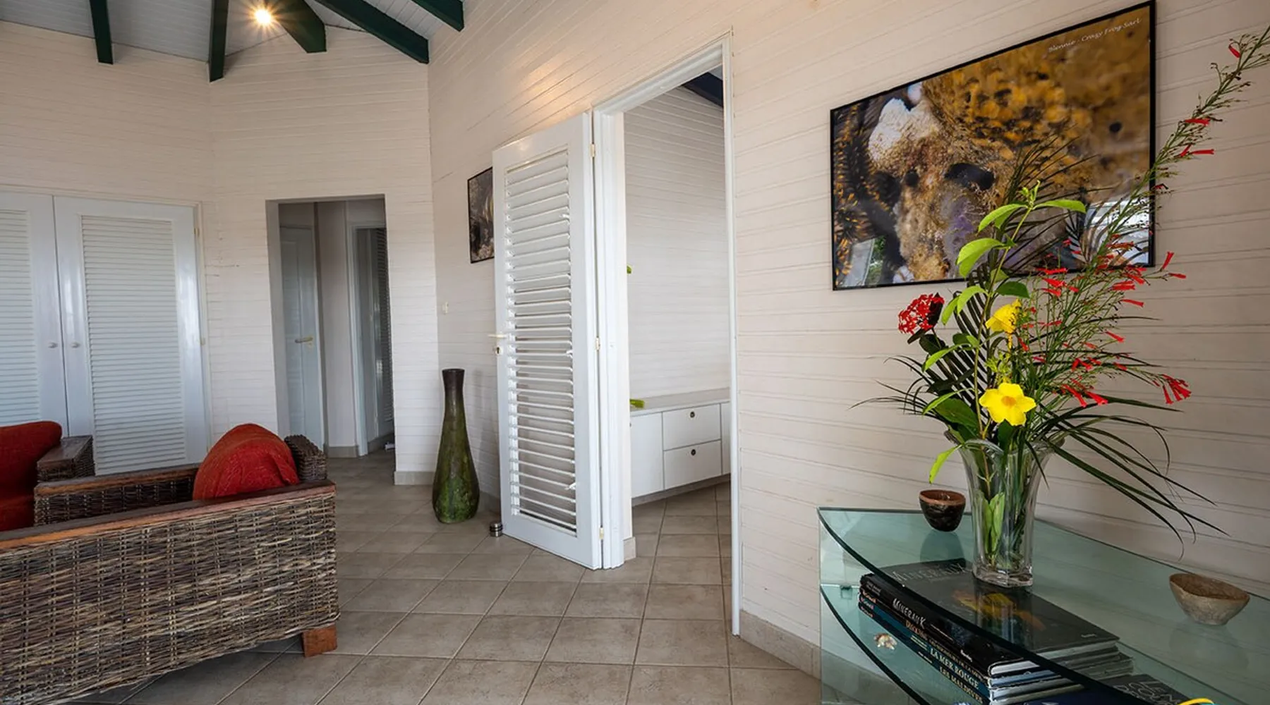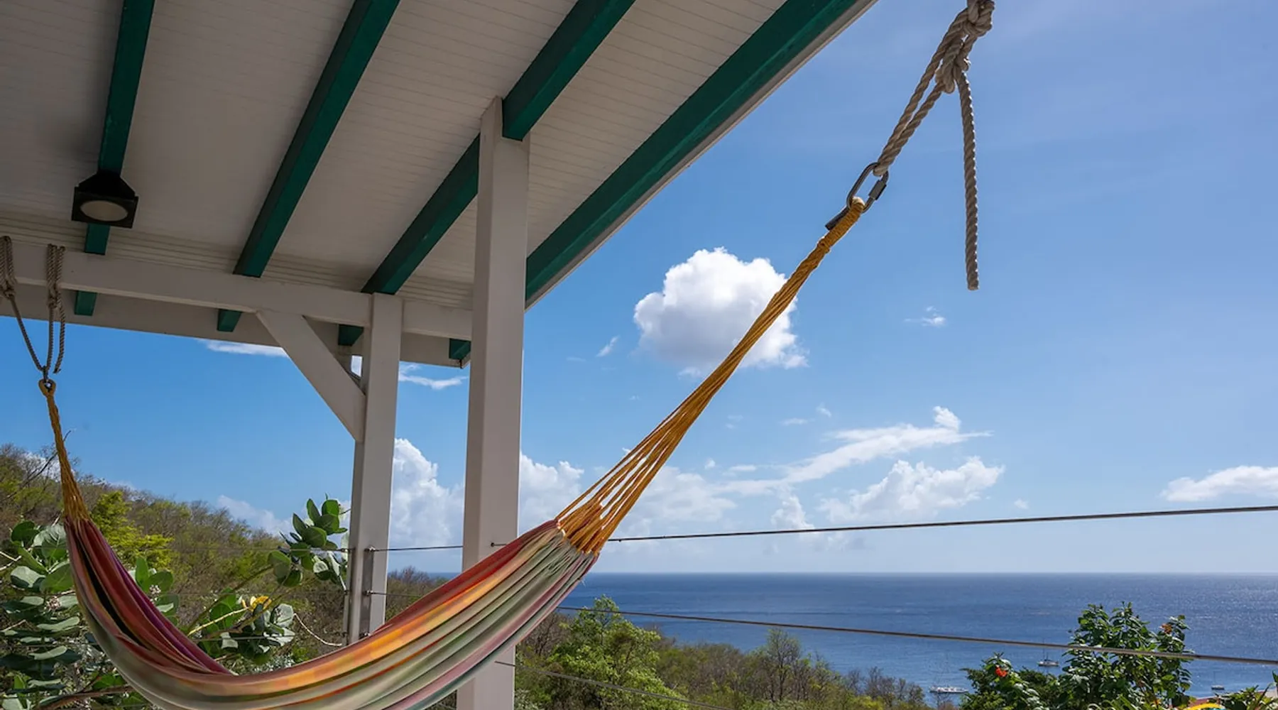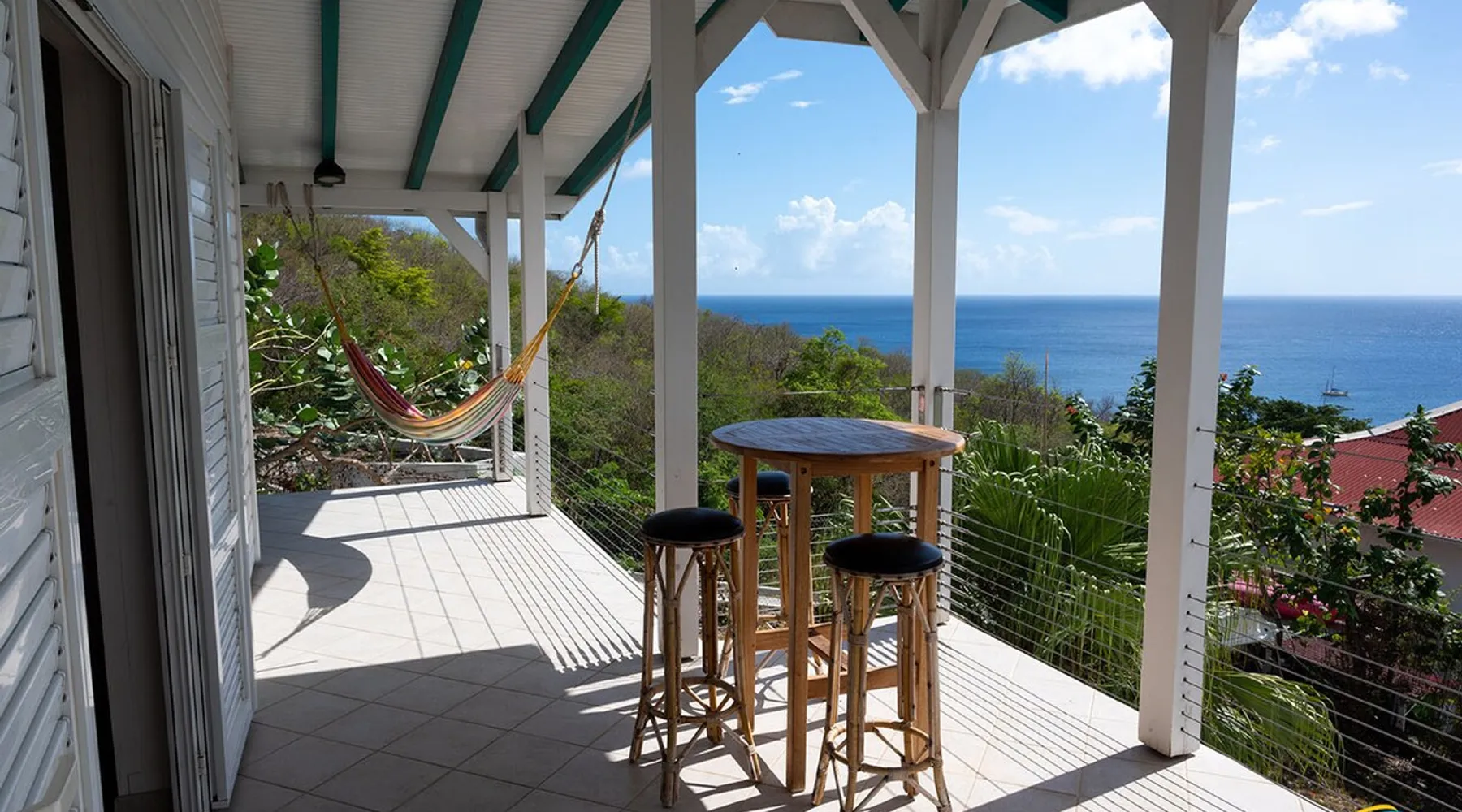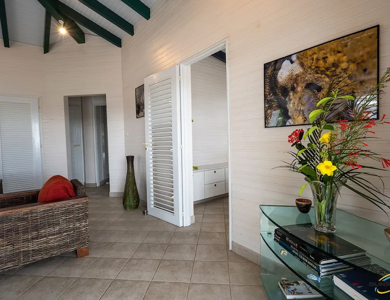 Located 300 m from the beach, this beautiful architect villa will seduce you with its Creole charm, large terrace and exceptional views. The design of the villa is inspired by the architecture of the old Creole houses and benefits from natural air conditioning thanks to the traditional layout of its openings equipped with louvers, for an eco-friendly experience. The space Upstairs, you will find the T3 "turquoise green" of 82 m² composed of a large equipped kitchen, laundry room, bathroom and separate toilet, two bedrooms with fans and mosquito nets and living room with beautiful cathedral ceiling. This living room opens onto a vast 62 m² terrace from where you can admire the legendary sunsets over the Caribbean sea. A last independent bedroom on the ground floor, 23 m² has bathroom and toilet. Guest access The entire property is reserved for you, except for a technical room, a garage in which I keep some personal belongings and equipment and a fourth bedroom located on the ground floor that is not included in your rental (this room will not be rented during your stay). Other things to note Presence of a high terrace and stairs, young children must be supervised.