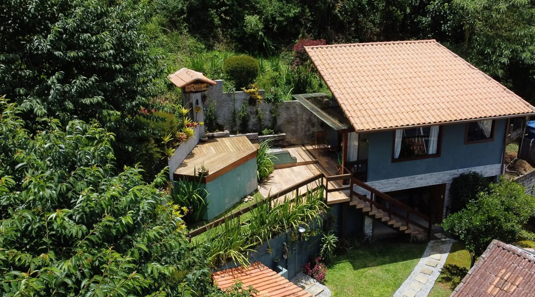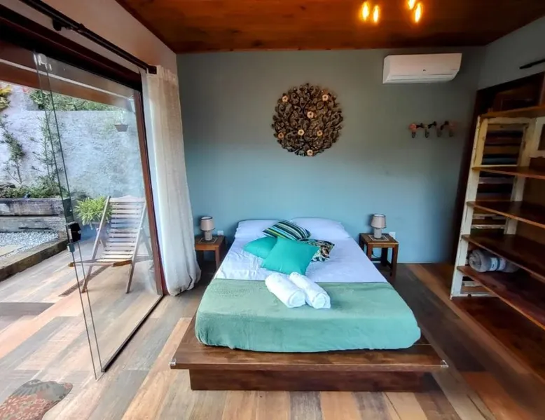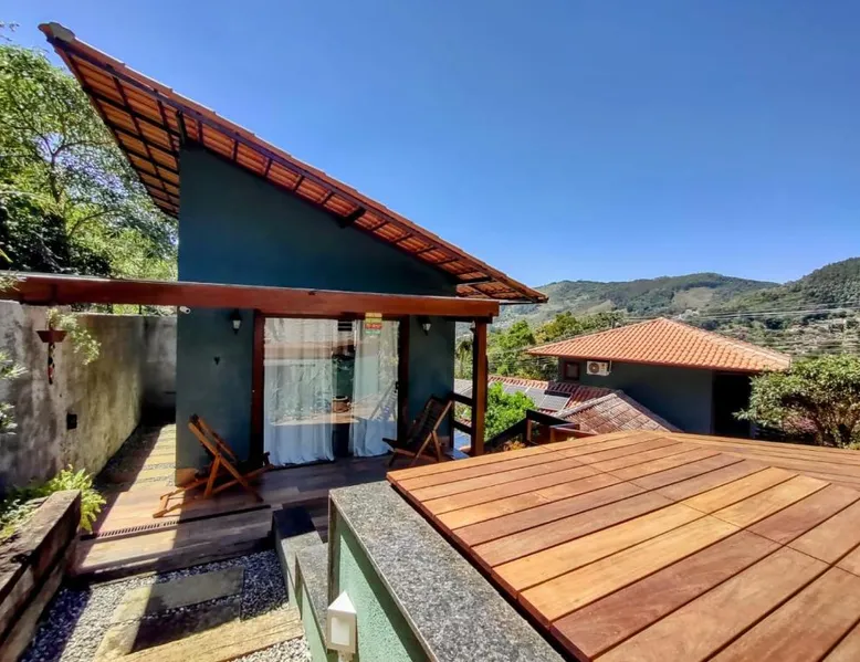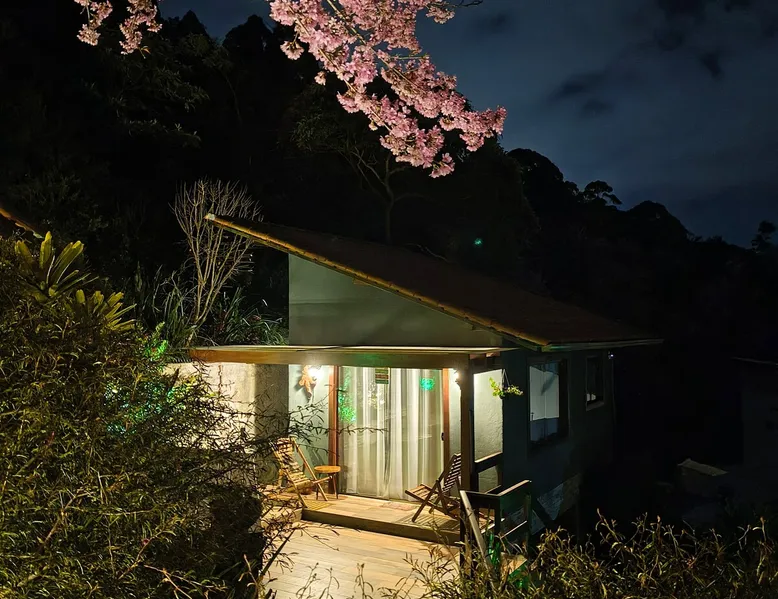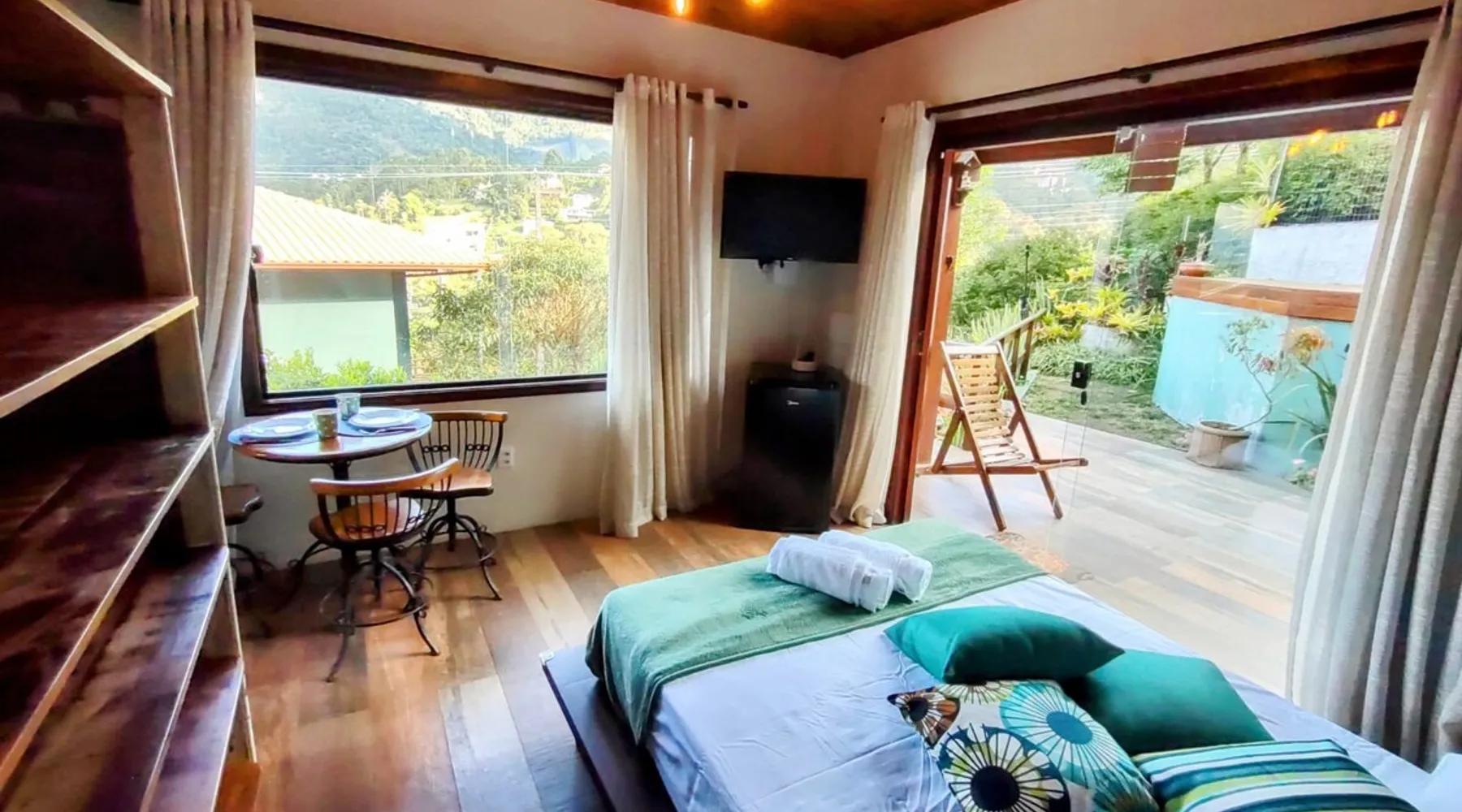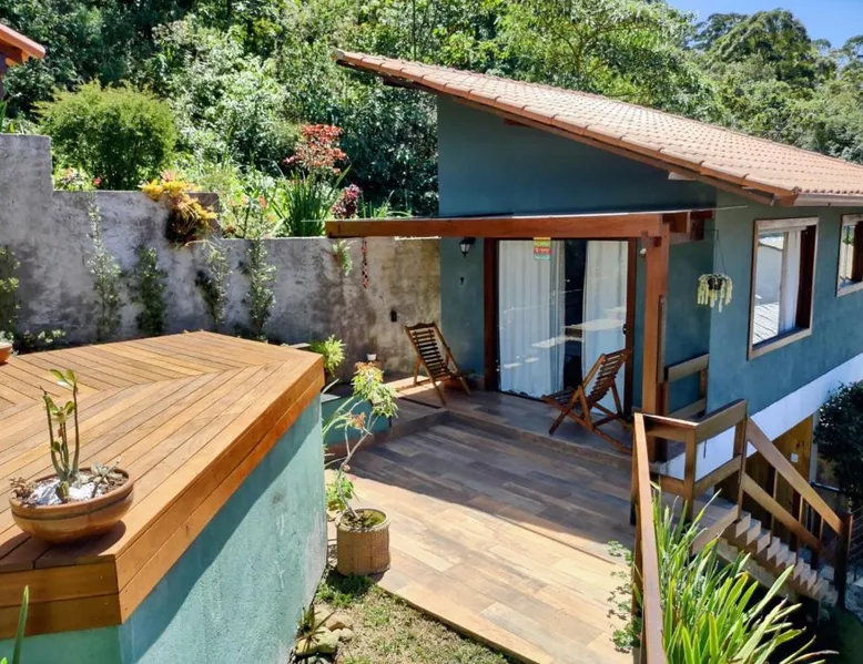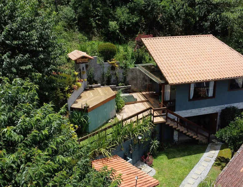 Relax in the Cascatinha neighborhood, close to several waterfalls, hiking trails and mountains. Self Check-in.🔑 Adutora Waterfall is just 1.5 km from the property. The space Cozy and reserved villa in the middle of very green. Perfect for couples. (Self Check in). Perfect for your pet. (Private area with doghouse available). Comfortable and private space. For the convenience of our guests, we have: Double bed, curtain and blackout in the bedroom door and window, hot and cold air conditioning, hair dryer, gas shower, microwave, minibar, 2-burner cooktop, small cast iron Gengiskan barbecue, Air Fryer, sandwich maker, coffee maker, water filter, smart TV, 2 sun loungers, deck, bed and bath linens and a hammock on the balcony to enjoy the views of the mountains. *We accept pets. Nearby natural attractions: * Pico da Caledonia - 2,257 meters of altitude. * Witch Hat - 1,561 meters of altitude. * Pyramid Stone - 1,491 meters of altitude. * Babylon - 1,648 meters of altitude. * Von Veigl - 1,501 meters of altitude. * Pedra do Imperador - 1,419 meters of altitude. Waterfalls: *Adutora *Feiticeira *Santa * Juarez Frotté Municipal Park Guest access Exclusive area of Casa Verde. Independent entrance. Other things to note I work as a Tour Guide specializing in natural attractions, and, upon advance reservation, I can take you on tours of the region's mountains and waterfalls. * Prices with special discounts for Casa Verde guests.