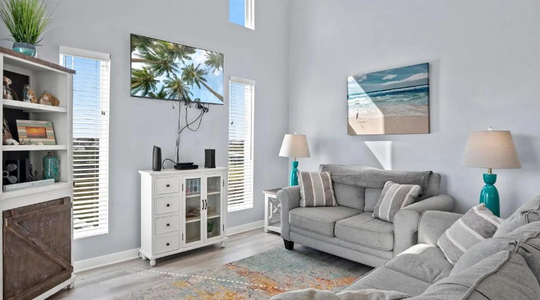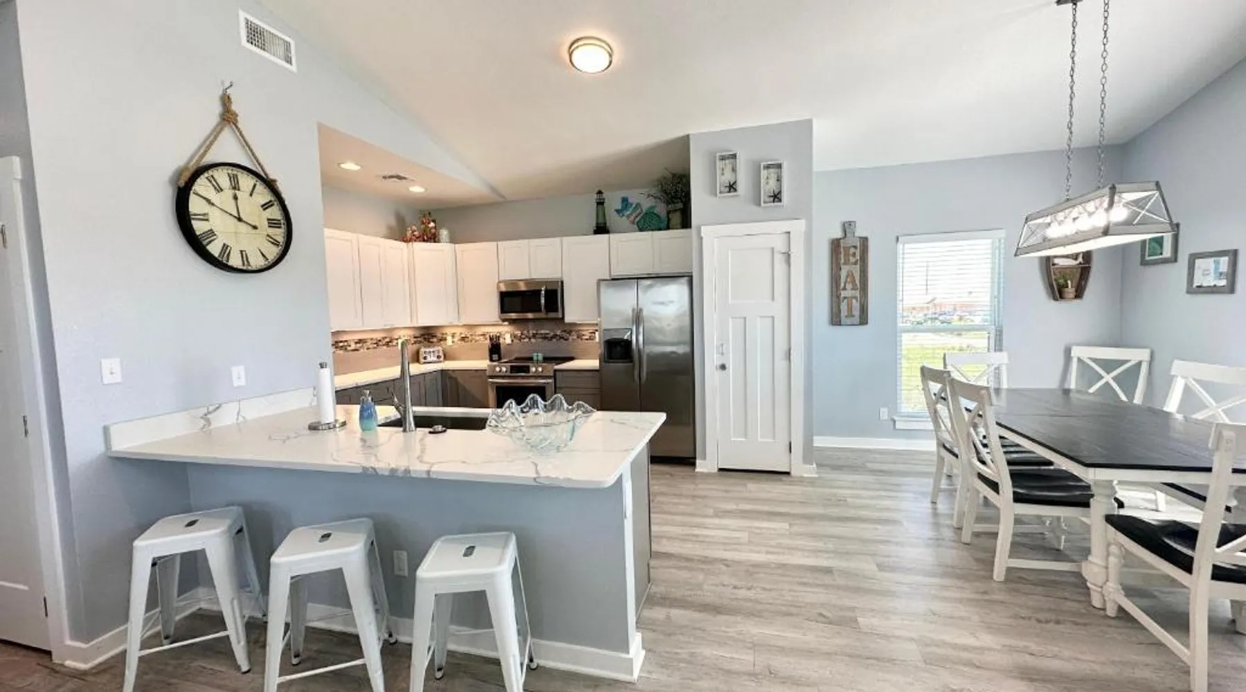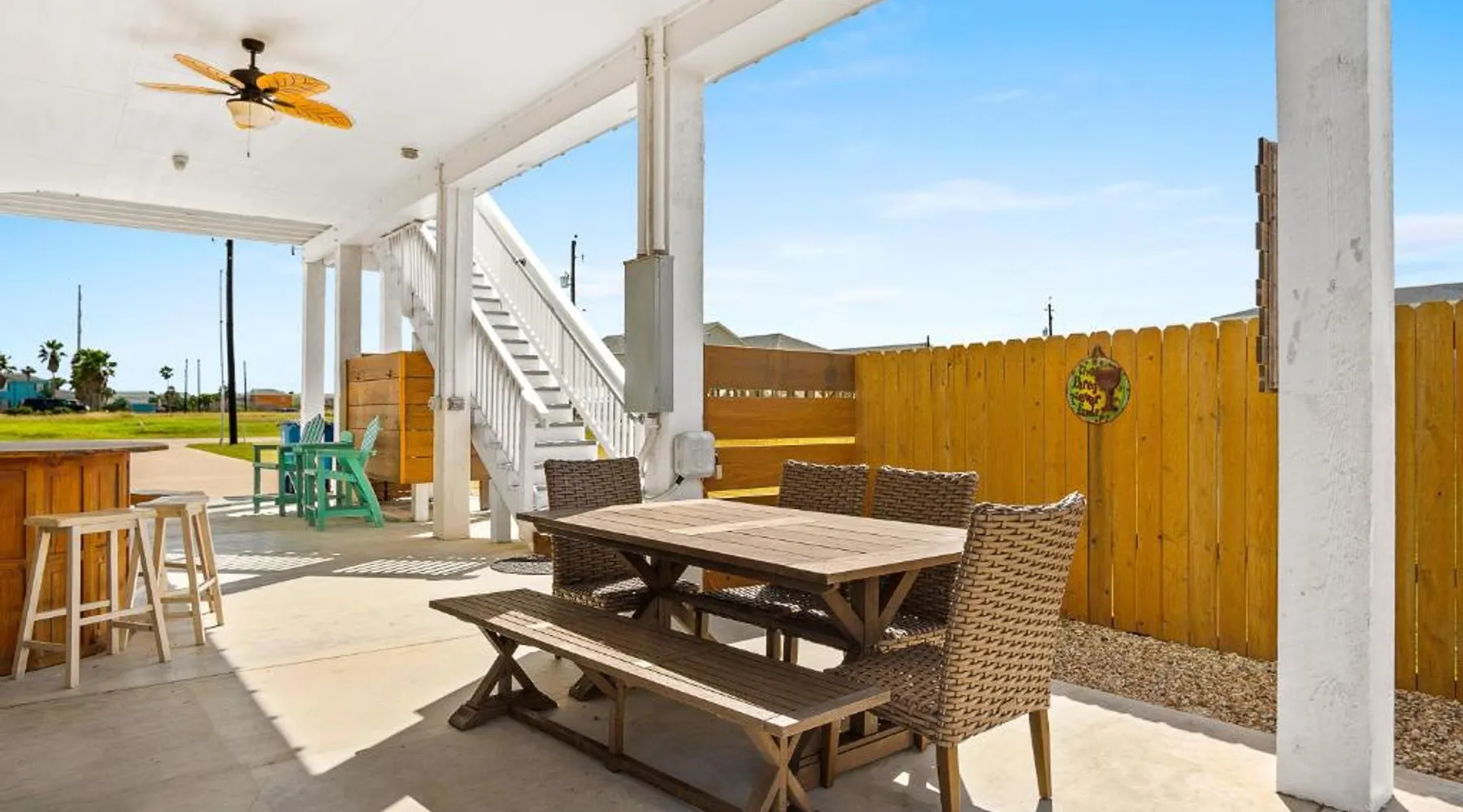 Comfortable Accommodations: Bottoms Up in Port Aransas offers a holiday home with three bedrooms and two bathrooms. The property features air-conditioning, a balcony, and a fully equipped kitchen. Modern Amenities: Guests enjoy free WiFi, an outdoor play area, and free on-site parking. Additional amenities include a washing machine, fireplace, barbecue, and a dining area. Prime Location: Port Aransas Beach is a 14-minute walk away. Corpus Christi International Airport is 37 mi from the property. Nearby attractions include Bob Hall Pier (19 mi) and Port Aransas Marina (2.5 mi). This holiday home offers a fireplace. The air-conditioned holiday home features 3 bedrooms and 2 bathrooms with a bath and a shower. Guests will find a stovetop, a refrigerator, a dishwasher and kitchenware in the well-fitted kitchen. The holiday home also provides guests with a barbecue. Featuring a balcony, this holiday home also provides a washing machine, a seating area and a flat-screen TV with cable channels. The unit offers 3 beds.