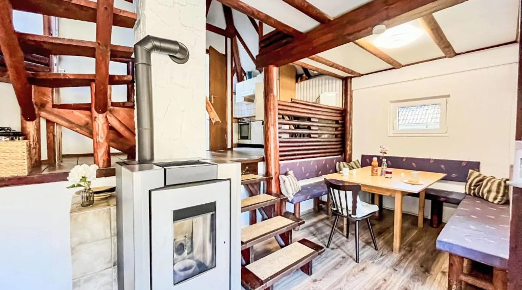 Comfortable Accommodations: Holiday Home Rumpelstilzchen by Interhome in Frankenau offers three bedrooms and one bathroom. The property includes a fully equipped kitchen with modern appliances, a cozy dining area, and a comfortable living room with a fireplace. Outdoor Spaces: Guests can relax on the sun terrace or balcony, enjoying the scenic views. The terrace provides a perfect spot for outdoor dining and leisure. Modern Amenities: The holiday home features free WiFi, a washing machine, and free on-site private parking. Additional amenities include a coffee machine, refrigerator, microwave, dishwasher, shower, and TV. Nearby Attractions: Mühlenkopfschanze is located 30 mi away, and Kassel-Calden Airport is 40 mi from the property. This holiday home's special feature is the fireplace. Boasting 3 bedrooms and 1 bathroom with a shower, this holiday home has a well-fitted kitchen and a terrace. The well-equipped kitchen has a stovetop, a refrigerator, a dishwasher and kitchenware. This holiday home features a washing machine, a coffee machine, a TV and a balcony. The unit offers 4 beds.