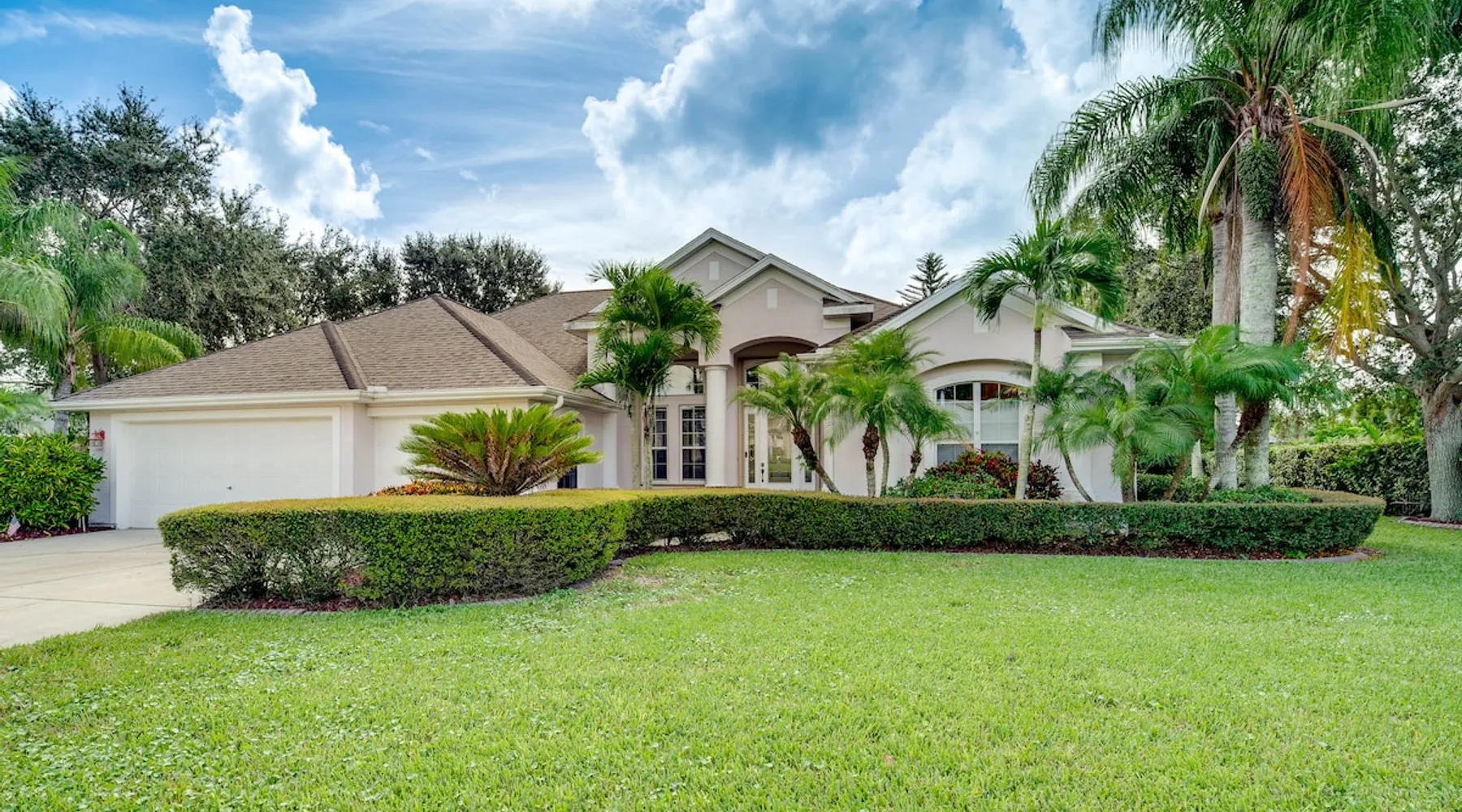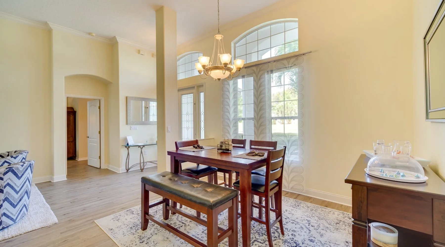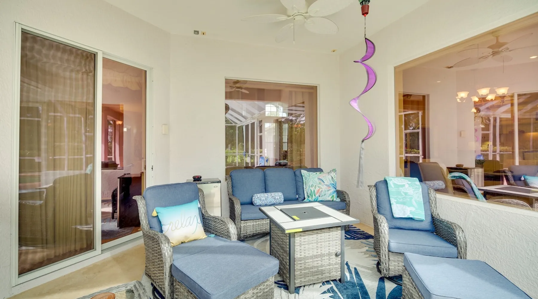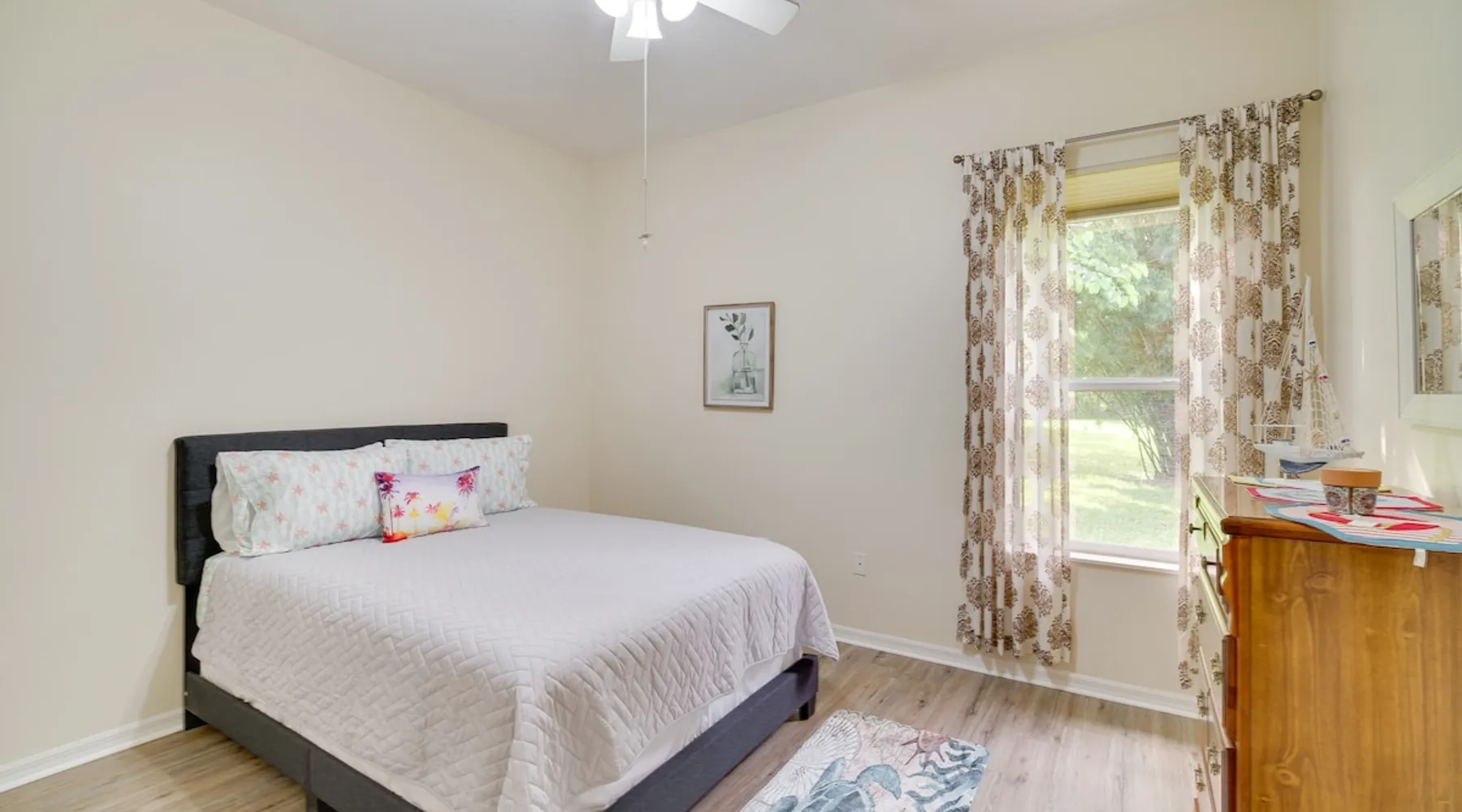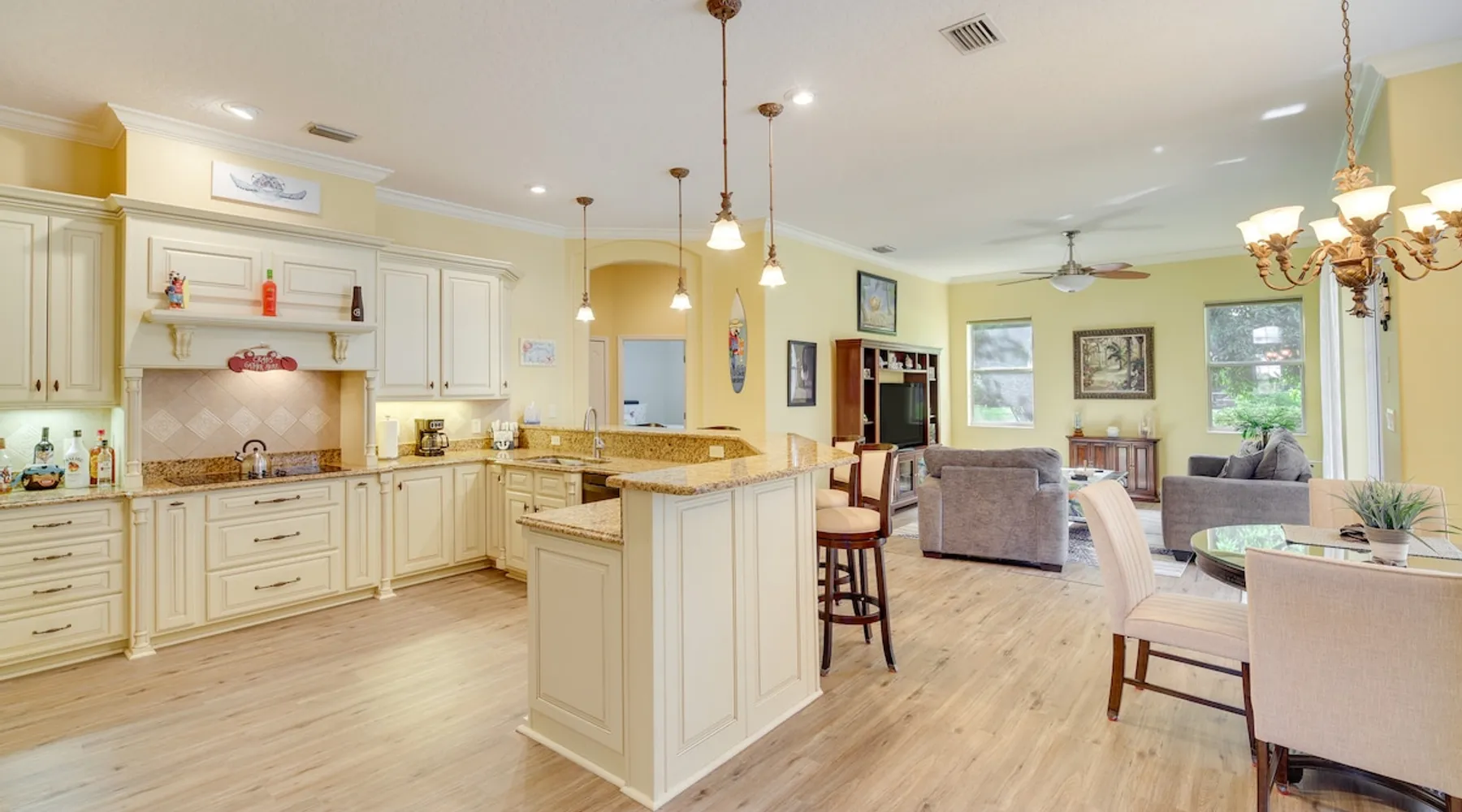 Escape to the shores of Merritt Island with this ranch-style, 4-bedroom, 3-bathroom vacation rental home as your base. Located near Cocoa Beach and surrounded by parks, this getaway offers in-unit laundry, a Smart TV, and a covered patio. After you settle in, take a dip in the private pool or relax on the patio furniture. Then, head out to visit the Kennedy Space Center, Westgate Cocoa Beach Pier, or a local golf course. When you return, enjoy a movie night with the Smart TV to end the day. The space Covered Patio | 13 Mi to Cocoa Beach | Central Location | Day Trip to Disney Bedroom 1: Queen Bed | Bedroom 2: Full Bed | Bedroom 3: Full Bed | Bedroom 4: Queen Bed | Additional Sleeping: 2 Queen Air Mattresses HOME LIVING: Smart TV, washer/dryer, board games, patio furniture KITCHEN: Dishwasher, fridge, stovetop, oven, microwave, coffee maker, dining table, breakfast bar, blender, cooking basics, Crockpot, dishware & flatware, ice, spices, toaster GENERAL: Free WiFi, ceiling fans, central air conditioning, central heating, linens, towels, complimentary toiletries, hair dryer, hangers, trash bags, paper towels FAQ: Step-free access, 3 exterior security cameras (facing out), quiet hours 10:00 PM-7:00 AM PARKING: Driveway (4 vehicles) Guest access Guests will have access to the entire property via keyless entry Other things to note - No smoking - No pets allowed - No events, parties, or large gatherings - Must be at least 25 years old to book - Additional fees and taxes may apply - Photo ID may be required upon check-in - NOTE: Please observe quiet hours from 10:00 PM-7:00 AM - NOTE: The maximum number of people allowed on the property at any time is 8 - NOTE: Your safety matters. This property features 3 exterior security cameras. Camera 1 is located at the front of the home facing the driveway, camera 2 is a Ring doorbell device with an exterior security camera facing the pool area, and camera 3 is located on the side of the home facing out. The cameras are outward facing and do not look into interior spaces. The cameras record video and audio continuously while activated by motion