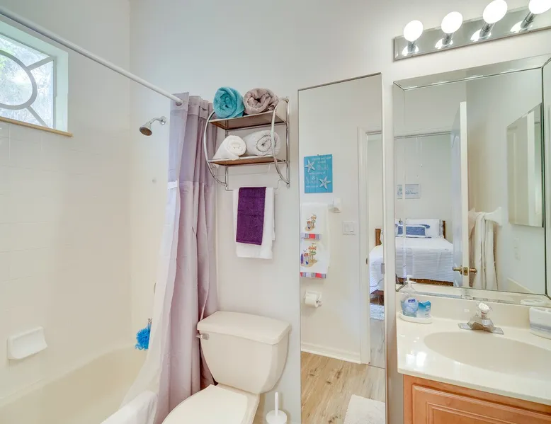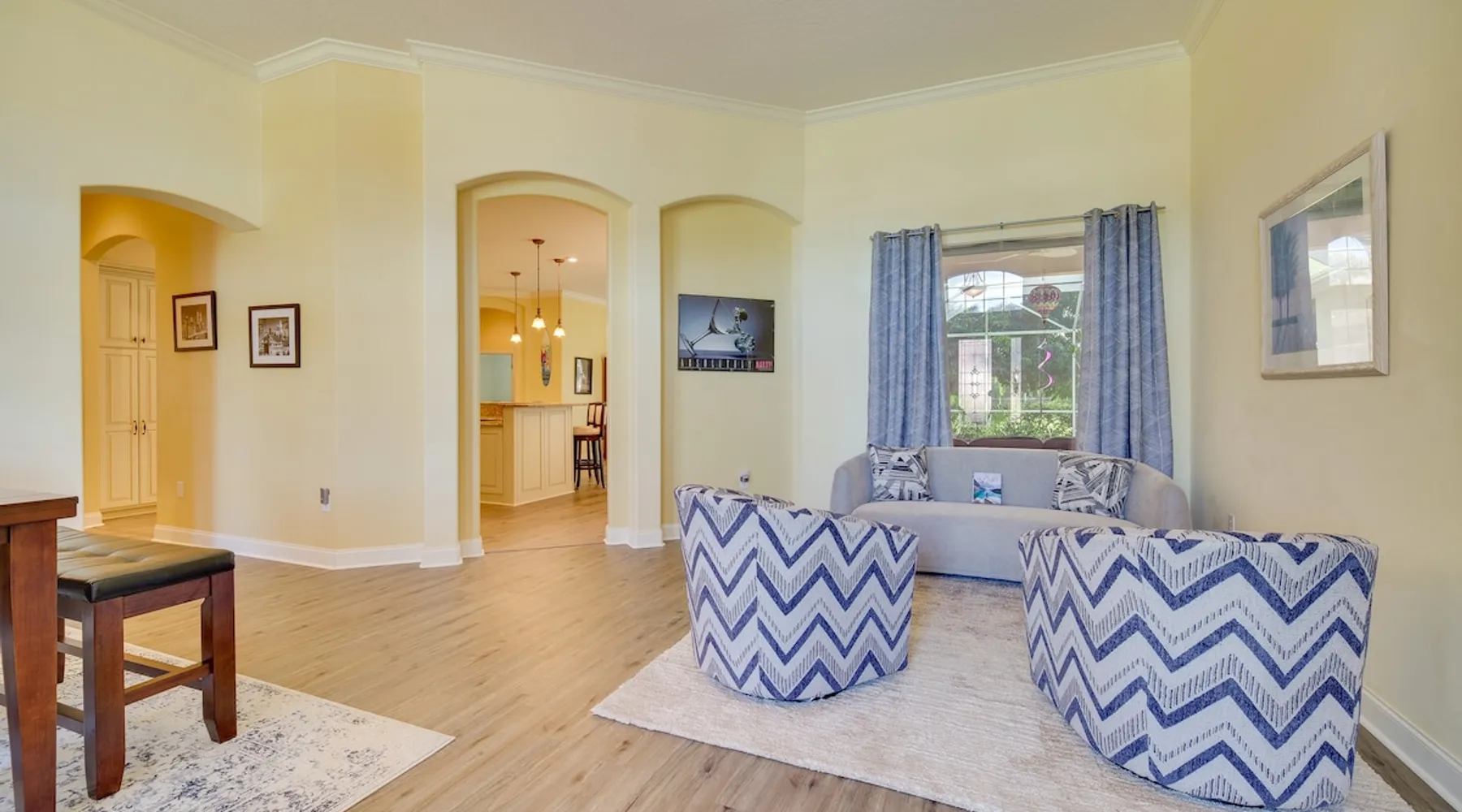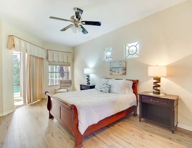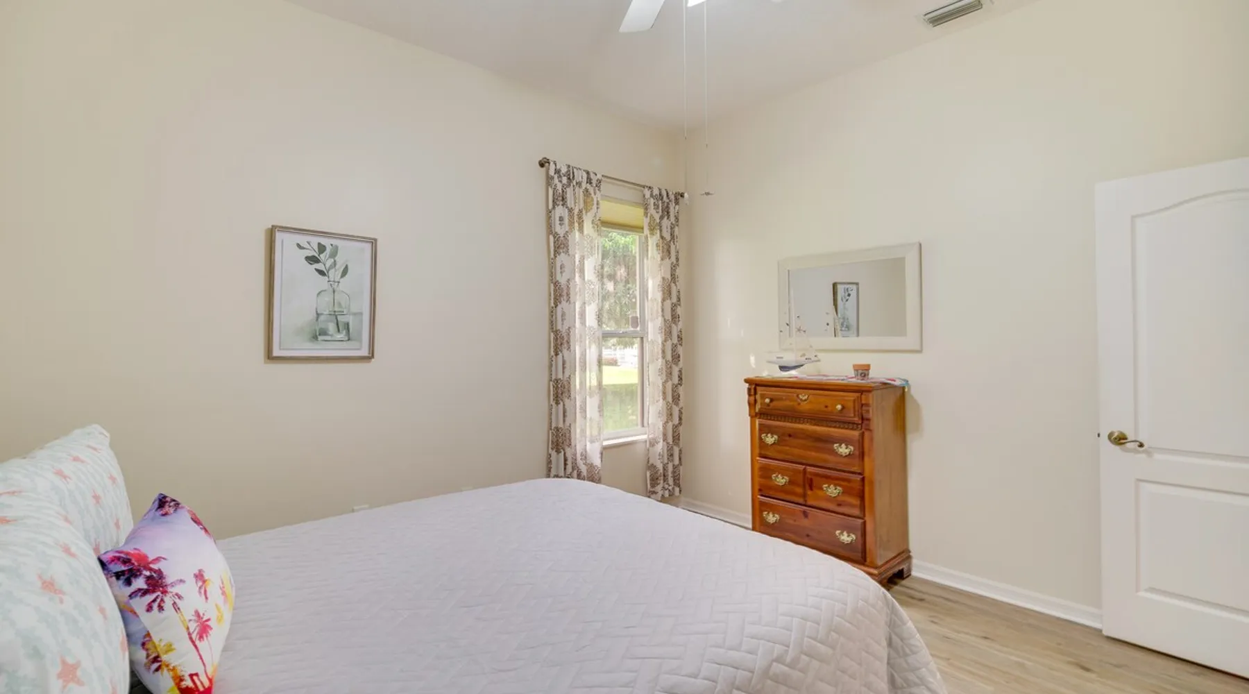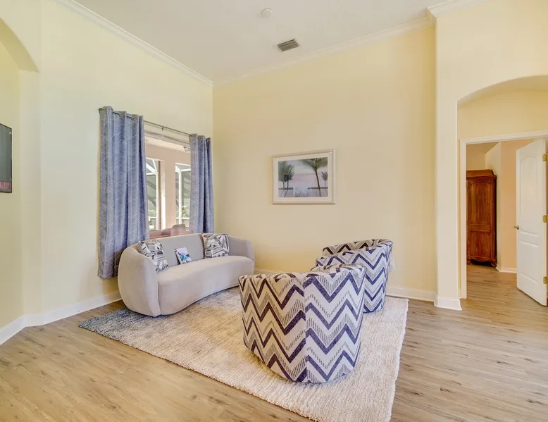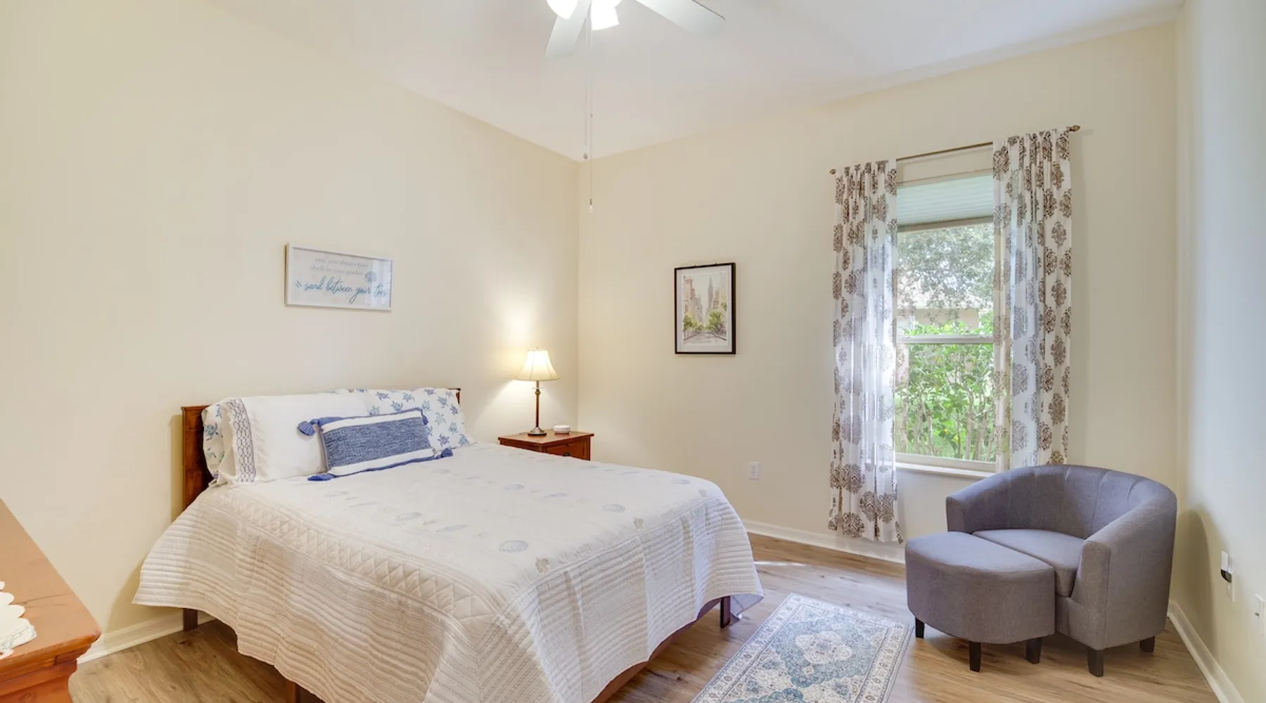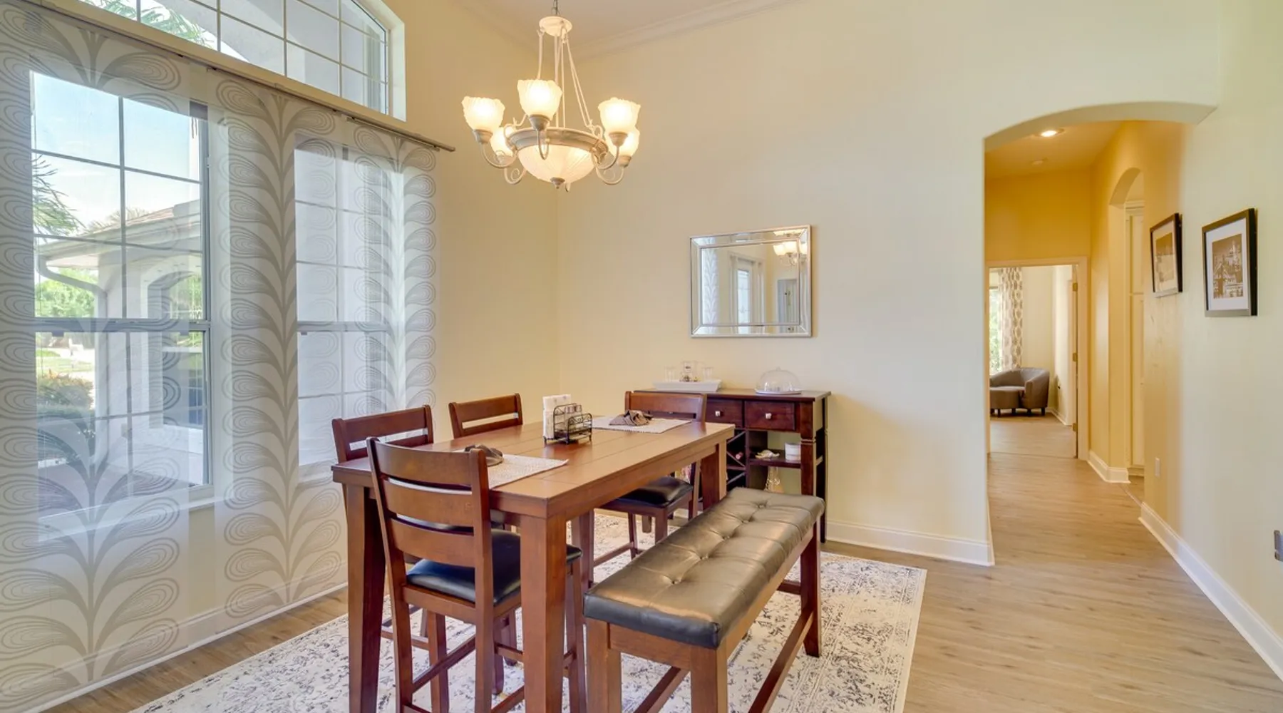 Escape to the shores of Merritt Island with this ranch-style, 4-bedroom, 3-bathroom vacation rental home as your base. Located near Cocoa Beach and surrounded by parks, this getaway offers in-unit laundry, a Smart TV, and a covered patio. After you settle in, take a dip in the private pool or relax on the patio furniture. Then, head out to visit the Kennedy Space Center, Westgate Cocoa Beach Pier, or a local golf course. When you return, enjoy a movie night with the Smart TV to end the day. The space Covered Patio | 13 Mi to Cocoa Beach | Central Location | Day Trip to Disney Bedroom 1: Queen Bed | Bedroom 2: Full Bed | Bedroom 3: Full Bed | Bedroom 4: Queen Bed | Additional Sleeping: 2 Queen Air Mattresses HOME LIVING: Smart TV, washer/dryer, board games, patio furniture KITCHEN: Dishwasher, fridge, stovetop, oven, microwave, coffee maker, dining table, breakfast bar, blender, cooking basics, Crockpot, dishware & flatware, ice, spices, toaster GENERAL: Free WiFi, ceiling fans, central air conditioning, central heating, linens, towels, complimentary toiletries, hair dryer, hangers, trash bags, paper towels FAQ: Step-free access, 3 exterior security cameras (facing out), quiet hours 10:00 PM-7:00 AM PARKING: Driveway (4 vehicles) Guest access Guests will have access to the entire property via keyless entry Other things to note - No smoking - No pets allowed - No events, parties, or large gatherings - Must be at least 25 years old to book - Additional fees and taxes may apply - Photo ID may be required upon check-in - NOTE: Please observe quiet hours from 10:00 PM-7:00 AM - NOTE: The maximum number of people allowed on the property at any time is 8 - NOTE: Your safety matters. This property features 3 exterior security cameras. Camera 1 is located at the front of the home facing the driveway, camera 2 is a Ring doorbell device with an exterior security camera facing the pool area, and camera 3 is located on the side of the home facing out. The cameras are outward facing and do not look into interior spaces. The cameras record video and audio continuously while activated by motion
