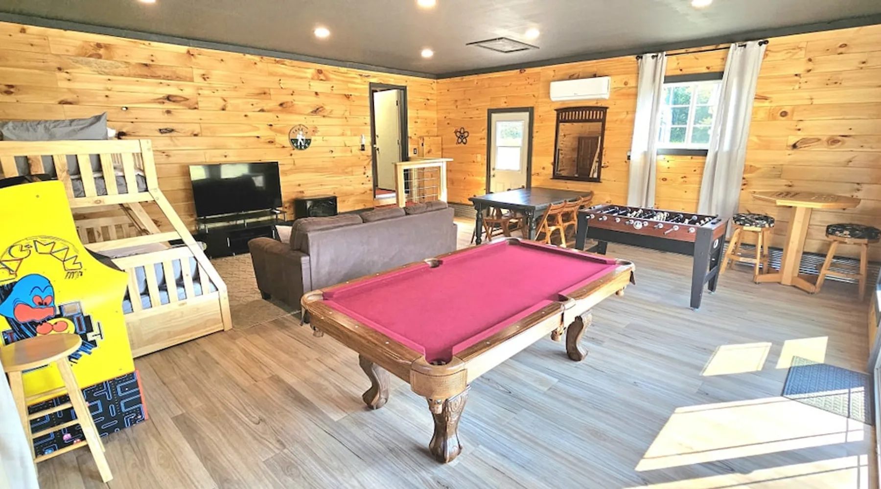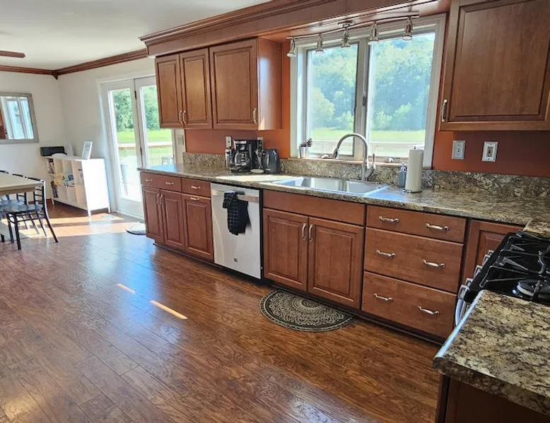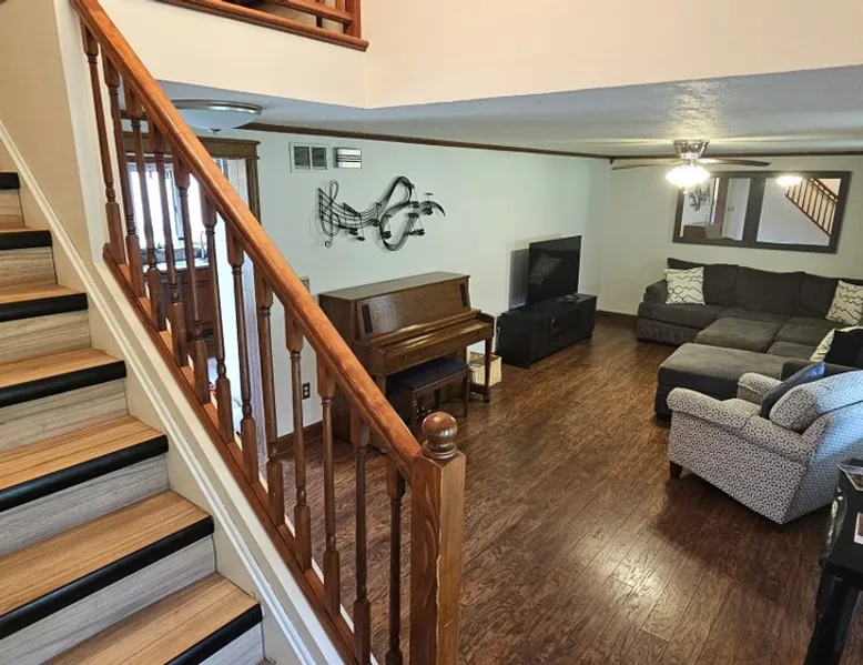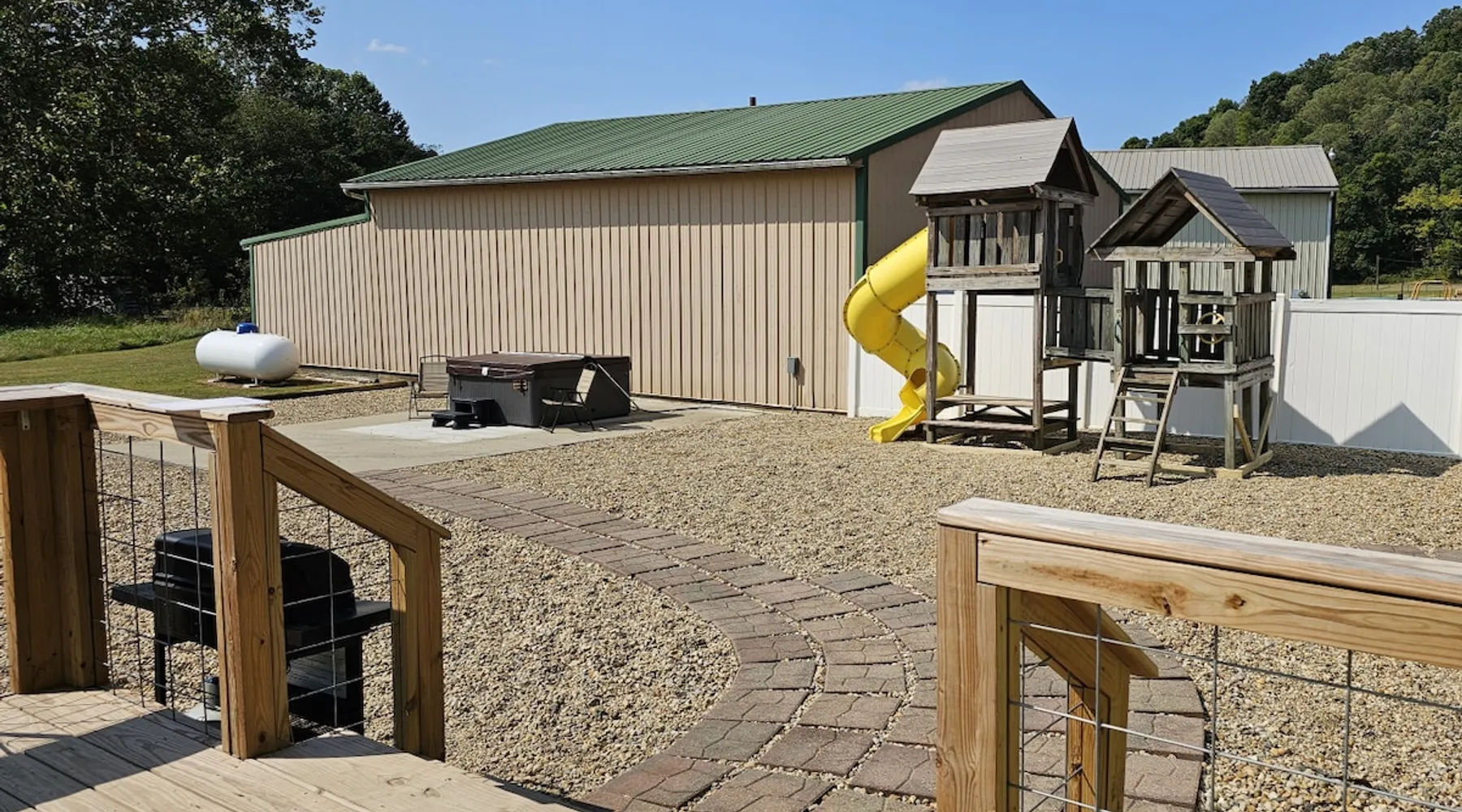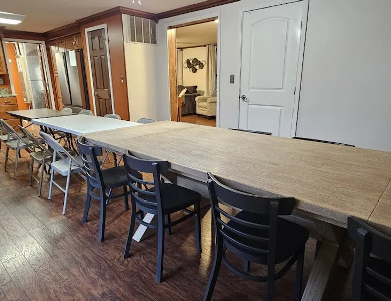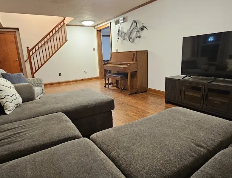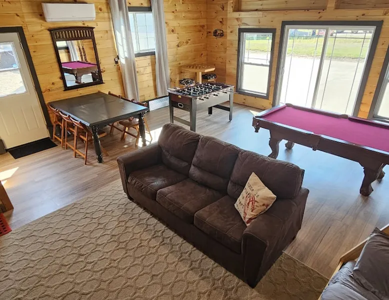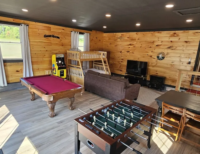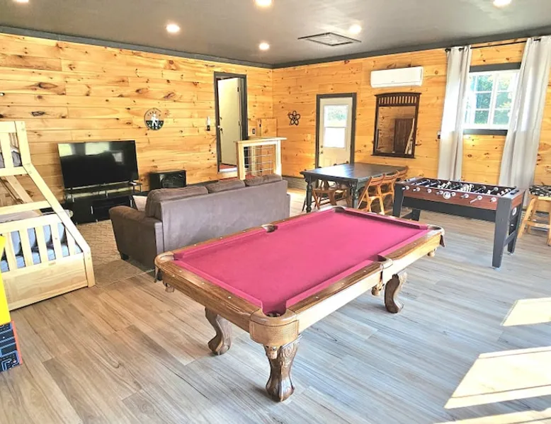 5 miles from Old Man's Cave & 2 miles from Conkle's Hollow, our inviting home with a piano comfortably sleeps up to 20—ideal for families, church groups, or laid-back getaways. Dive into fun in our Game Room with a pool table & foosball. Nestled in the tranquil Hocking Hills, take a break from the daily grind in our peaceful oasis. Discover a 9-acre meadow via a nature path, unwind in the outdoor hot tub, and wrap up your day by the fire pit, stargazing. Your Hocking Hills adventure begins here! The space Welcome to Hocking Hills Copper House—a sanctuary for relaxation and recreation nestled on 9 lush acres. Located just 5 miles from Old Man's Cave and 2 miles from Conkle's Hollow, our home is your perfect base for exploring Hocking Hills' stunning natural beauty. Interior Comforts Step inside to find a spacious living room featuring a large sectional with an ottoman and an additional single sofa chair—ideal for movie nights or musical interludes on the classic upright piano. The adjoining kitchen and dining area are well-equipped for your culinary adventures, boasting ample cabinet storage and a large table that seats 8 comfortably, with folding tables and chairs to easily fit a total of 18 in the kitchen. You can also squeeze up to 20 together by borrowing a few folding chairs from the gameroom. Entertainment Haven Continue to the highlight of the house—the 500-square-foot game room. Fitted with a full-size pool table, foosball table, and a chess table, this space promises endless fun. An additional large table accommodates overflow dining or serves as a hub for board games and puzzles. You'll also find a secondary living area with a Roku TV as well as a queen sleeper sofa and Twin over Full bunk bed, rounding out your indoor leisure options. Restful Retreats Rest easy on our memory foam mattresses, wrapped in luxurious MyPillow sheets. The first floor houses the master bedroom, featuring a king-size bed with private bathroom, as well as a guest room with a queen bed. Head upstairs to discover two inviting bedrooms: one with two queen beds, a twin pull-out couch plus an 8-foot memory foam bean bag chair to lounge on, and another with two queen beds plus a twin bed with a twin trundle. At the landing at the top of the steps, you'll find a well-appointed work desk and chair for those who need to stay connected, as well as a charming chess table with two chairs for a quick, fun match. Outdoor Bliss Venture outdoors to your private escape. Enjoy a cup of coffee on the wraparound porch or unwind in the back courtyard, which offers awe-inspiring views of the surrounding meadow and forest. Ready for a soak? Our hot tub awaits, perfectly placed for stargazing. Also available is a firepit circled by 12 chairs for an evening of storytelling and s'mores. And don't forget the back deck with lots of seating for eating outdoors while watching the children enjoy the wooden playset & slide. Natural Wonders Beyond the courtyard, a private nature trail through Copper Meadows beckons. Take a tranquil walk to reach Pine Creek at the back of our 9-acre estate. The Hocking Hills Copper House is more than just a place to stay—it's a destination for rejuvenation and joy. Book now for an unforgettable getaway! Other things to note Hocking County Registration #00695