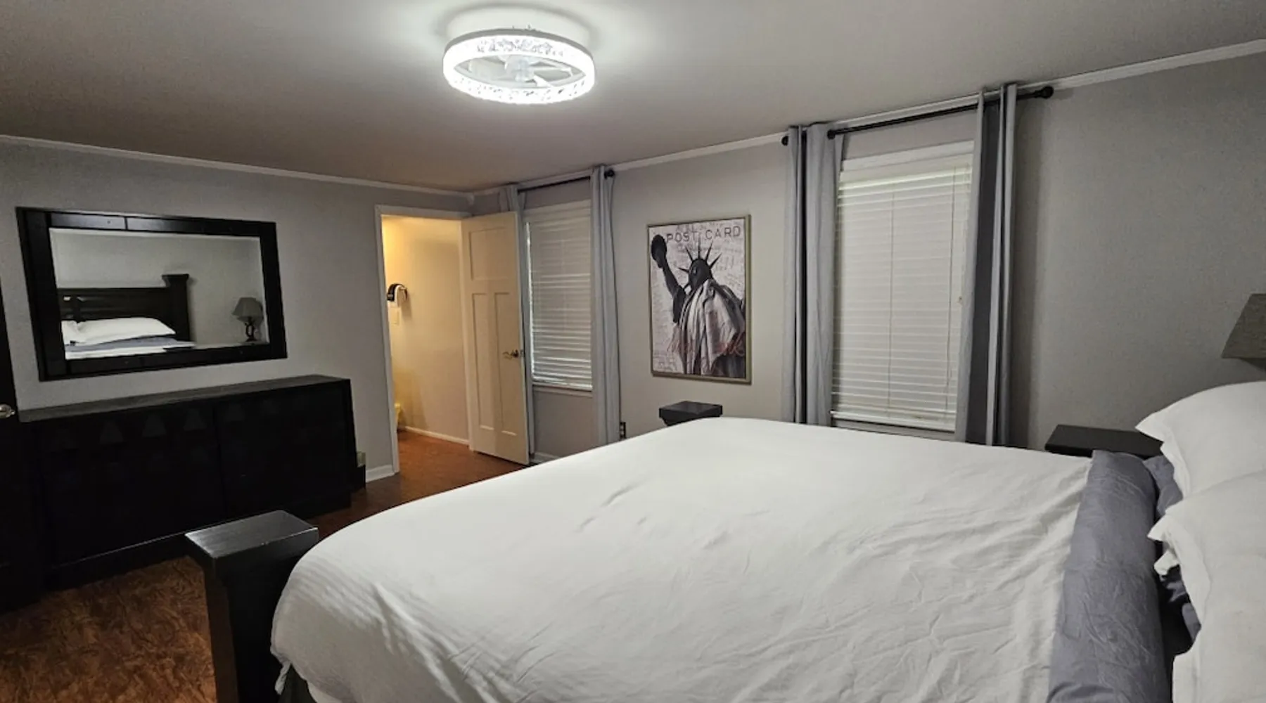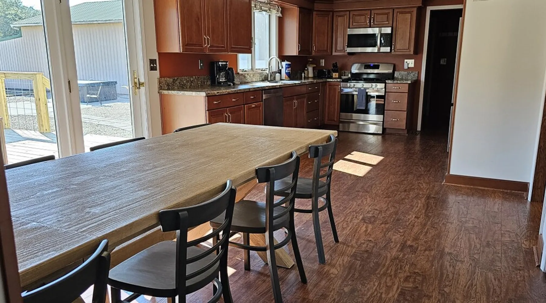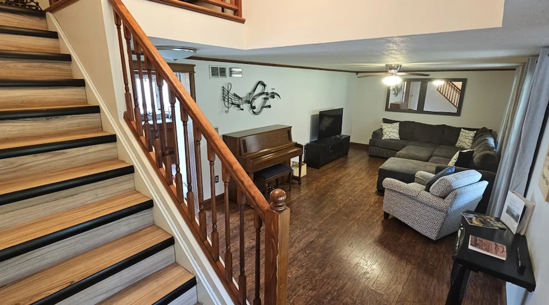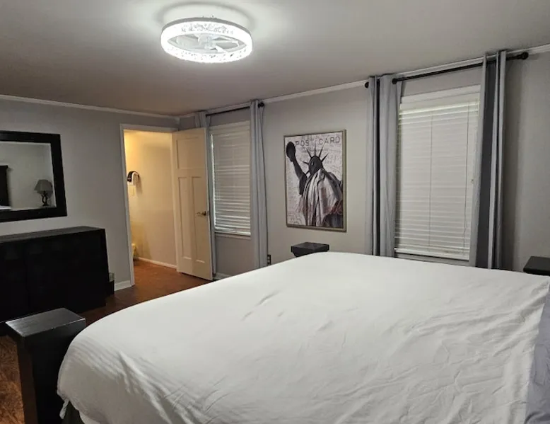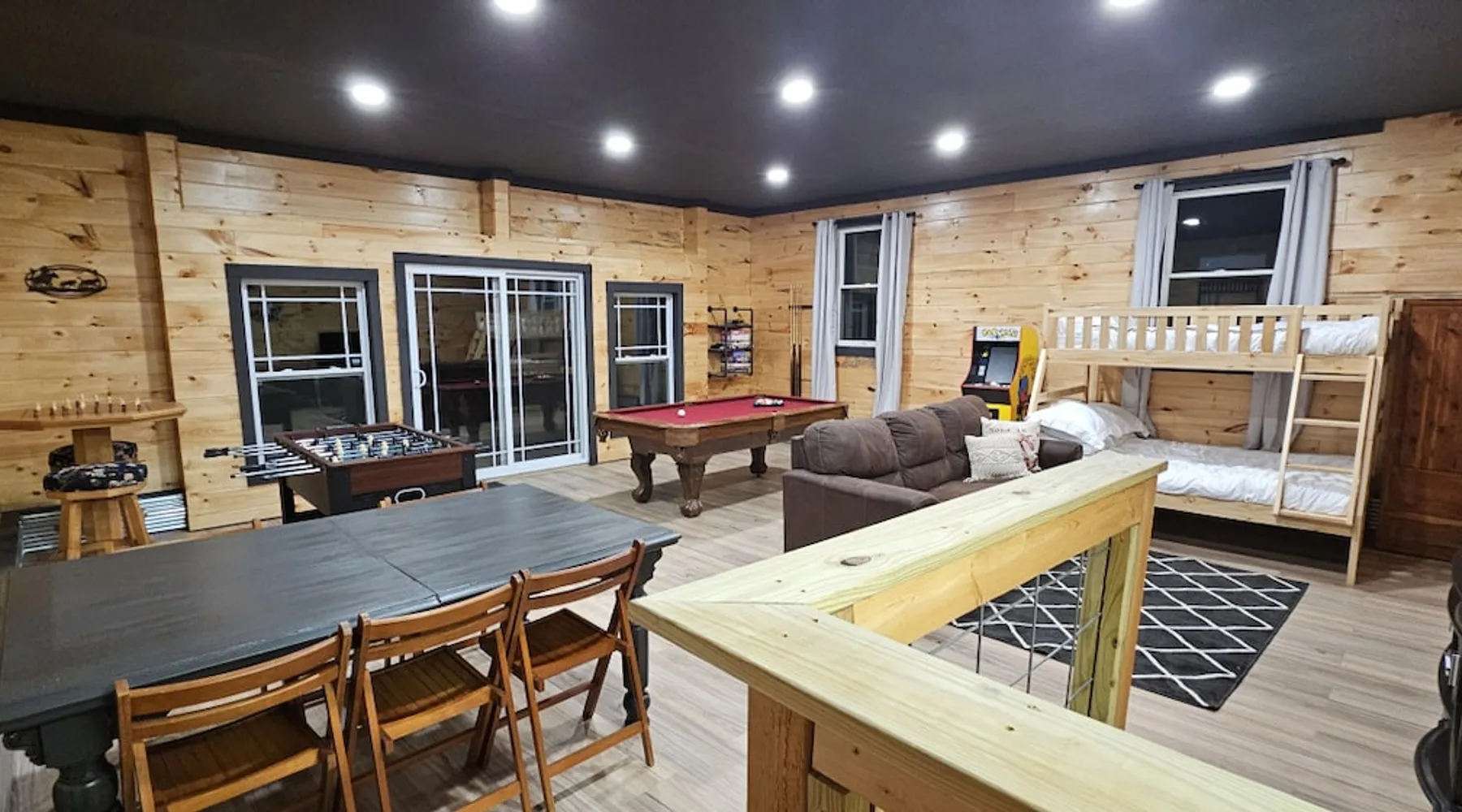 5 miles from Old Man's Cave & 2 miles from Conkle's Hollow, our inviting home with a piano comfortably sleeps up to 20—ideal for families, church groups, or laid-back getaways. Dive into fun in our Game Room with a pool table & foosball. Nestled in the tranquil Hocking Hills, take a break from the daily grind in our peaceful oasis. Discover a 9-acre meadow via a nature path, unwind in the outdoor hot tub, and wrap up your day by the fire pit, stargazing. Your Hocking Hills adventure begins here! The space Welcome to Hocking Hills Copper House—a sanctuary for relaxation and recreation nestled on 9 lush acres. Located just 5 miles from Old Man's Cave and 2 miles from Conkle's Hollow, our home is your perfect base for exploring Hocking Hills' stunning natural beauty. Interior Comforts Step inside to find a spacious living room featuring a large sectional with an ottoman and an additional single sofa chair—ideal for movie nights or musical interludes on the classic upright piano. The adjoining kitchen and dining area are well-equipped for your culinary adventures, boasting ample cabinet storage and a large table that seats 8 comfortably, with folding tables and chairs to easily fit a total of 18 in the kitchen. You can also squeeze up to 20 together by borrowing a few folding chairs from the gameroom. Entertainment Haven Continue to the highlight of the house—the 500-square-foot game room. Fitted with a full-size pool table, foosball table, and a chess table, this space promises endless fun. An additional large table accommodates overflow dining or serves as a hub for board games and puzzles. You'll also find a secondary living area with a Roku TV as well as a queen sleeper sofa and Twin over Full bunk bed, rounding out your indoor leisure options. Restful Retreats Rest easy on our memory foam mattresses, wrapped in luxurious MyPillow sheets. The first floor houses the master bedroom, featuring a king-size bed with private bathroom, as well as a guest room with a queen bed. Head upstairs to discover two inviting bedrooms: one with two queen beds, a twin pull-out couch plus an 8-foot memory foam bean bag chair to lounge on, and another with two queen beds plus a twin bed with a twin trundle. At the landing at the top of the steps, you'll find a well-appointed work desk and chair for those who need to stay connected, as well as a charming chess table with two chairs for a quick, fun match. Outdoor Bliss Venture outdoors to your private escape. Enjoy a cup of coffee on the wraparound porch or unwind in the back courtyard, which offers awe-inspiring views of the surrounding meadow and forest. Ready for a soak? Our hot tub awaits, perfectly placed for stargazing. Also available is a firepit circled by 12 chairs for an evening of storytelling and s'mores. And don't forget the back deck with lots of seating for eating outdoors while watching the children enjoy the wooden playset & slide. Natural Wonders Beyond the courtyard, a private nature trail through Copper Meadows beckons. Take a tranquil walk to reach Pine Creek at the back of our 9-acre estate. The Hocking Hills Copper House is more than just a place to stay—it's a destination for rejuvenation and joy. Book now for an unforgettable getaway! Other things to note Hocking County Registration #00695