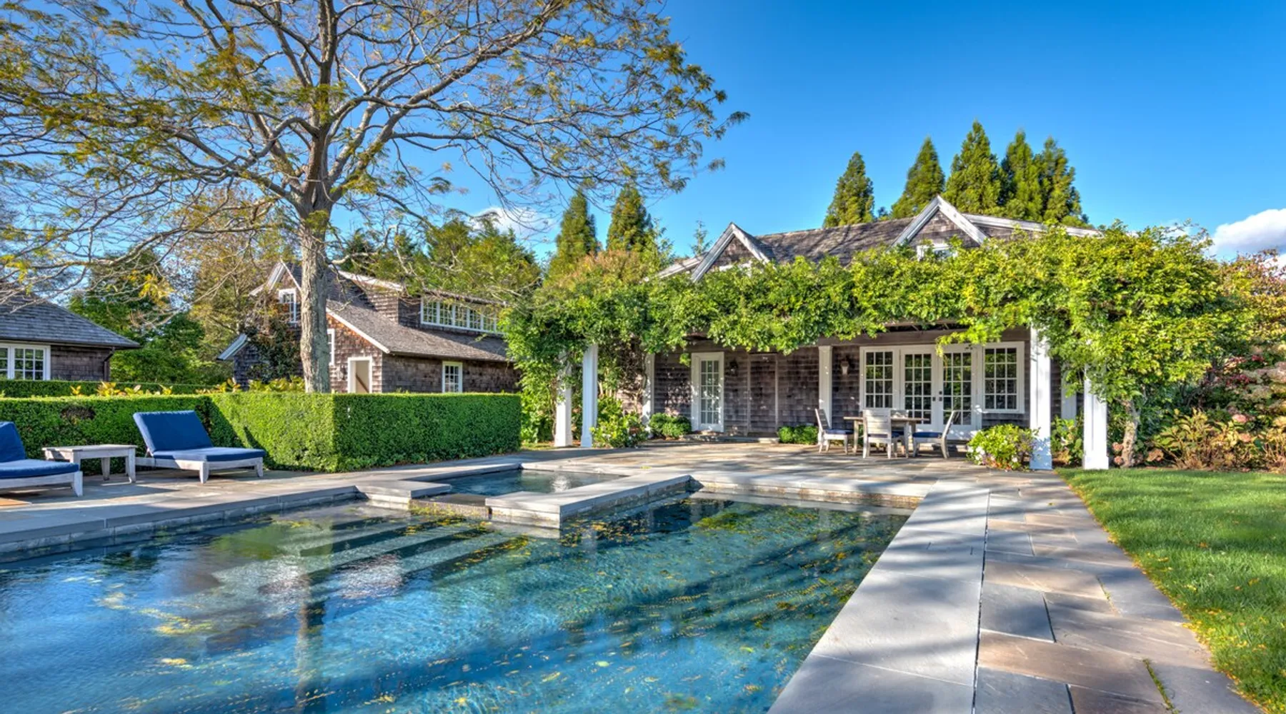 7BR/8BA w/Gourmet Kitchen, Family Room, Pool, Spa, Tennis Court, Pool House, Patio The space Outdoor items are typically stored inside the poolhouse. Guest access Access to entire property Other things to note Please note that a reservation for this property needs to be approved before it is confirmed. Sagaponack Compound On Four Acres, In the Heart of Sagaponack, Gourmet Eat-In Kitchen, Tennis Court, Orchard, Near Sagg Main Beach 7BR/8BA w/Gourmet Kitchen, Family Room, Pool, Spa, Tennis Court, Pool House, Patio Escape to a stay of luxury and nourishment of the soul at this custom built compound on four acres of land, overlooking 25 acres of agricultural reserve in the heart of Sagaponack. While everything one would need for an unforgettable getaway is available at the home, the Sagg Main beach is just over a mile away. Inside the main house, guests, in particular those who love to cook, will be in awe of the large, open gourmet eat-in kitchen with island and plenty of seating for a big breakfast or hang out over a cup of coffee. Whip up a family-style meal to share in the formal dining room. Take a load off in the family room, including a fireplace and TV, and stay entertained in the homes media room and library. Additional space to spend quality time with one another includes the den with desk and couch. The tremendous back of the house offers plenty of space for relaxing, bonding with friends and family, and playing. Before floating around in the 60 foot pool and spa, partake in a friendly game of tennis on the homes private court. Grill some steaks on the back patio with grill. A separate pool house contains a kitchenette and additional living space. Let nature in with the specimen gardens, open lawns, orchard and stunning Hamptons views. Seven bedrooms, including a master bedroom and eight baths complete this grand estate. This property has a max occupancy of 14 Bedrooms Bedroom 1: One King Bed, First Floor/Main Floor, Air Conditioning, Full Ensuite Bathroom, Walk-in Closet Bedroom 2: One King Bed, 2nd Floor, Air Conditioning, Ensuite Bathroom, TV, Walk-in Closet, Balcony/Deck Bedroom 3: One Double/Full Bed, 2nd Floor, Air Conditioning, Ensuite Bathroom, Walk-in Closet Bedroom 4: One Double/Full Bed, 2nd Floor, Air Conditioning, Ensuite Bathroom, Walk-in Closet Bedroom 5: One Double/Full Bed, 2nd Floor, Air Conditioning, Ensuite Bathroom, Closet Bedroom 6: One Double/Full Bed, 2nd Floor, Air Conditioning, Ensuite Bathroom Bedroom 7: Two Bunk Beds, First Floor/Main Floor, Air Conditioning, Ensuite Bathroom, TV Additional Sleeping Space 1: One Double/Full Bed, Pool House 2nd Floor, Privacy Additional Sleeping Space 2: One King Bed, Pool House 2nd Floor, Privacy Bathrooms Bathroom 1: Full Bath, First Floor/Main Floor, Ensuite, Shower, Tub Bathroom 2: Full Bath, 2nd Floor, Ensuite, Shower, Tub Bathroom 3: Full Bath, 2nd Floor, Ensuite, Shower, Tub Bathroom 4: Full Bath, 2nd Floor, Ensuite, Shower, Tub Bathroom 5: Full Bath, 2nd Floor, Ensuite, Shower Bathroom 6: Full Bath, 2nd Floor, Ensuite, Shower, Tub Bathroom 7: Full Bath, First Floor/Main Floor, Ensuite, Shower, Tub Bathroom 8: Half Bath, First Floor/Main Floor Bathroom 9: Half Bath, First Floor/Main Floor Bathroom 10: Full Bath, Pool House First Floor/Main Floor Bathroom 11: Full Bath, Pool House 2nd Floor TVs Bedroom 2 Bedroom 7 Outdoors & Pool/Spas Beach Chairs (2 Chairs), Outdoor Shower, Lounge Chairs (6 Chairs), Deck/Patio, Balcony, Patio Furniture (Table, Chairs, Umbrella), Grill (Gas), Tennis Court (Private), Tennis Equipment (Rackets), Fence Around The Yard, Private Pool (Outdoor, Heated) Amenities Bed Linens, Bath Towels, Pool/Beach Towels, Air Conditioning (Central Air), Heating, Hair Dryer, Iron/Ironing Board, Washer, Dryer, Usable Fireplace (Wood), Internet (Wifi), Microwave, Coffee (Nespresso, Other), Dishes and Silverware, Pots and Pans, Toaster, Blender, Gym/Fitness Room (Elliptical, Weight Training Equipment), Game Room, Ping Pong Table, Speaker System (Sonos), Television, Private Entrance, Steam Room, Parking (4 Cars In Driveway), Living Room, Kitchen, Carbon Monoxide Detector, Smoke Detector, Essentials, Hot Water, Refrigerator, Oven, Wine Fridge, Cable TV, Smart TV, Laptop-Friendly Workspace, Pots and Pans, Stove, Ice Maker, Dishwasher Special Features Outdoor items are typically stored inside the poolhouse. Other FAQ's Estimated Square Footage: 9,900 Suitability: Not handicap accessible. Primary renter must be at least 30 years old. Pet Policy: Pets are strictly prohibited at this property. Utility Disclaimer: Utility fees are included in the total rental amount. The guest shall be responsible for the costs associated with excessive usage of utilities during the term of the reservation. Excessive usage is defined as utility costs over $200.00 per night of the reservation. Cleaning Disclaimer: One end of stay cleaning is included in the reservation total. For reservations longer than seven nights, one cleaning per week is mandatory. In-stay cleanings are the guest's expense. Additional Guests: No additional guests beyond the max occupancy of this listing are permitted. Events Policy: Events are prohibited Special Use Policy: Reservations that involve hosting events (small or large), commercial activities, or other non-traditional uses -- including rotating groups of guests during the same stay -- require prior written approval from the host. Additional fees and/or an increased security deposit may be imposed. Pool Disclaimer: Due to the climate of the northeastern U.S., outdoor pools and attached hot tubs will typically only be available for use from Memorial Day to Labor Day. If your booking falls outside of that time frame and you intend to use the pool/hot tub, please be sure to inquire if they will be available for use prior to booking. For energy conservation purposes, the pool heater may only be operational from 8am to 6pm. Off-Season Disclaimer: It is typical that spring cleanings and updates do not take p