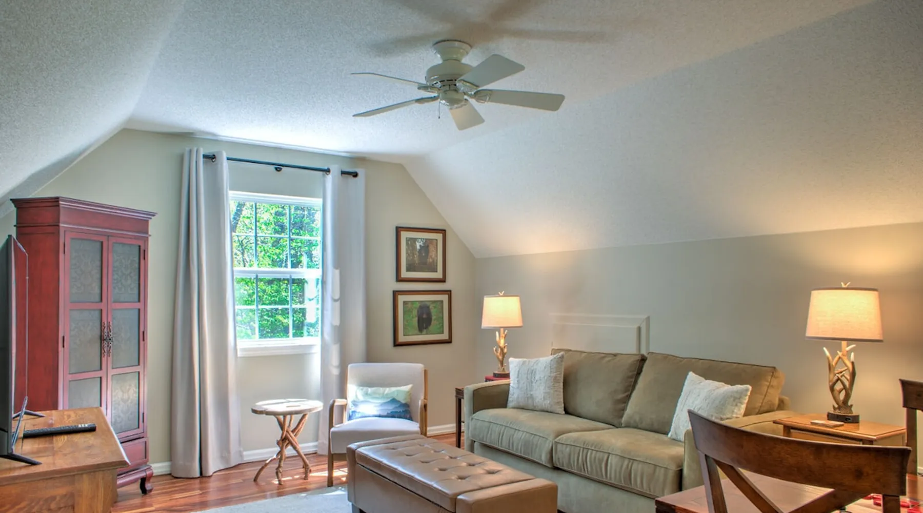 Escape to the tranquility of Back Porch Views, our charming ranch-style home in Sapphire, NC, a 10-minute drive to downtown Cashiers, NC. Nestled in the embrace of breathtaking long—and short-range mountain views, this idyllic setting provides the perfect backdrop for your mountain getaway. The space Escape to Back Porch Views, our charming home nestled in Sapphire, NC, just a 10-minute drive from downtown Cashiers. Part of Sapphire Valley Resorts and surrounded by stunning long—and short-range mountain views, Back Porch Views is the perfect destination for your getaway. Inside, you'll find three bedrooms designed for comfort, featuring two king beds, one queen, and a cozy sleeper sofa with two full bathrooms to accommodate your needs. The space is perfect for six people, but it can accommodate up to eight individuals, making it ideal for family vacations, group getaways, or a cozy retreat with friends. Relax in front of the indoor gas fireplace after a day of mountain adventures. Enjoy entertainment options in the loft, including board games and a gaming table. Stay connected with high-speed WiFi and prepare delicious mountain meals in the fully equipped kitchen. Barbecue on the spacious deck with breathtaking mountain views. Enjoy the fresh mountain air on the large private patio or front porch rocking chairs overlooking a landscaped area with a babbling brook. The pet-friendly property offers open spaces for your furry companion to explore. While staying at Back Porch Views, guests can access the facilities at Sapphire Valley Resort, home to a secluded, four-season, picturesque family of associations amidst the Blue Ridge and Smoky Mountains. Amenities include a hot tub, 2 saunas, a swimming pool, tennis courts, golf, a community center, a recreation center, a bark park, a kids' playground, a soccer field, basketball courts, a walking trail through the woods with exercise stations, lake access, and so much more! Ready to experience the magic of our mountain retreat? Secure your dates now and indulge in the serenity of Back Porch Views. Escape the ordinary and embrace the extraordinary - your mountain adventure awaits! Exclusive Special: When you book Back Porch Views you will receive a special code for discounted tickets to the Biltmore Estate! Home Truths: - Sleeps in beds: 6 - Max Occupancy: 8 - Sapphire Valley Resort is a 5-minute drive from Back Porch Views. - Our team provides linens for all beds; other occupancies will require guests to provide their own linens - Internet Speed: 1GB Our team openly shares our Cleaning Fees in a manner of full disclosure, as we think this is the most honest and forthright approach for our guests. Our Cleaning Fees are backed by our Clean Guarantee, which reflects the highest level of standards, pristine environments for our guests, and a level of cleanness that surpasses any other vacation home; we literally guarantee it! Quiet Policy: Parties, loud noise, and unruly behavior are absolutely prohibited, and guests are expected to respect the neighbors and the peace this mountain retreat area affords. Early Check-In and/or Late Check-Out may be possible, depending on cleaning schedules and other reservations. If it is possible, there may be an additional fee determined based on the time that you wish to check in or out and the seasonal rates. Pets: This home is dog-friendly, and guests are welcome to bring their best friend with them. There is a non-refundable Pet Fee of $130 with a limit of 1 dog per booking party. Military Discount: We have tremendous respect and gratitude for former and present military personnel. We would like to offer a 5% discount on this home. Some restrictions apply, not valid with any other offers. The only thing we ask is that you present identification in the form of a “CAC” card or a “DD Form 2” card (Blue and green). Please type herodiscount into the promo code text box when booking. Payment - Cancellation - Insurance: Contact us for further payment, cancellation, and insurance information. Note: Reservations over 30 days are subject for review prior to acceptance. A separate rental agreement will be required for 90+ day stays Last Minute Bookings: Reservations made within 7 days of check-in require additional verification, including selfie/photo of government-issued ID matching the reservation name, and photo of payment method in the primary guest's name. Failure to complete verification may result in cancellation.