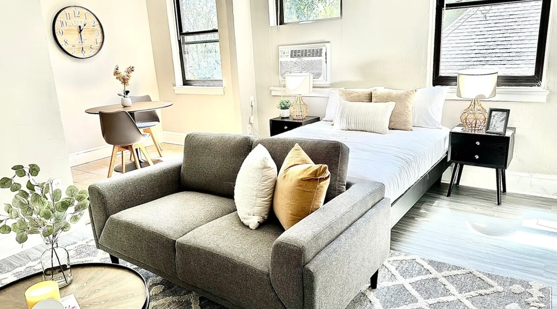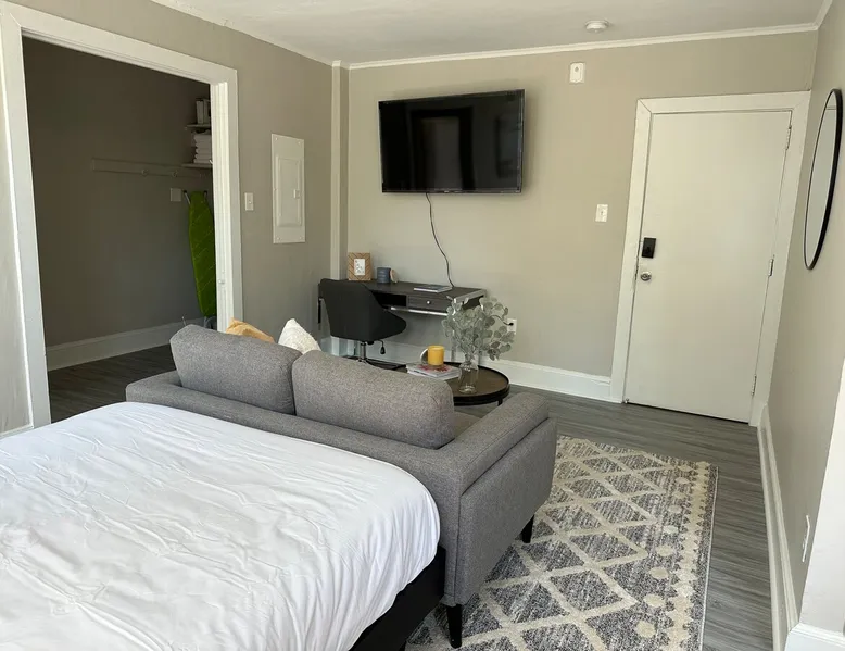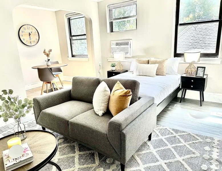 Welcome to your home away from home! Our studio apartment comes fully furnished and ready for you to unpack and settle in. One full bath, separate living nook, and walk in kitchen. 30+ day stays. Centrally located, you are just a short drive or bike ride away from Germantown, Manayunk, and Northwest Philadelphia where you will find shops, cafes, and restaurants. This unit is on the 4th floor. The space This is a studio apartment with a separate kitchen nook, and a small living nook with a loveseat. You will have everything you need to settle in, including kitchen supplies, linens, towels, and basic cleaning tools. Please note, we do not provide items that need refilling such as: soaps, toilet paper, or laundry detergent. Guest access You will have full and private access to your unit. You will also have access to the building common areas and laundry.