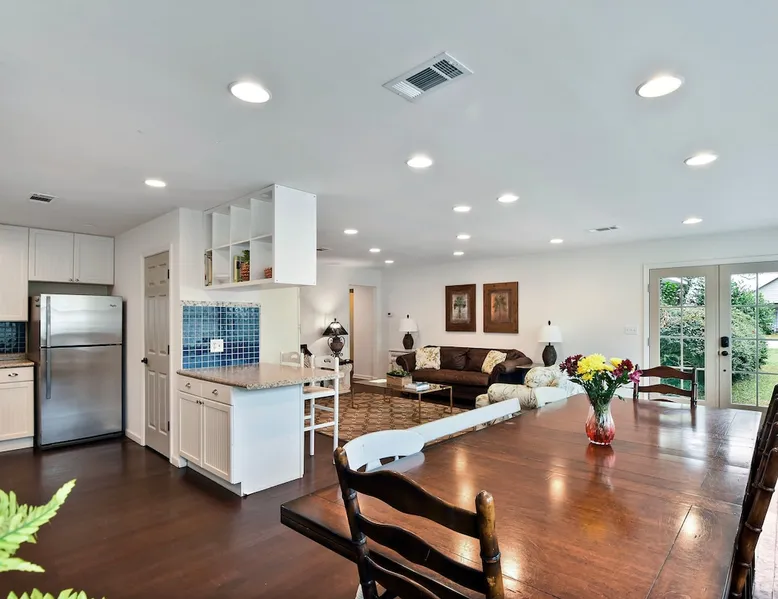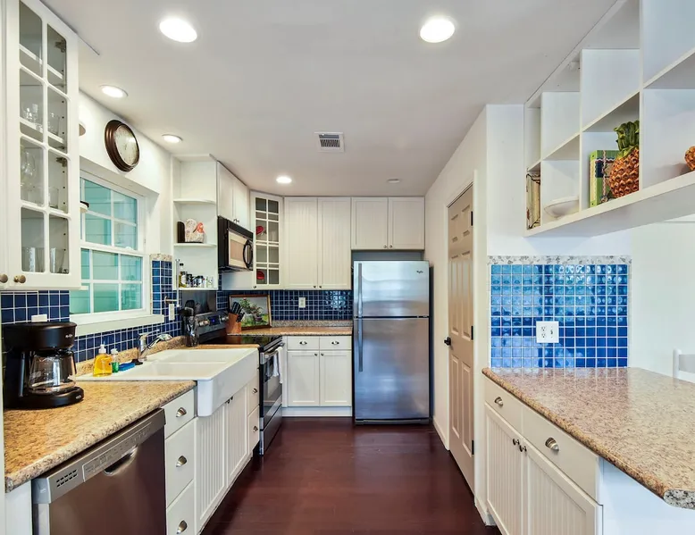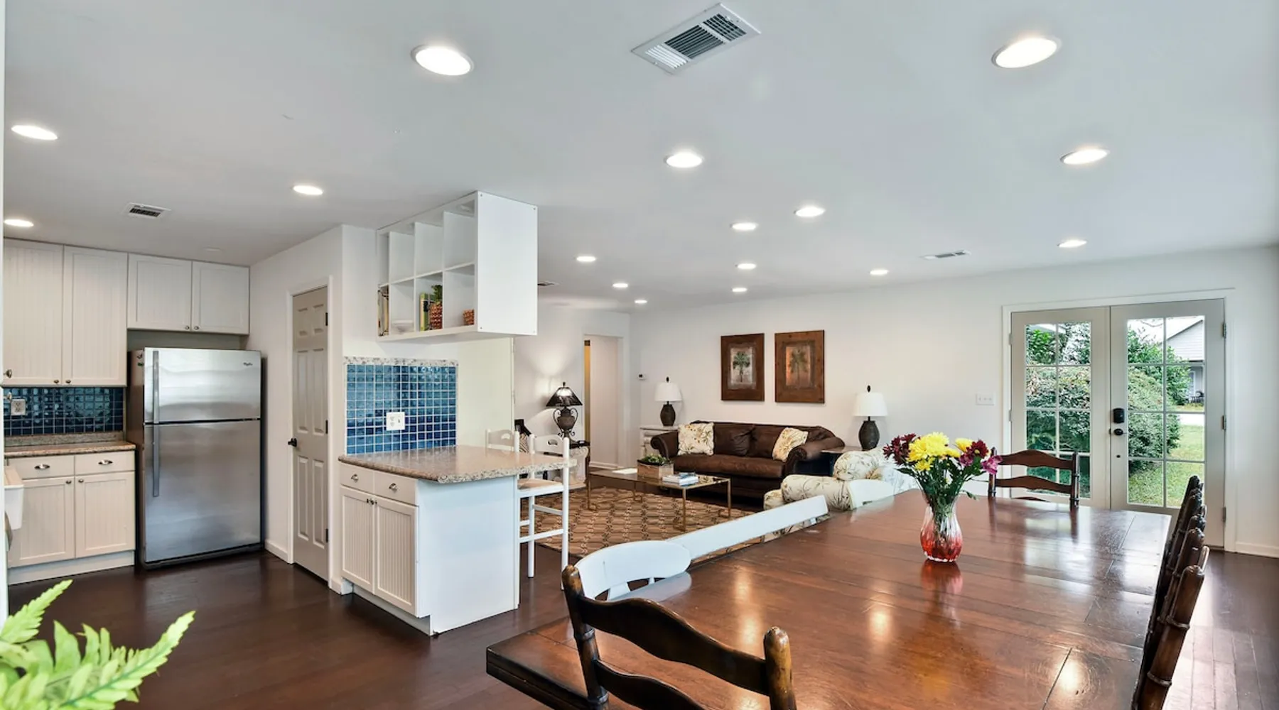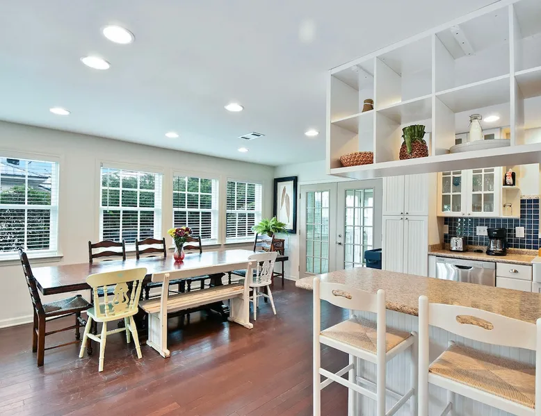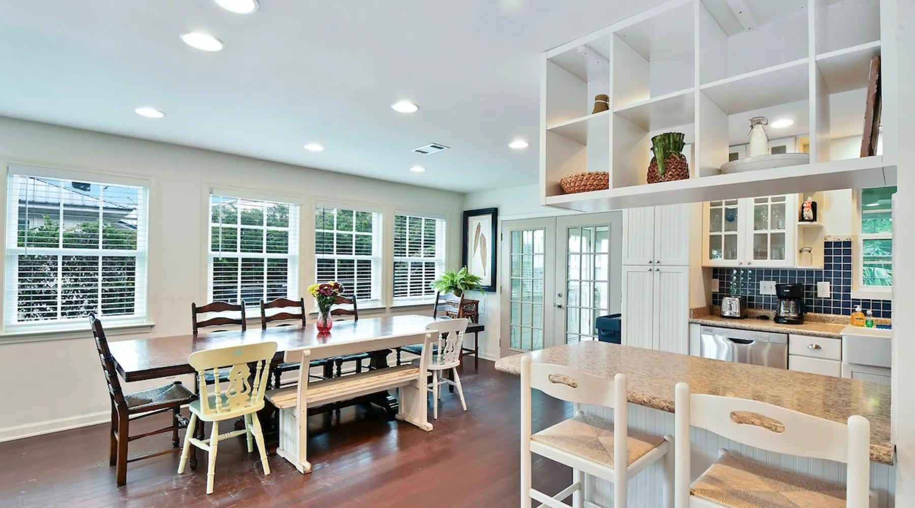 Dog-friendly East Beach beach house just 4 houses from the sand. Sleeps 8 with 4 bedrooms, sun porch, fenced yard, smart TVs, full kitchen, and walkable beach access at high and low tide. Close to Crab Daddy’s, The Crab Trap, and Barrier Island Brewing. The space YOUR ST. SIMONS VACATION HOME Jack’s Place is a St. Simons Island vacation rental that gets the important stuff right—four houses from the beach, four real bedrooms, and the kind of sun porch you’ll start calling dibs on before you unpack. Tucked into East Beach (the neighborhood locals would pick every time), this dog-friendly beach house blends laid-back comfort with just enough polish to keep things easy. Inside, you’ll find a sunny, open living area with hardwood floors, smart TVs, a fully equipped kitchen with stainless appliances and cerulean tile, and a 9-foot dining table built for shrimp boils, pancake mornings, or whatever your crew calls dinner. The sun porch has its own TV and wicker lounge setup, and the fenced backyard is perfect for lawn games or letting the dog stretch out. This East Beach vacation home is a short walk to Barrier Island Brewing, Crab Daddy’s, and The Crab Trap, with walkable beach access year-round—even at high tide, which is rare on St. Simons Island. Whether you're traveling with kids, friends, or a few generations at once, Jack’s Place has the kind of layout and location that makes every plan easier. And yes—someone’s definitely making a Frosty’s run before the night's over. SLEEP ON ST. SIMONS • Bedroom 1 (Primary) – 1 King bed, smart TV, dresser, closet, ceiling fan • Bedroom 2 – 1 Queen bed, corner windows, soft linens, ceiling fan • Bedroom 3 – 1 Queen bed, dresser, palm art, ceiling fan • Bedroom 4 – 1 Queen bed, gingham quilt, double closets, ceiling fan ST. SIMONS OUTDOOR LIVING • Fenced backyard with space to play or let the dog roam • Wicker-furnished sun porch with TV and ceiling fans • Charcoal grill for low-key cookouts or seafood nights • Parking for up to 3 vehicles, right out front • Walkable beach access year-round—even at high tide VACATION RENTAL CHEAT SHEET • Located in East Beach, St. Simons Island • Just four houses from the beach with walkable access at high and low tide • Sleeps 8: 1 king, 3 queens • Pet friendly for up to 2 dogs (65 lbs max) • Fenced backyard • Charcoal grill • Two full bathrooms, each with a tub/shower combo • Parking for 3 vehicles • Full-size washer and dryer in unit • Smart TVs with YouTube TV and fast, free WiFi THE STARTER PACK We set you up with essentials to start your stay • 1 roll of paper towels • 1 sponge • 2 dishwasher pods • 2 laundry pods • 2 trash bags • 2 rolls of toilet paper per bathroom THE FINE PRINT • Pet friendly: up to 2 dogs (65 lbs max), no cats • Full-size washer and dryer in unit • Accommodation Excise Tax Certificate #105550 WHY EMMONS? Jack's Place is managed by Emmons Realty, the most-reviewed vacation rental company on St. Simons Island. Locally owned, family-run, and always a call away. We want your vacation to feel like fireworks—but run like clockwork.