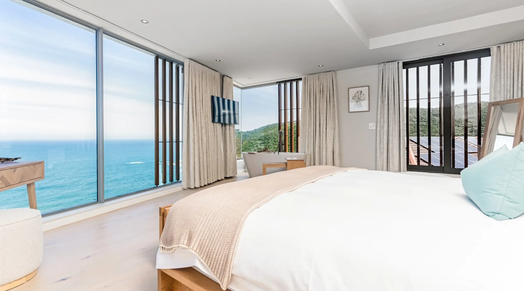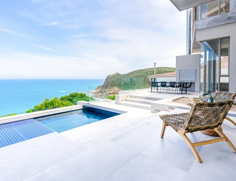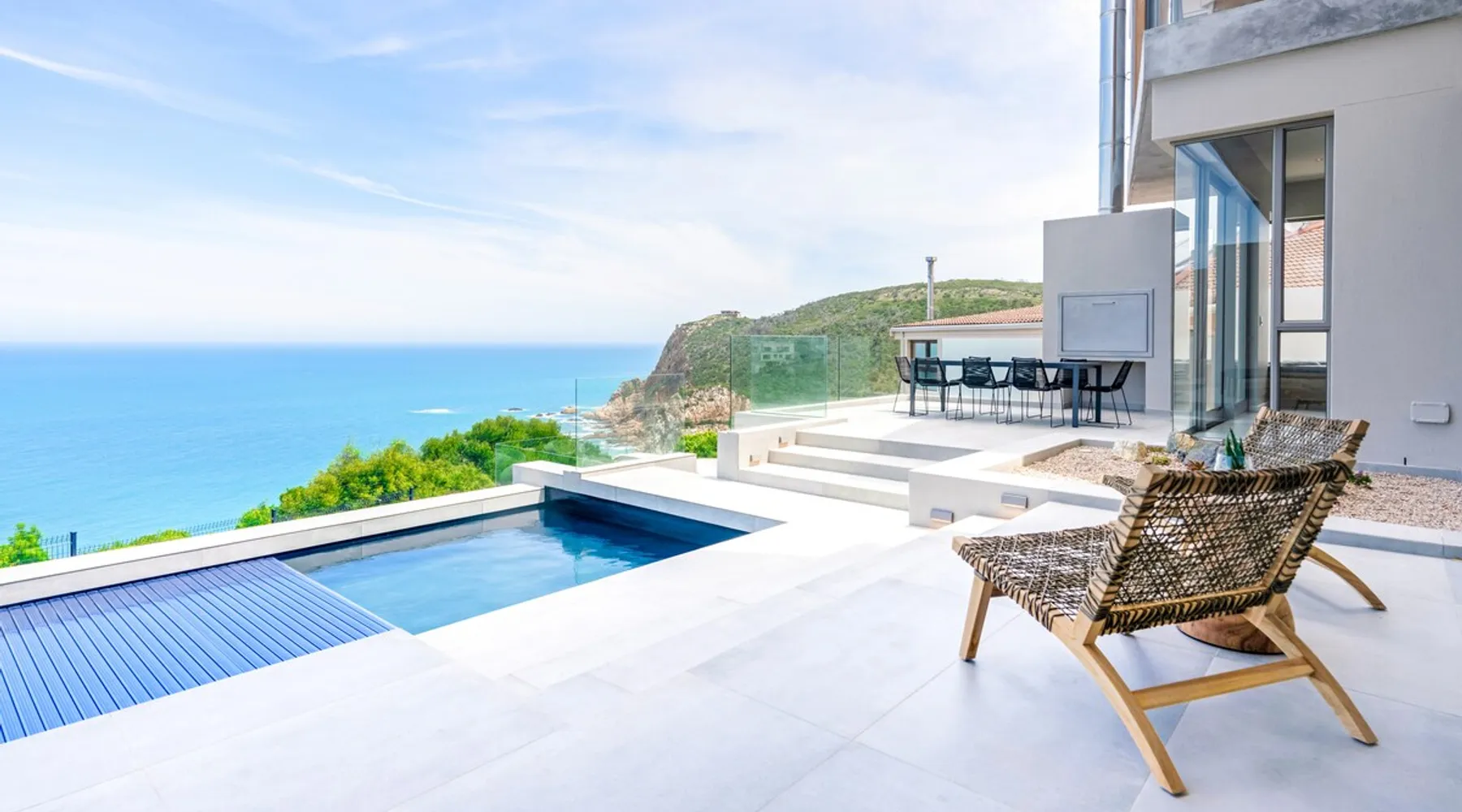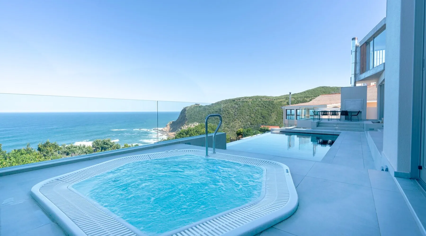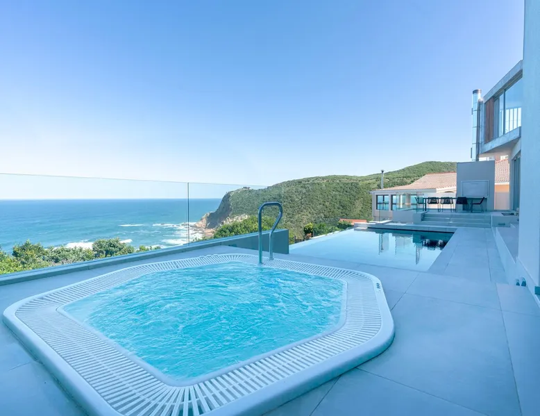 Welcome to your dream retreat at the world-famous Knysna Heads, where luxury meets nature. This stunning 4-bedroom villa is perched on the western head, offering unparalleled panoramic views of the ocean. Pure Emotions villa is more than just a home; it’s a sanctuary where every detail has been carefully considered to offer an exceptional living experience. Whether you’re looking for a serene escape or the perfect holiday Villa, this property provides the perfect blend of both. The space Features • Modern and Stylish Design: The villa boasts contemporary architecture and chic interiors that harmonize with the natural beauty surrounding it. • Heated Swimming Pool: Enjoy a dip in the heated pool while soaking in the mesmerizing ocean vistas. • Jacuzzi: Unwind in the Jacuzzi as you watch the sun set over the horizon. • Gym: Stay fit and healthy in the well-equipped private gym. Bedrooms • Spacious and Elegant: The four bedrooms are designed with comfort and style in mind, offering ample space and luxurious finishes. • Ocean Views: Wake up to the sound of waves and stunning sea views from the comfort of your bed. • A fire pit and large stainless-steel wood barbeque: Beautifully appointed and set against amazing views, transforming the outdoor space into a haven of relaxation and enjoyment. It’s more than just a place to cook or keep warm; it’s where memories are made, stories are shared, and the beauty of nature is fully appreciated. Embrace the luxury of outdoor living with these extraordinary features, and make every moment spent outside truly special. Guest access During their stay, guests are granted full access to the entire property. This access includes all amenities and common areas, ensuring a comfortable and enjoyable experience throughout their visit.