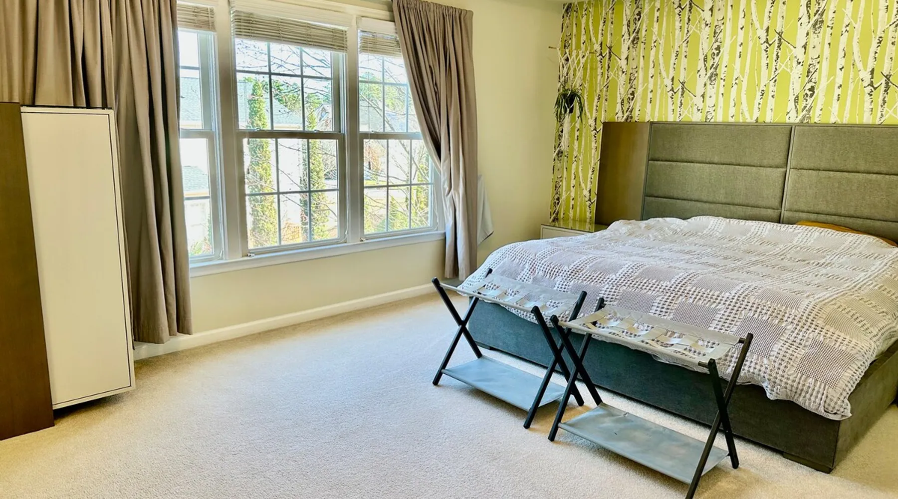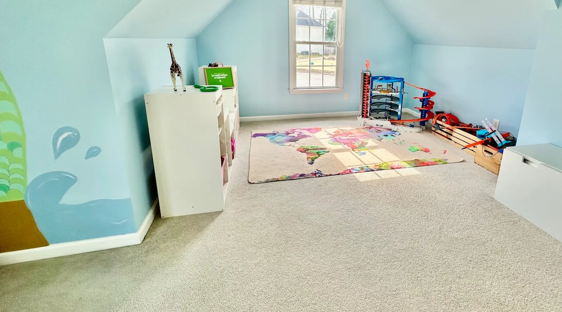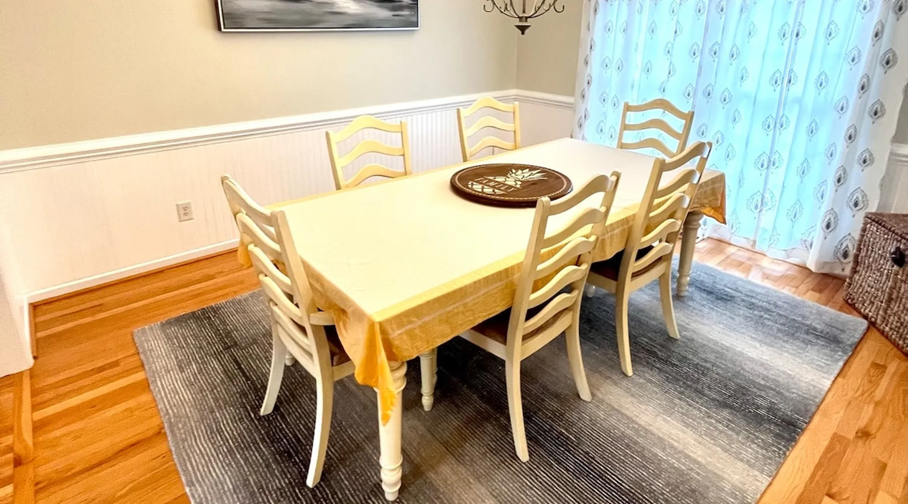 Our house is your house. Welcome to Durham! The house is near Southpoint mall, grocery stores, I40, 8 mins to RTP, ~13 mins to the airport, 17 mins to UNC hospitals, and 18 mins to Duke University. There are 4 bedrooms, 3 bathrooms, a playroom, a living room, front room, dining room, kitchen, sun room and a fenced yard. There are two small dog doors that lead into the fenced in back yard. Plus you have access to a neighborhood pool & playground. Beds for 7 + queen air mattress for 2= sleeps 9 Guest access You will have access to the entire house except for the garage, office, and a few closets - not pictured. Other things to note The house is well stocked as we live there a big chunk of the year. The house can sleep 9. That’s 7 in beds (king, queen, queen, twin) plus a queen blow-up. Pack and play also available upon request.