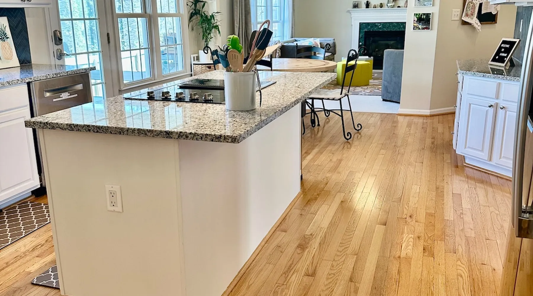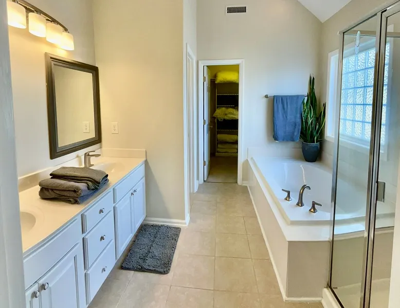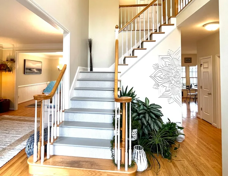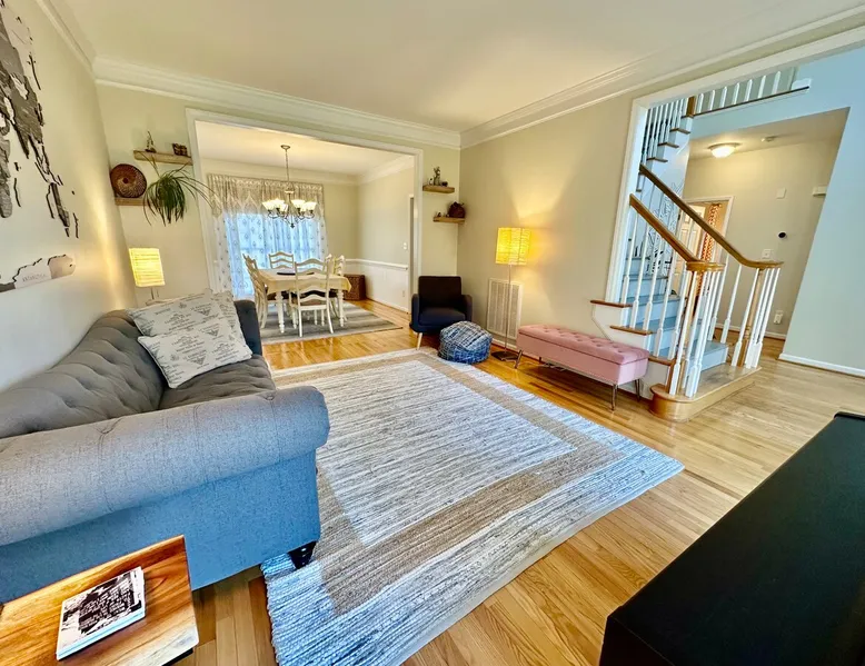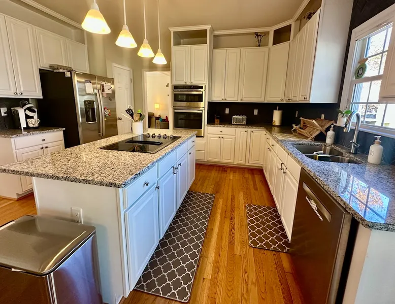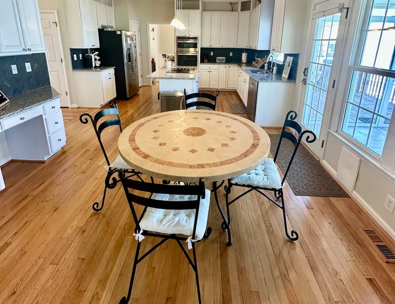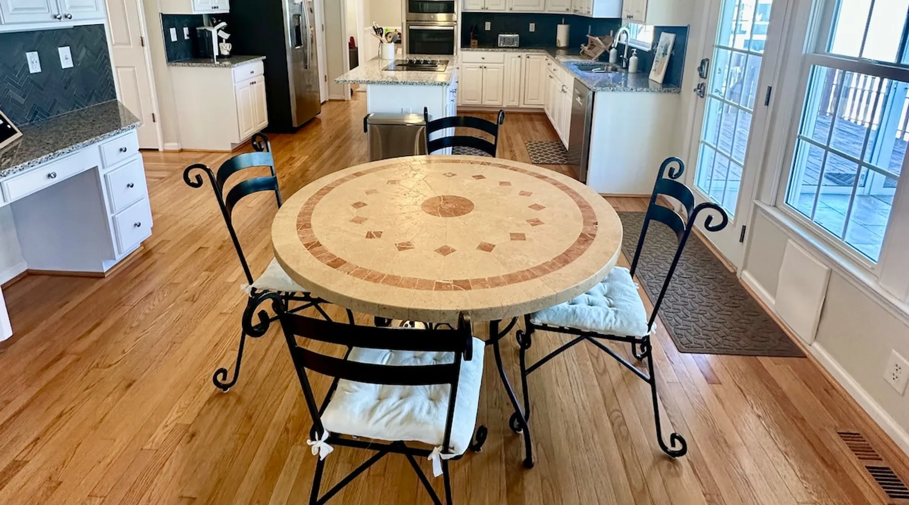 Our house is your house. Welcome to Durham! The house is near Southpoint mall, grocery stores, I40, 8 mins to RTP, ~13 mins to the airport, 17 mins to UNC hospitals, and 18 mins to Duke University. There are 4 bedrooms, 3 bathrooms, a playroom, a living room, front room, dining room, kitchen, sun room and a fenced yard. There are two small dog doors that lead into the fenced in back yard. Plus you have access to a neighborhood pool & playground. Beds for 7 + queen air mattress for 2= sleeps 9 Guest access You will have access to the entire house except for the garage, office, and a few closets - not pictured. Other things to note The house is well stocked as we live there a big chunk of the year. The house can sleep 9. That’s 7 in beds (king, queen, queen, twin) plus a queen blow-up. Pack and play also available upon request.