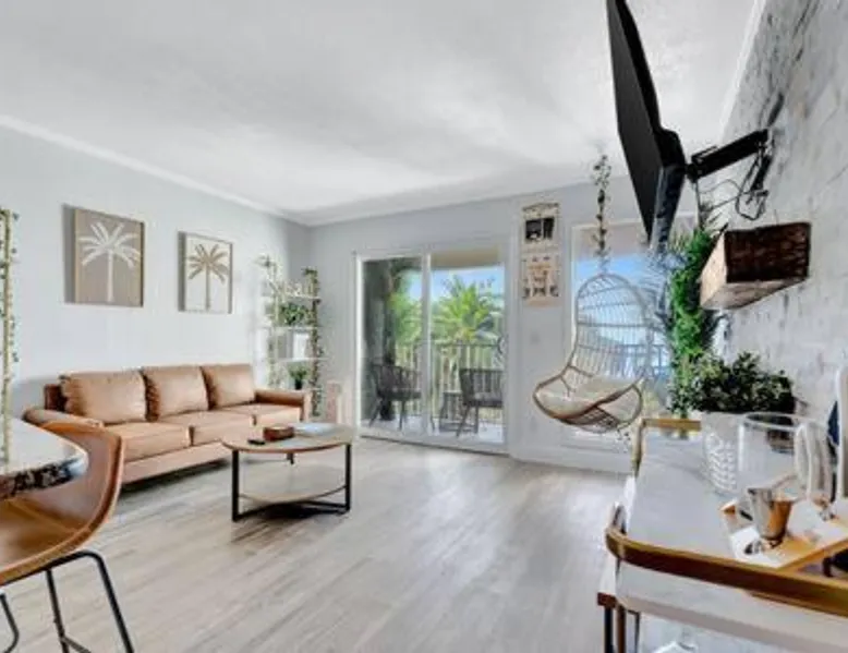 Modern Comforts: The Palm Exclusive Tropical Luxury on the Water in Tampa offers a recently renovated apartment with one bedroom and one bathroom. Guests enjoy air-conditioning, a washing machine, and a fully equipped kitchen with a dishwasher and microwave. Facilities and Amenities: The property features a fitness center, free WiFi, and a elevator. Free on-site parking is available, along with a patio and a fireplace. Additional amenities include a barbecue, tea and coffee maker, hairdryer, refrigerator, and TV. Location and Attractions: Located 4.3 mi from Tampa International Airport and 1.2 mi from Ben T Davis Beach, the apartment is near Raymond James Stadium (5.6 mi) and Hyde Park (8.1 mi). Other attractions include Busch Gardens (14 mi) and The Dali' Museum (22 mi). Guests will have a special experience as this apartment offers a fireplace. The air-conditioned apartment features 1 bedroom and 1 bathroom with a bath and a hairdryer. Guests will find a stovetop, a refrigerator, a dishwasher and kitchenware in the fully equipped kitchen. The apartment also has a barbecue. This apartment has a washing machine, a tea and coffee maker, a TV and a patio. The unit offers 1 bed.