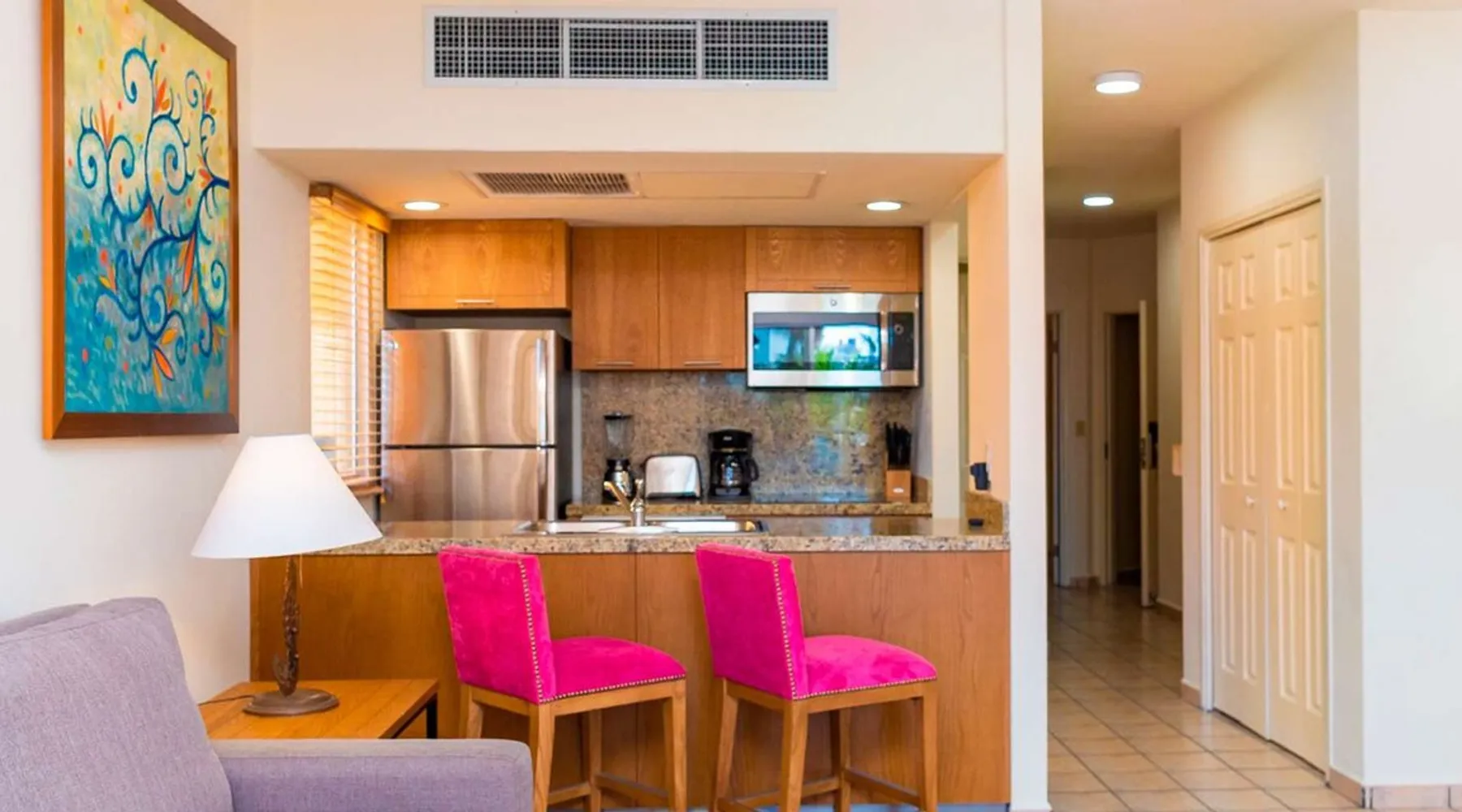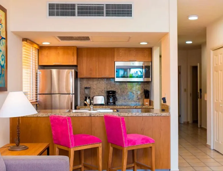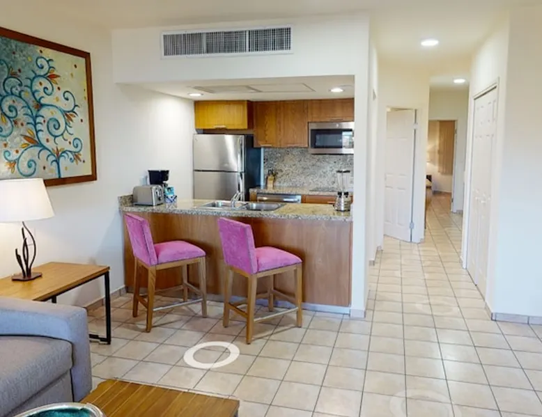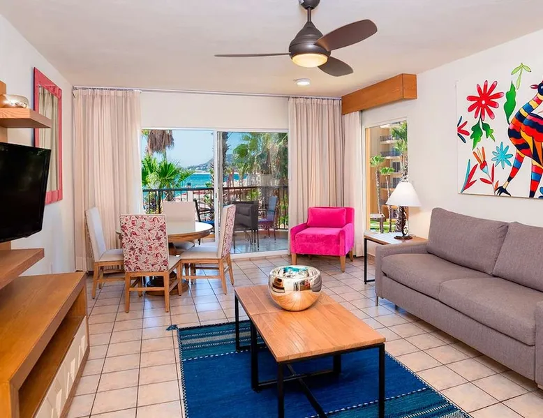 Book your magical getaway at this beautiful 2-bedroom beachfront resort suite at Villa del Palmar, with King beds and endless amenities. This fits up to 6 adults (children under 2 can be added as additional guests) 15 min walk from downtown & the marina Here's what you get when you book: Beach access Wifi Free Parking 2 Bedrooms 2 King beds Sofa bed Kitchen Living Room 3 Full Bathrooms 3 TVs Room Cleaning Gym Pool Hot Tub Children's Play Area Baby-Sitting Services On-Site Restaurants The space Your Two Bedroom Villa Suite boasts 1,130 square feet which accommodates a total of 6 guests. Feature two master bedrooms with one king-size bed each to offer the perfect amount of privacy and comfort. In addition, the Two Bedroom Suite has a sofa in the living room, fully equipped kitchen, dining area and 3 full luxurious bathrooms. A private terrace offers additional space for relaxing during the day and stargazing at night. How do you get this awesome resort and such an awesome price? I am a member at the villa so I get discounted rates which I pass on to you here on Airbnb. I do not own a specific unit so the view will either be a beach view, a garden view or a pool view depending on room availability and the room will be assigned at check-in. The entire resort is located right on the beach so you will have beachfront access as a guest. This is a steal of a deal, so don't miss your chance to stay at this amazing resort for an amazing price. Villa del Palmar Beach Resort & Spa Cabo San Lucas is located on Médano Beach overlooking Land’s End and the El Arco rock formation, and is surrounded by supernal natural beauty. It is within walking distance from downtown and other local attractions, and it can easily be reached when coming from the International airport located in Los Cabos. It's in central Cabo San Lucas and also close to Lover's Beach and Puerto Paraiso Mall. If you'd like shuttle services, you can ask me about that once you book and I will give you the number to call to book that. This resort has a private beach area and bike rental and car rental are available. You can play tennis at this resort, and the area is popular for biking. The nearest airport is Los Cabos Airport, 22 miles from the property. Here's what's going to make your vacation even more magical: Love water sports? Just step out and you've got parasailing, jet skiing, paddle boating, and speed boating. If night is your time to thrive, the vibrant downtown is just a few min away. This resort is just a short 15-minute walk to the Marina where all the major restaurants and the hub of Los Cabos downtown, There are restaurants on site at the resort or you can access a number of restaurants within a 5-minute walk. Late-night check-in is also welcome. The concierge is there to greet you anytime. ROOM FEATURES * Air conditioning * Climate control * Private Balcony or terrace * Mini bar * Cofee/tea maker * Premium television channels * Phone * Kitchen * Toaster * Daily housekeeping * Electronic/magnetic keys * Electric Current: 110/120 volts at 60 cycles - Same as the United States * Kitchens - units are equipped with dishes, glassware and utensils. They are equipped with microwaves, sinks, small refrigerators, blenders, toasters, coffee makers and 2 burner electric stoves * Safety Deposit Box in each unit * Iron, Ironing boards and Hair dryers available in units * Telephone OTHER RESORT AMENITIES: * 24 hour guarded gate entrance * Medical Services on site * Elevators available at each building * Spa Services - Desert Spa - (Indoor Jacuzzi, sauna and steam room) * Fitness Center on site * Pre Stock Packages -Groceries, flowers, champagne and a variety of amenities for special occasions are available * Transportation - Round trip transportation from the airport can be arranged for a fee * Roll-away beds available (charge may apply) * Cribs available upon request (charge may apply) * Currency Exchange Cashier in lobby at Villa Del Palmar * Free parking * Car Rental available on site * Tour Agents available on site * Hospitality Suite available on site * Laundry Service and Laundromat Facilities on site * Free trolley ride runs every 10 minutes that drops you off to the 2 adjoining sister resorts RESTAURANTS: * Sports Bar - 1:00pm to 10:30pm * Taco Bar - Monday 12:00 pm to 5:00pm, Tuesday through Sunday 12:00pm to 9:00pm * Bella California - Serving breakfast lunch and dinner * Room Service - available 24 hours a day * Palmita Market & Deli - 7:00 am to 10:30 pm * Tomatillos - a farm to table restaurant provides healthy food options POOL & BEACH SERVICES: * 3 pools * 2 outdoor Jacuzzis * Whale water slide * Towels for beach and pool available at Towel Stand 7:00 am to 8:00 pm * Chaise lounge chairs provided at pool and at the beach * Poolside wait services available ENTERTAINMENT / PROGRAM ACTIVITIES * Theme nights and activities are available throughout the week. Schedules are available at the Activities Center and posted throughout the resort. * Water aerobics * Beach Volleyball * Bingo * Paddle Boards * Kayaks * Snorkel equipment, and more are available on site. AIRPORT SHUTTLE Cabo San Lucas International Airport is approximately 45 minutes and 30 miles away from the resort. The resort provides round trip transportation from the airport to the resorts Guest access As an honored guest, you will be able to access all the amenities listed above. Other things to note RESORT CHARGES US $ 5 to $8 CLEANING FEES PER DAY/GRATUITY TO BEHIND THE SCENE EMPLOYEES. GUESTS PAY THESE FEES TO RESORT DIRECTLY UPON CHECK IN I don’t have a specific unit, the view will depend on availability, however there is a good chance of getting an ocean view. The view will either be a garden view or an ocean view. You can make your request once you arrive at check-in.