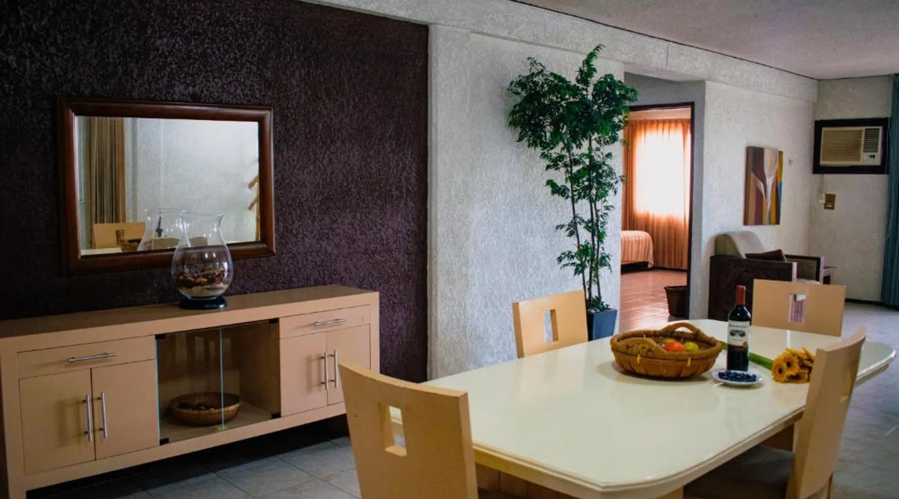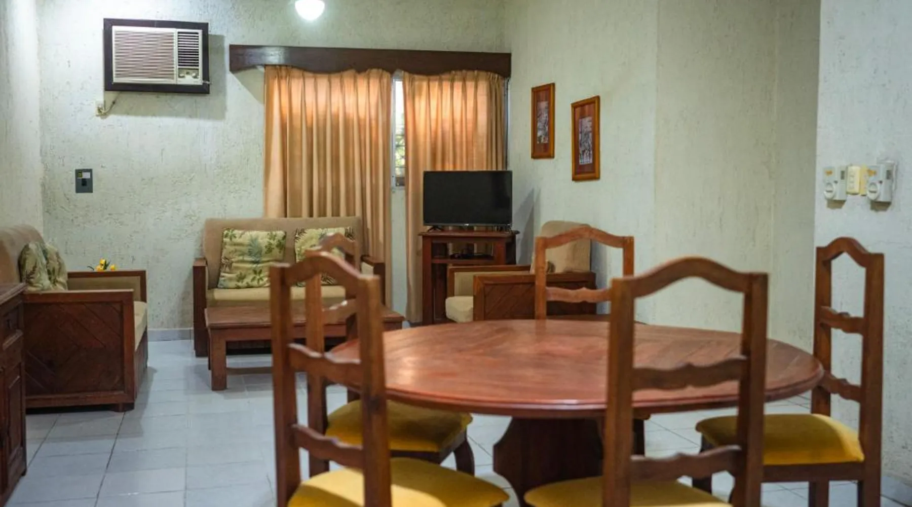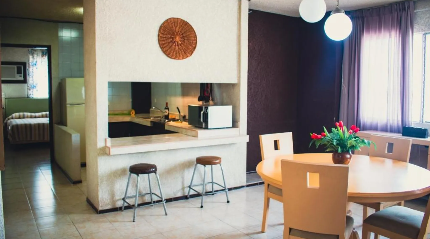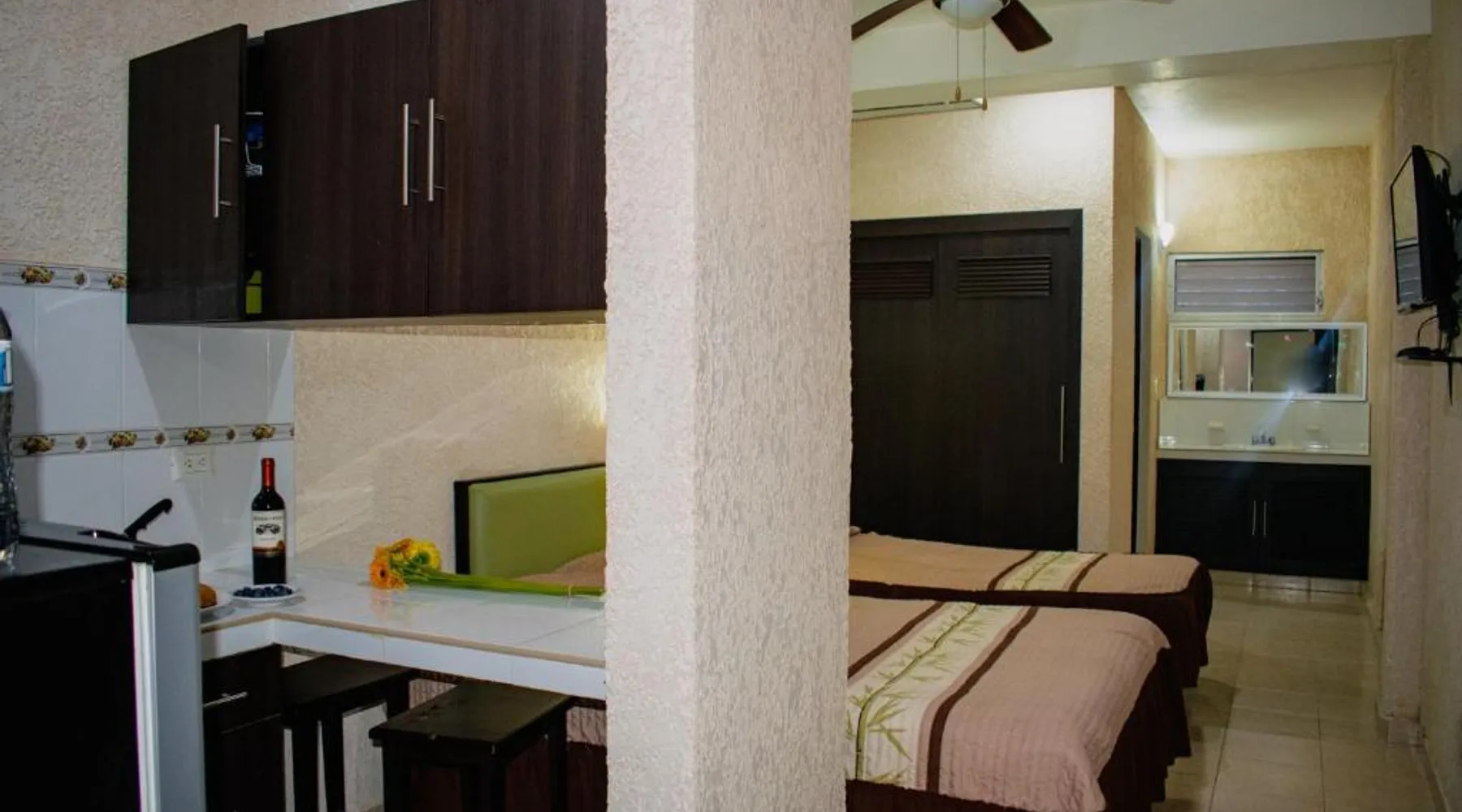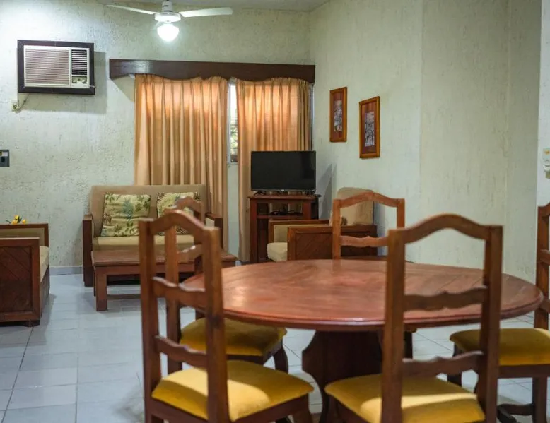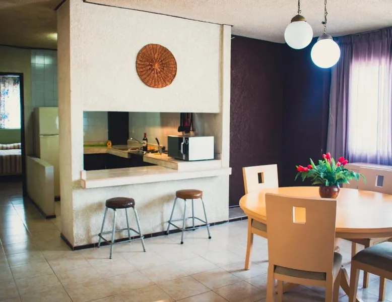 Comfortable Accommodations: Suites del Sol Hotel & Apartments in Mérida offers family rooms with air-conditioning, private bathrooms, and free WiFi. Each room includes a tea and coffee maker, dining table, work desk, free toiletries, microwave, shower, TV, dining area, and wardrobe. Convenient Facilities: Guests enjoy free on-site private parking, ensuring easy access to the city center. The hotel provides free WiFi, air-conditioning, and a work desk, catering to both business and leisure travelers. Prime Location: Located 3.7 mi from Manuel Crescencio Rejón International Airport, the hotel is close to Merida Cathedral (18-minute walk), Main Square (1 mi), La Mejorada Park (1.1 mi), and Yucatan International Convention Center (13-minute walk). Nearby attractions include Mundo Maya Museum and Kukulcan Stadium, each 4.3 mi away. Guest Satisfaction: Highly rated by guests for its attentive staff, convenient location, and comfortable rooms, Suites del Sol Hotel & Apartments offers a pleasant stay in Mérida. The apartment features 1 bedroom and 1 bathroom with a shower and free toiletries. The apartment provides air conditioning, a tea and coffee maker, a wardrobe and a flat-screen TV. The unit offers 2 beds.