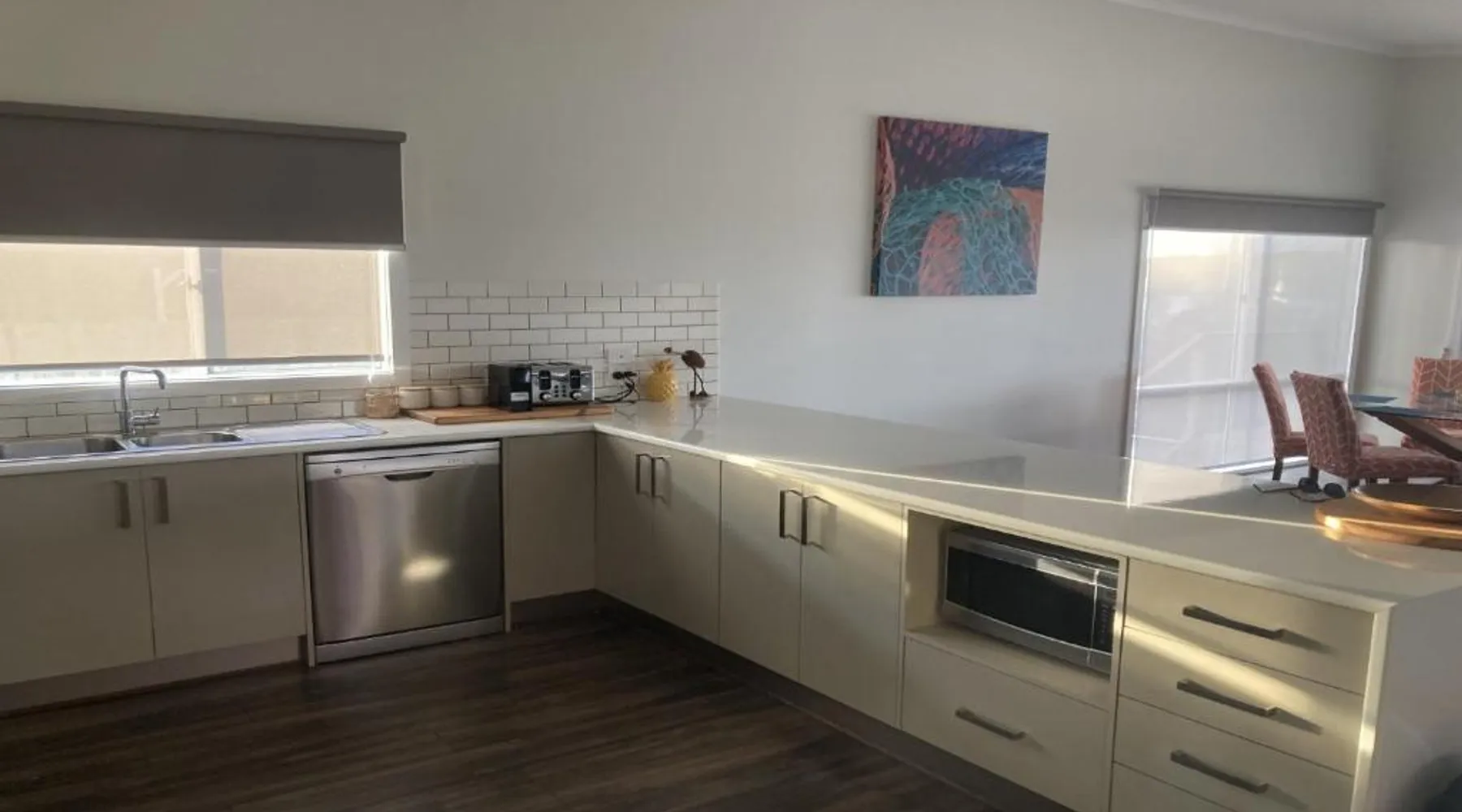 Spacious Accommodations: Off The Net in Coffin Bay offers a spacious holiday home with four bedrooms and three bathrooms. The property features a balcony with sea views, air-conditioning, and a fully equipped kitchen. Modern Amenities: Guests can enjoy a washing machine, dishwasher, microwave, and a range of kitchenware. The home includes a dining table, barbecue, and outdoor furniture, ensuring comfort and convenience. Convenient Facilities: The property provides free on-site private parking and laundry service. Reception staff speak English, and Port Lincoln Airport is 35 mi away. Port Lincoln Marina is 30 mi from the property. This spacious holiday home is consisted of of a kitchen, a seating area, 4 separate bedrooms and 3 bathrooms with a bath and a shower. In the well-fitted kitchen, guests will find a refrigerator, a dishwasher, kitchenware and an oven. The air-conditioned holiday home offers a TV, a washing machine, an electric kettle, a barbecue as well as sea views. The unit offers 5 beds.