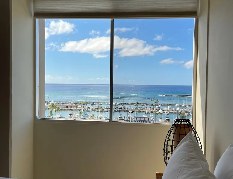 Construction Notice 10/20/25: Exterior painting work is currently scheduled from 1/12 - 2/6/26. During this time, the lanai will be locked and not accessible to guests. For your safety, please do not attempt to use the lanai at any time. You may also hear construction noise during work hours of 8am - 4pm, Monday through Friday. Please note that these dates may change & we recommend you reach out to us for any updates on the schedule. A truly one-of-a-kind condo in the Ilikai Marina! This condo has been completely renovated with an architecturally designed interior to maximize space and comfort, while providing luxury finishes. The open kitchen features rich, dark wood cabinetry with countertop dining and a convenient island for prep. The living room is separated from the bedroom with a wooden pocket door. Enjoy incredible views of the ocean, from both the living area and from the king size bed. Custom wooden closet system delivers ample storage space. The bathroom creates a spa-like experience of serenity with earth tones and a custom frosted glass etched partition. KITCHEN - Full Size Refrigerator - Range - Dishwasher - Microwave - Dinnerware, Glassware, Silverware, Cookware, Coffee Maker, Rice Cooker, Blender, Kettle Provided LIVING AREA - Flat screen Smart TV - Couch - Central AC - Bar Seating for 2 BEDROOM - King Bed - Custom Closet System with ample space BATHROOM - Shower with removable shower head - Hair Dryer AMENITIES Your stay includes cable TV, high-speed internet with password-protected WiFi. We provide a starter kit of essentials, which includes liquid dish soap, a dishwashing packet, a kitchen sponge, trash liners, a roll of paper towels, coffee, condiment packets, travel-size shampoo, conditioner, body lotion, soap, facial tissue, and an extra roll of toilet paper. Please note we do not replenish these items once the starter set is depleted. Each bathroom is equipped with 4 sets of towels, and blankets can be found in each bedroom closet. We are delighted to provide beach towels for your stay. Please ensure they are returned to the room at check-out. If they are not, a $10 fee per towel may be applied to your account. Housekeeping services available for an additional fee. BUILDING AMENITIES Shared laundry facilities are located on the 8th floor, with payment available via an app or credit card. A trash chute is conveniently situated at the end of the hallway. The property provides 24/7 security for your peace of mind. Please note, this building does not have a pool, nor is there access to one at another location. Parking is available in the building for $33 per day (*rates subject to change), and metered street parking is available along the harbor for $1 per hour. Routine pest control and maintenance are occasionally scheduled by building management. Smoking and vaping are strictly prohibited in the unit and on the lanai. Marina Hawaii Vacations has been providing fully furnished condo rentals to travelers since 1965. Book with confidence, as we offer only legal vacation rentals in Waikiki and the surrounding areas. Plus, you'll save when you book directly with us! Please note that the condos are privately owned, and construction or building maintenance may occur during your stay. While owners have no control over external work or noise, construction is typically limited to Monday–Friday from 8:00 AM to 4:30 PM, with no work on weekends or holidays. Most guests experience little to no disruption, as they are often out exploring the island, enjoying the beaches, shopping, or participating in activities. If you have any concerns, please contact a vacation rental specialist with Marina Hawaii Vacations! TA - 074-980-6080-01 TMK - 260100020152 STR #2457