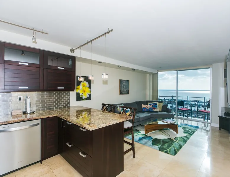 Located within the Ilikai Marina, this condo is located on the 13th floor. You'll love the convenient location in Waikiki, close to the beach, Ala Moana Shopping Center & the Waikiki strip! Gorgeous one bedroom unit with a king bed. Full kitchen and fully furnished for your comfort. FREE WIFI, Smart TV and central AC. Registration Details 260100020152, 1388, TA-074-980-6080-01