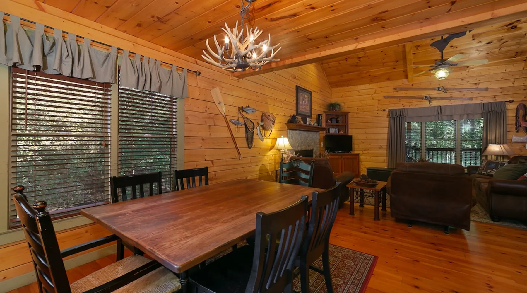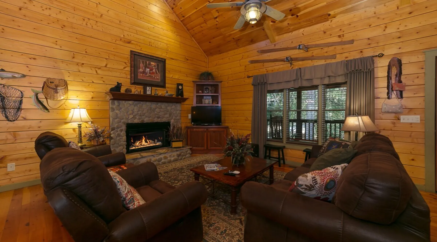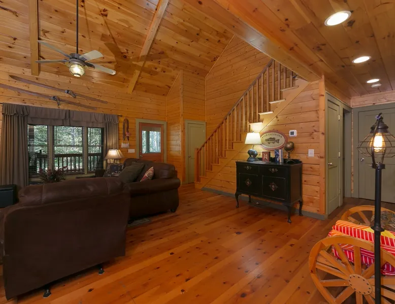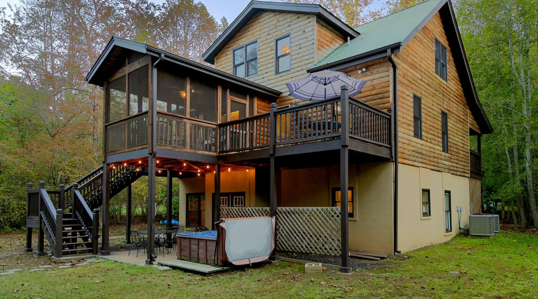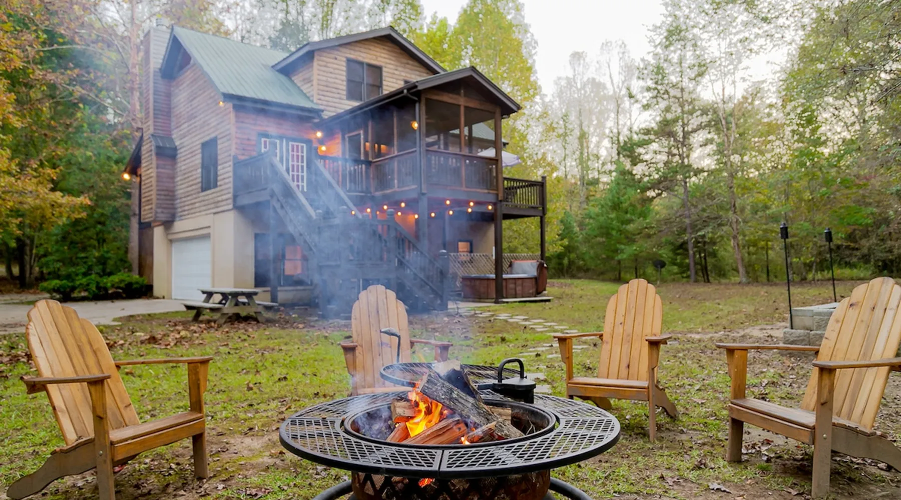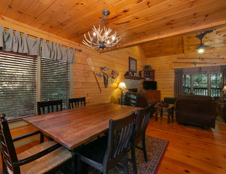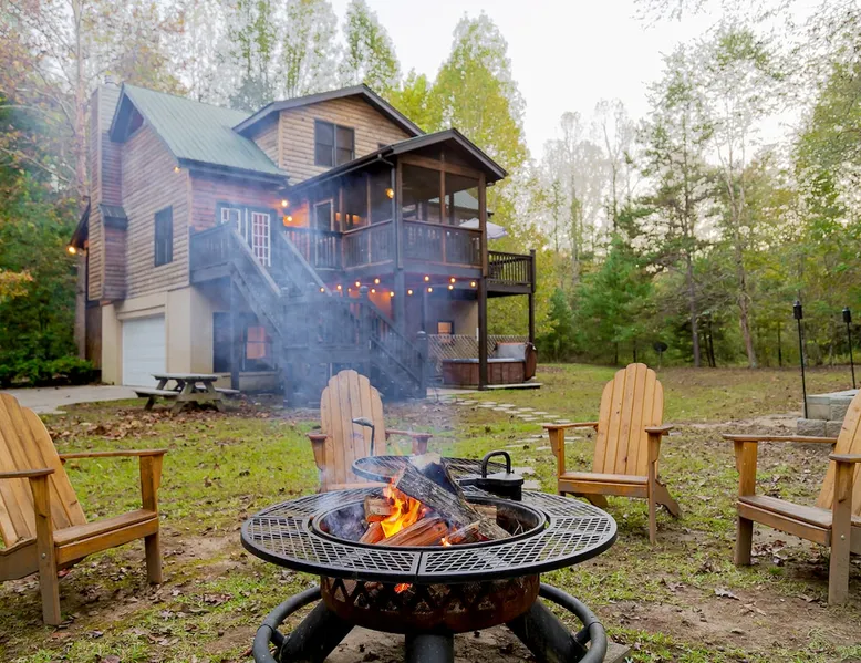 Rustic cabin with ample outdoor living and river views Down by the River is your ideal family vacation spot, situated a few miles south of Alpine Helen, Ga. This beautiful home is on the Chattahoochee River and has steps leading all the way down to the river, making it ideal for fishing, swimming, or canoeing! The space Down by the River is your ideal family vacation spot, situated a few miles south of Alpine Helen, GA. This beautiful home is on the Chattahoochee River and has steps leading all the way down to the river, making it ideal for fishing, swimming, or canoeing! This beautiful rustic cabin has vaulted ceilings and during cool fall & winter evenings, guests can gather around the gas-burning log fireplace. Gather with the family, pop some popcorn, and play board games, or enjoy sipping on a bottle of wine from local area wineries as you snuggle by the fire. Down by the River has so many wonderful features! Guests can relax in the outdoor hot tub overlooking the river, or enjoy cooking out on the propane grill provided. Not guaranteed but you may be grilling some fresh-caught fish! What about all of the most popular games at your disposal? A game of billiard, air hockey, or ping pong for your enjoyment. Don't forget to bring the marshmallows and enjoy sitting around the outdoor fire pit. Down by the River cabin is sure to be a family vacation to remember, so don't forget to take some pictures while you vacation with us at this cabin on the Chattahoochee! Other things to note 25+ age requirement for lead guest. No exceptions. This property is not pet-friendly. No exceptions. Digital rental agreement will be required to sign and complete after property is booked. Firewood not supplied. Tubes/kayaks not supplied.