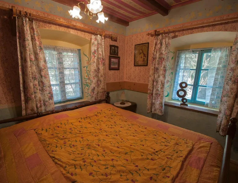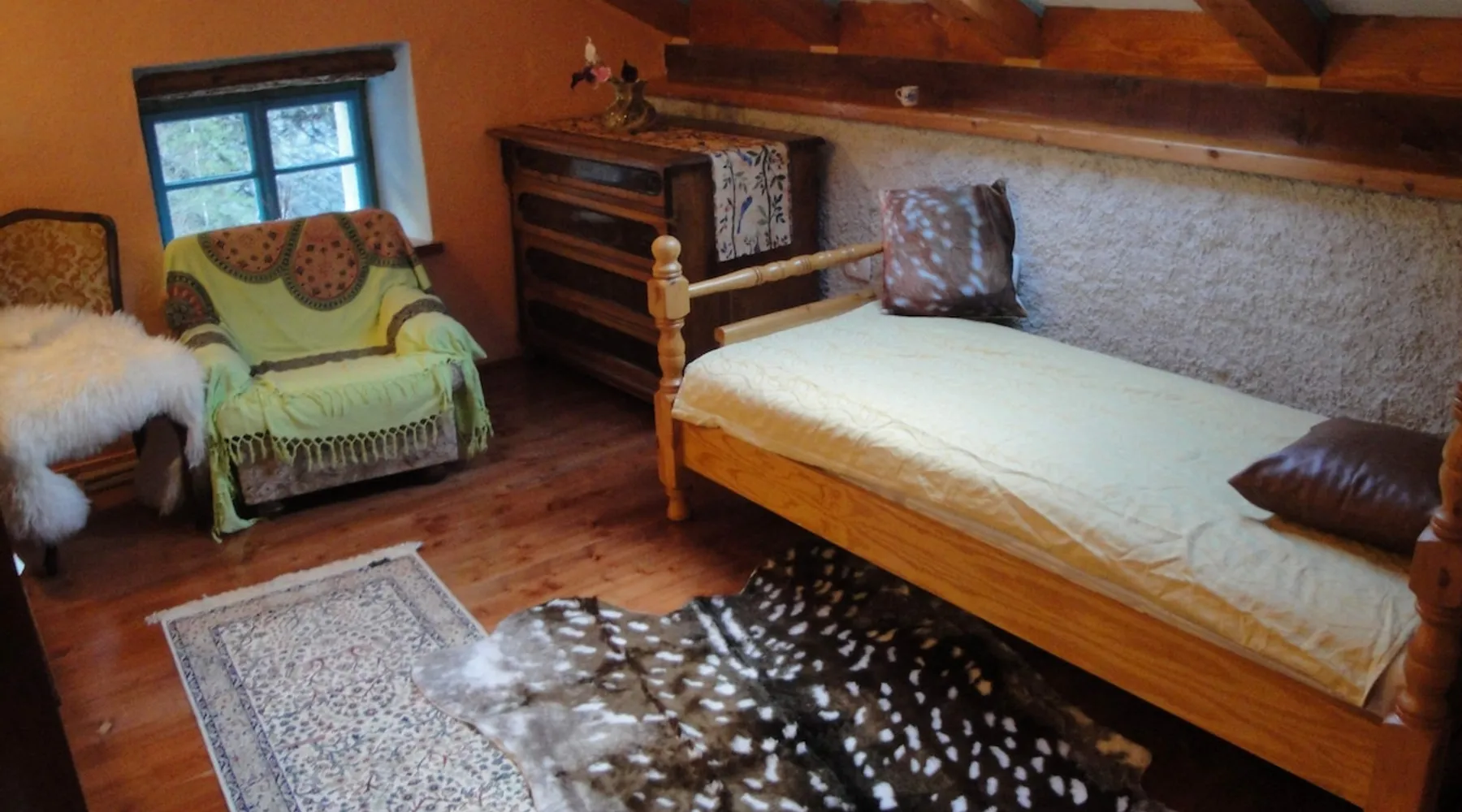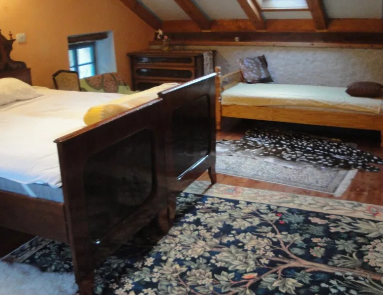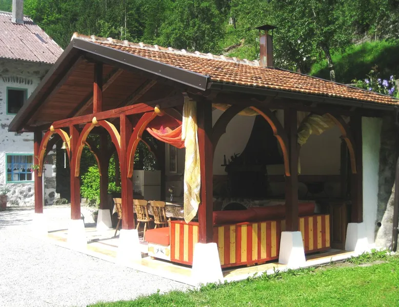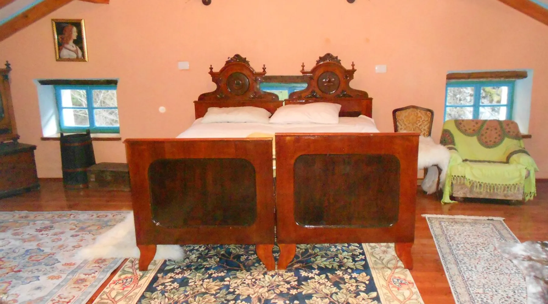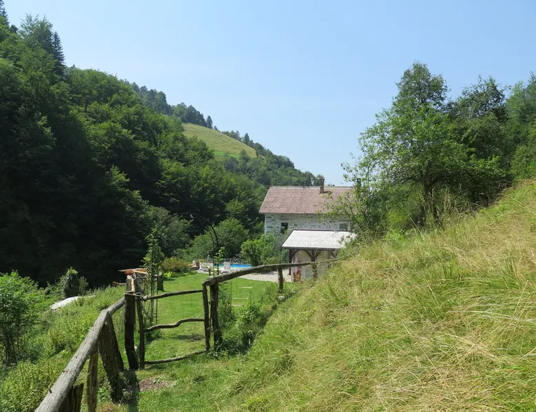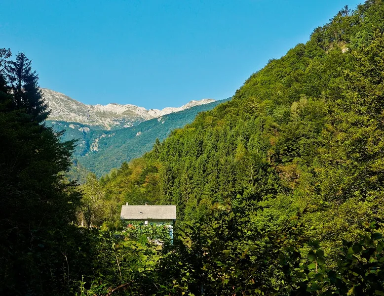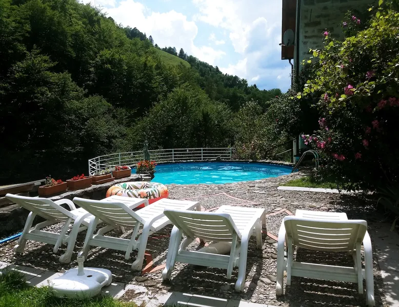 "Pri Mačku" is old home house, from 1919, with swimming pool, music pavillion with chimney, hot tube, wine cellar and etno museum. Property stay near Zadlascica, christal clear river of Julian Alps in Soca Valley, 6 km from Tolmin. House has capacity for 15 persons, "old style" kitchen, 6 sensitive bedrooms, 2 bathroomds, large living room. A private pool and a hot tub, both open from 15th of May till 15th September. Surrounded with pasture grounds for sheep. No owner, no neighbour. Special! The space The house is masonry with carved quartz stone. All areas of the house are furnished in a rustic style, with solid wood furniture. It gives the six bedrooms a very special touch...! The restored beds and closets are finely styled and in 100 years old! In the two bedrooms, the walls of the windows are painted with decorations of vitic flora, flowers and surrounding birds. Impressive relaxation allows for swimming in the pool. In case of bad weather there is the possibility of soaking in the spa. Anyway, it's memorable to listen to the Vivaldi concert while floating a fire on a stylized sofa in a music pavilion and sipping a local Sauvignon from a home winery... The pavilion has room for 10 people. For 5 additional people, there is a table with benches or a dining room in the living room near it. Caution is required with the pool and hot tub, especially children, so the use of both is at your own risk, which is confirmed with the acceptance of the reservation. Guest access Upon rental, guests receive a 6-bedroom house, a music pavilion, a winery, and a pool and a hot tub that operate from May 15 to September 15. The house is surrounded by several pastures and a three sheep barn whose guests can feed one time a day with a bread loaf available. Also, firewood and a bag of charcoal are also available to make a barbecue in the fireplace in the gazebo. There are two paths leading from the house to the Zadlakica River. At low water level, it is possible to climb up the navy for about 1.5 km and make its way through two smaller canyons, hollowed into the rocks, which are a natural landmark. Other things to note Please know that heating costs can be charged separately in the winter months.