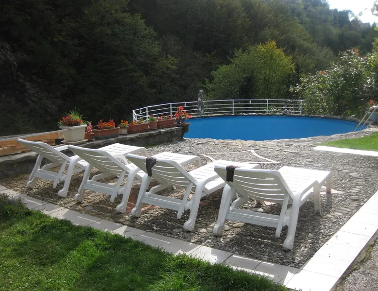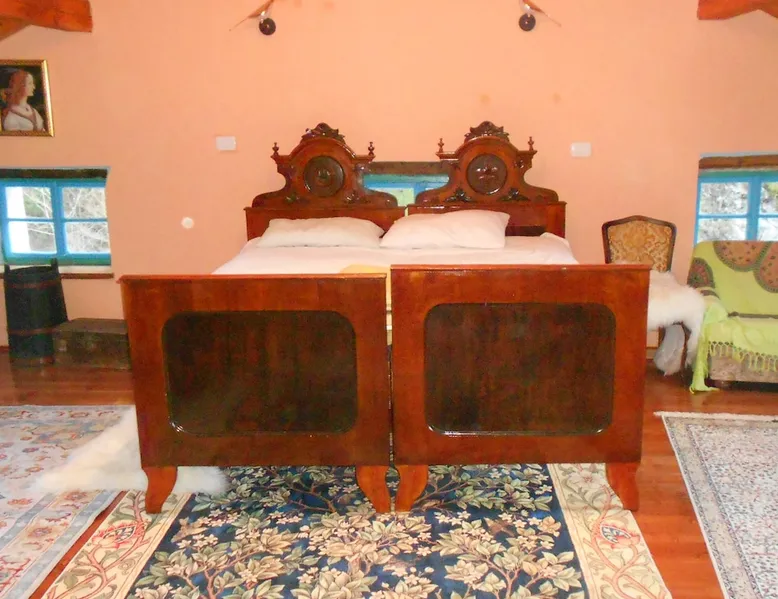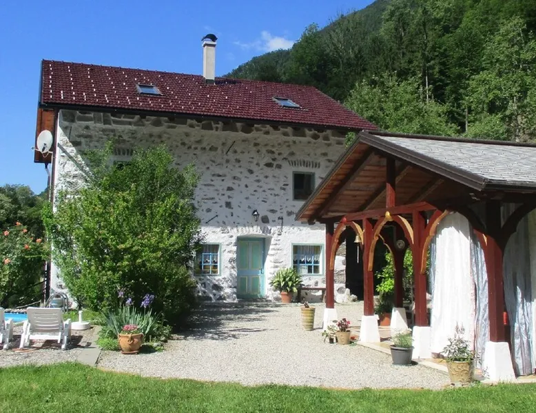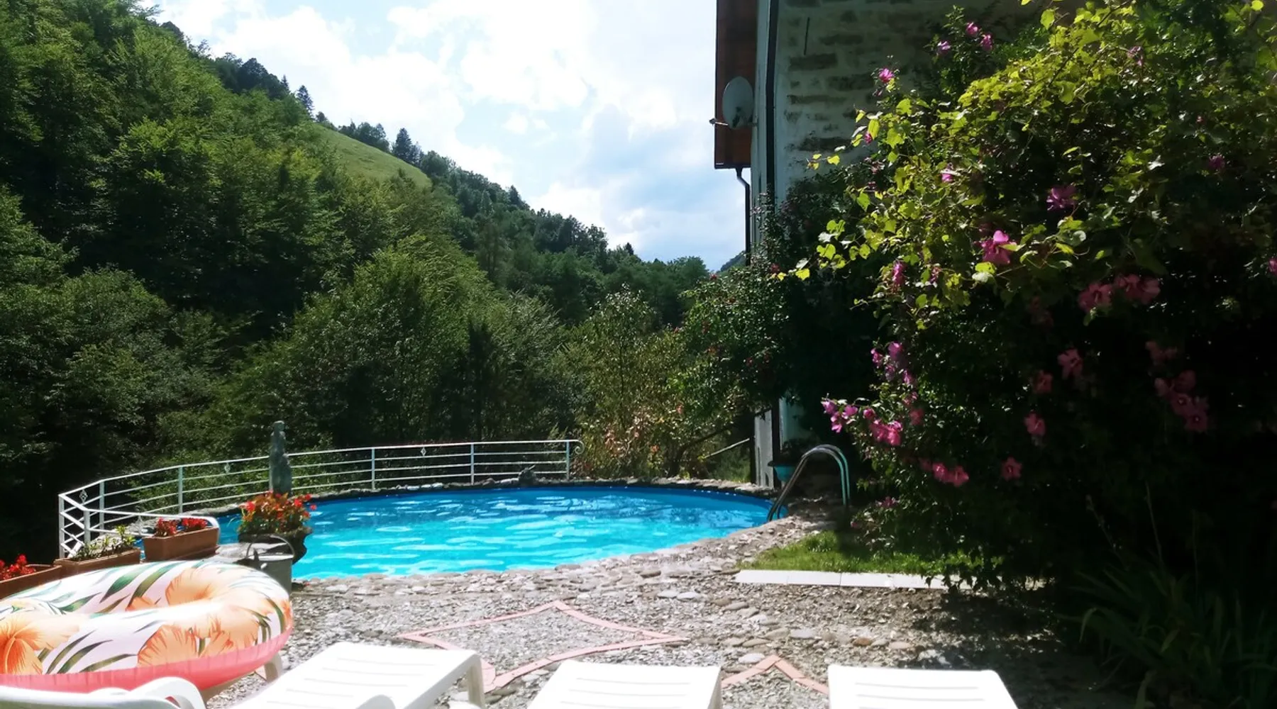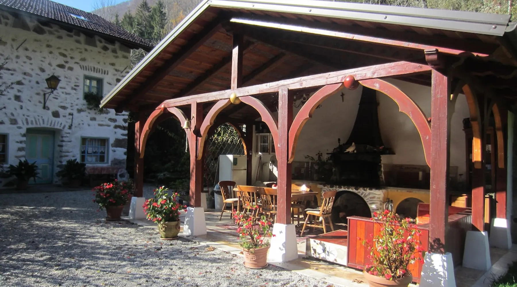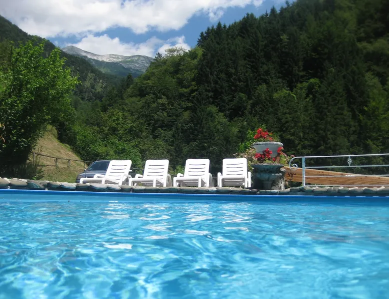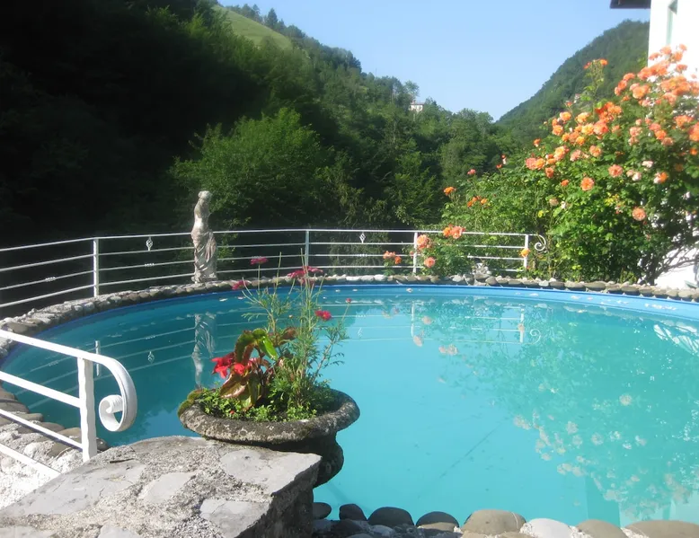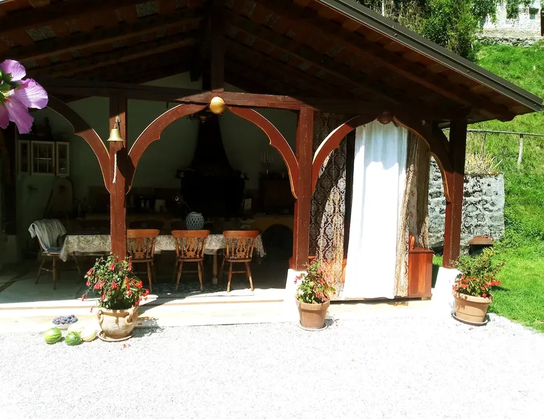 "Pri Mačku" is old home house, from 1919, with swimming pool, music pavillion with chimney, hot tube, wine cellar and etno museum. Property stay near Zadlascica, christal clear river of Julian Alps in Soca Valley, 6 km from Tolmin. House has capacity for 15 persons, "old style" kitchen, 6 sensitive bedrooms, 2 bathroomds, large living room. A private pool and a hot tub, both open from 15th of May till 15th September. Surrounded with pasture grounds for sheep. No owner, no neighbour. Special! The space The house is masonry with carved quartz stone. All areas of the house are furnished in a rustic style, with solid wood furniture. It gives the six bedrooms a very special touch...! The restored beds and closets are finely styled and in 100 years old! In the two bedrooms, the walls of the windows are painted with decorations of vitic flora, flowers and surrounding birds. Impressive relaxation allows for swimming in the pool. In case of bad weather there is the possibility of soaking in the spa. Anyway, it's memorable to listen to the Vivaldi concert while floating a fire on a stylized sofa in a music pavilion and sipping a local Sauvignon from a home winery... The pavilion has room for 10 people. For 5 additional people, there is a table with benches or a dining room in the living room near it. Caution is required with the pool and hot tub, especially children, so the use of both is at your own risk, which is confirmed with the acceptance of the reservation. Guest access Upon rental, guests receive a 6-bedroom house, a music pavilion, a winery, and a pool and a hot tub that operate from May 15 to September 15. The house is surrounded by several pastures and a three sheep barn whose guests can feed one time a day with a bread loaf available. Also, firewood and a bag of charcoal are also available to make a barbecue in the fireplace in the gazebo. There are two paths leading from the house to the Zadlakica River. At low water level, it is possible to climb up the navy for about 1.5 km and make its way through two smaller canyons, hollowed into the rocks, which are a natural landmark. Other things to note Please know that heating costs can be charged separately in the winter months.