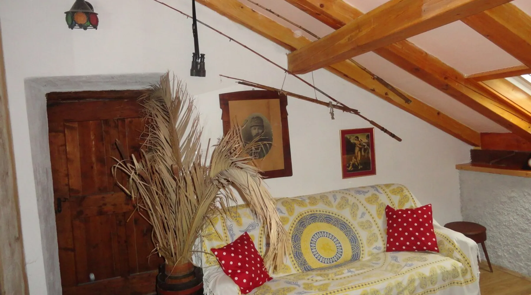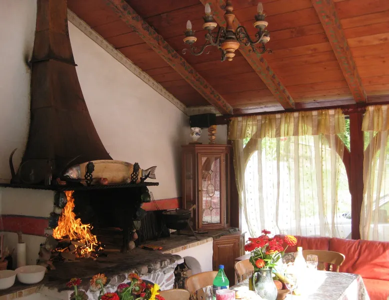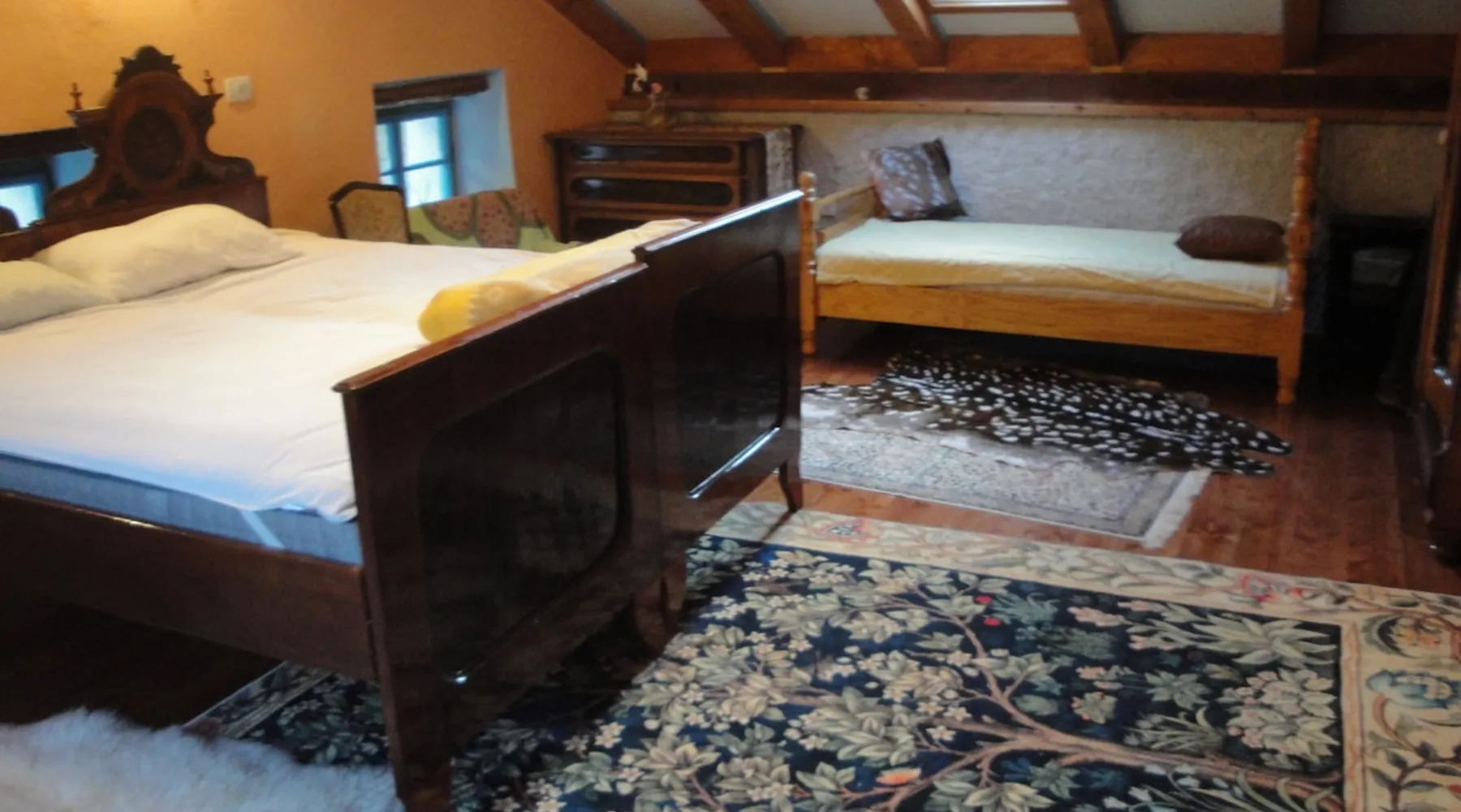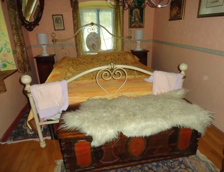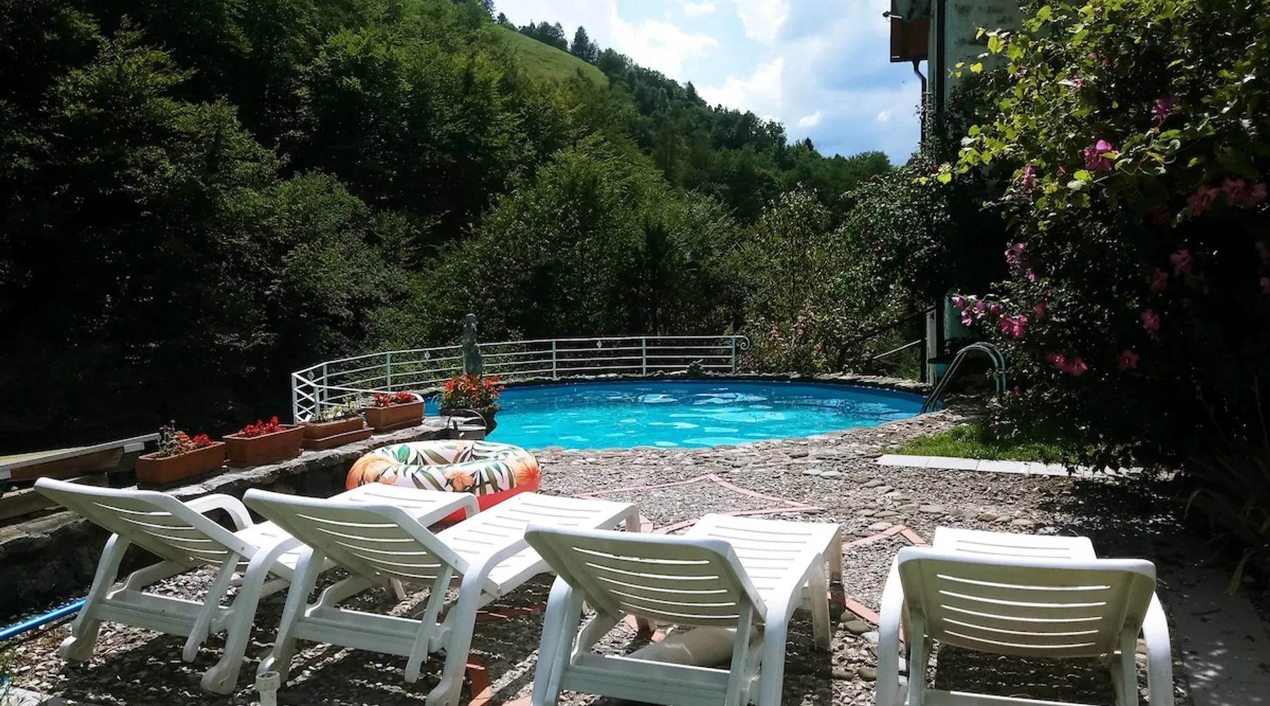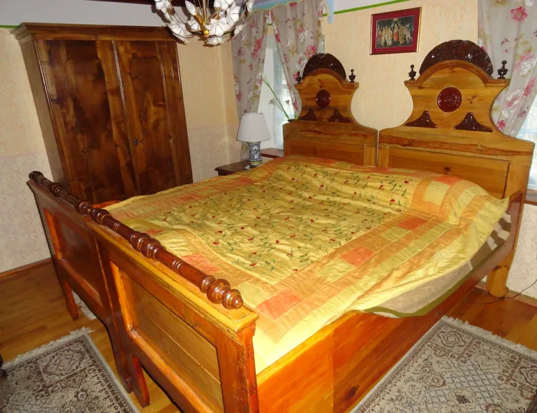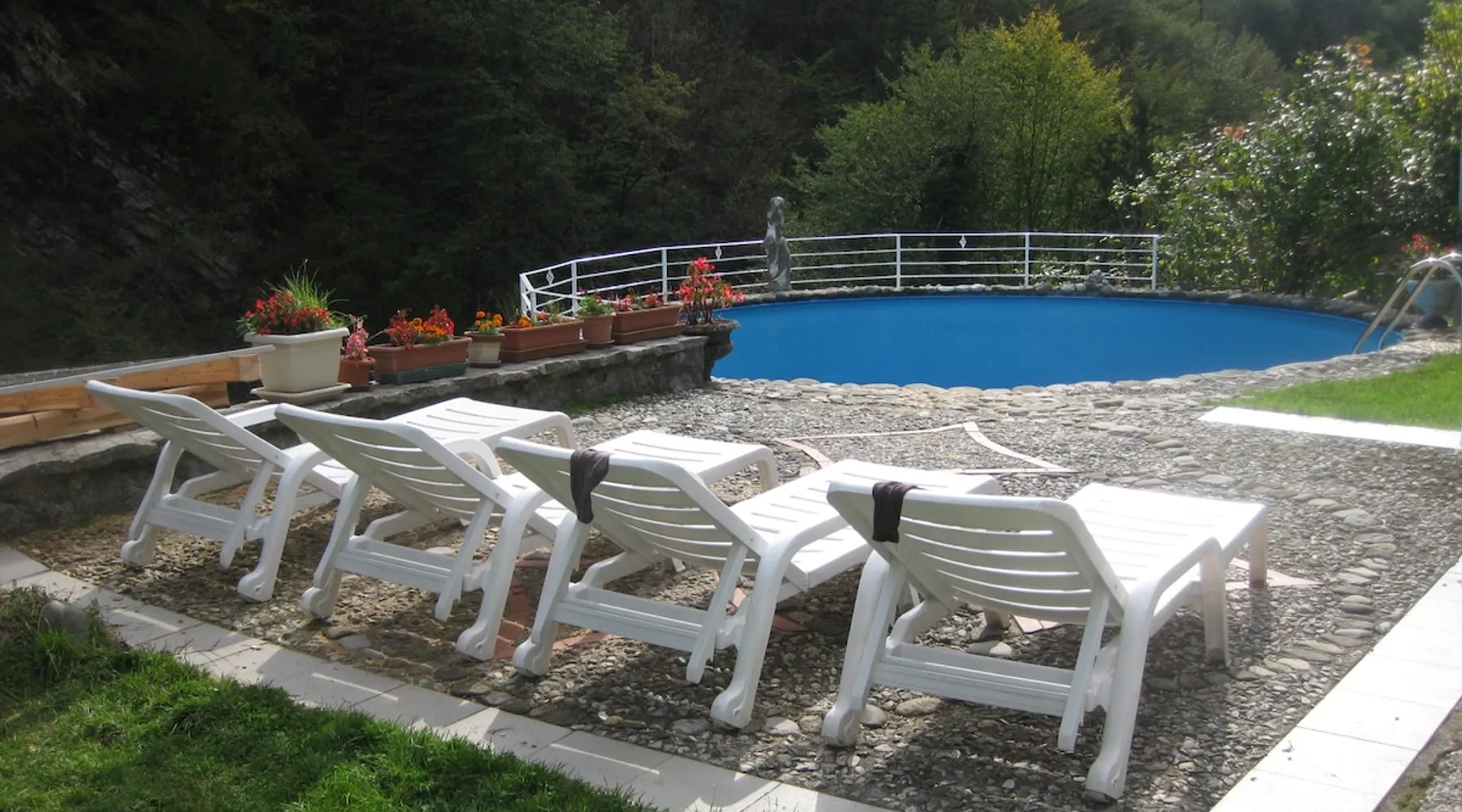 "Pri Mačku" is old home house, from 1919, with swimming pool, music pavillion with chimney, hot tube, wine cellar and etno museum. Property stay near Zadlascica, christal clear river of Julian Alps in Soca Valley, 6 km from Tolmin. House has capacity for 15 persons, "old style" kitchen, 6 sensitive bedrooms, 2 bathroomds, large living room. A private pool and a hot tub, both open from 15th of May till 15th September. Surrounded with pasture grounds for sheep. No owner, no neighbour. Special! The space The house is masonry with carved quartz stone. All areas of the house are furnished in a rustic style, with solid wood furniture. It gives the six bedrooms a very special touch...! The restored beds and closets are finely styled and in 100 years old! In the two bedrooms, the walls of the windows are painted with decorations of vitic flora, flowers and surrounding birds. Impressive relaxation allows for swimming in the pool. In case of bad weather there is the possibility of soaking in the spa. Anyway, it's memorable to listen to the Vivaldi concert while floating a fire on a stylized sofa in a music pavilion and sipping a local Sauvignon from a home winery... The pavilion has room for 10 people. For 5 additional people, there is a table with benches or a dining room in the living room near it. Caution is required with the pool and hot tub, especially children, so the use of both is at your own risk, which is confirmed with the acceptance of the reservation. Guest access Upon rental, guests receive a 6-bedroom house, a music pavilion, a winery, and a pool and a hot tub that operate from May 15 to September 15. The house is surrounded by several pastures and a three sheep barn whose guests can feed one time a day with a bread loaf available. Also, firewood and a bag of charcoal are also available to make a barbecue in the fireplace in the gazebo. There are two paths leading from the house to the Zadlakica River. At low water level, it is possible to climb up the navy for about 1.5 km and make its way through two smaller canyons, hollowed into the rocks, which are a natural landmark. Other things to note Please know that heating costs can be charged separately in the winter months.