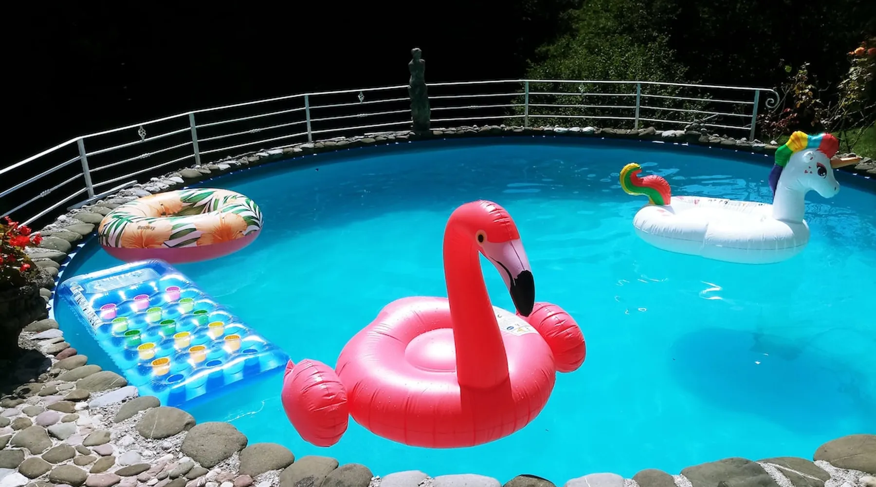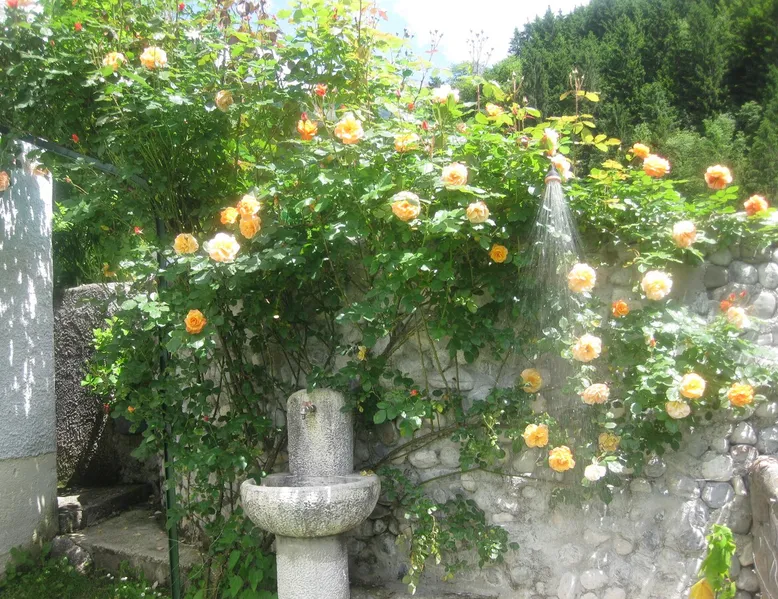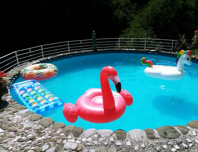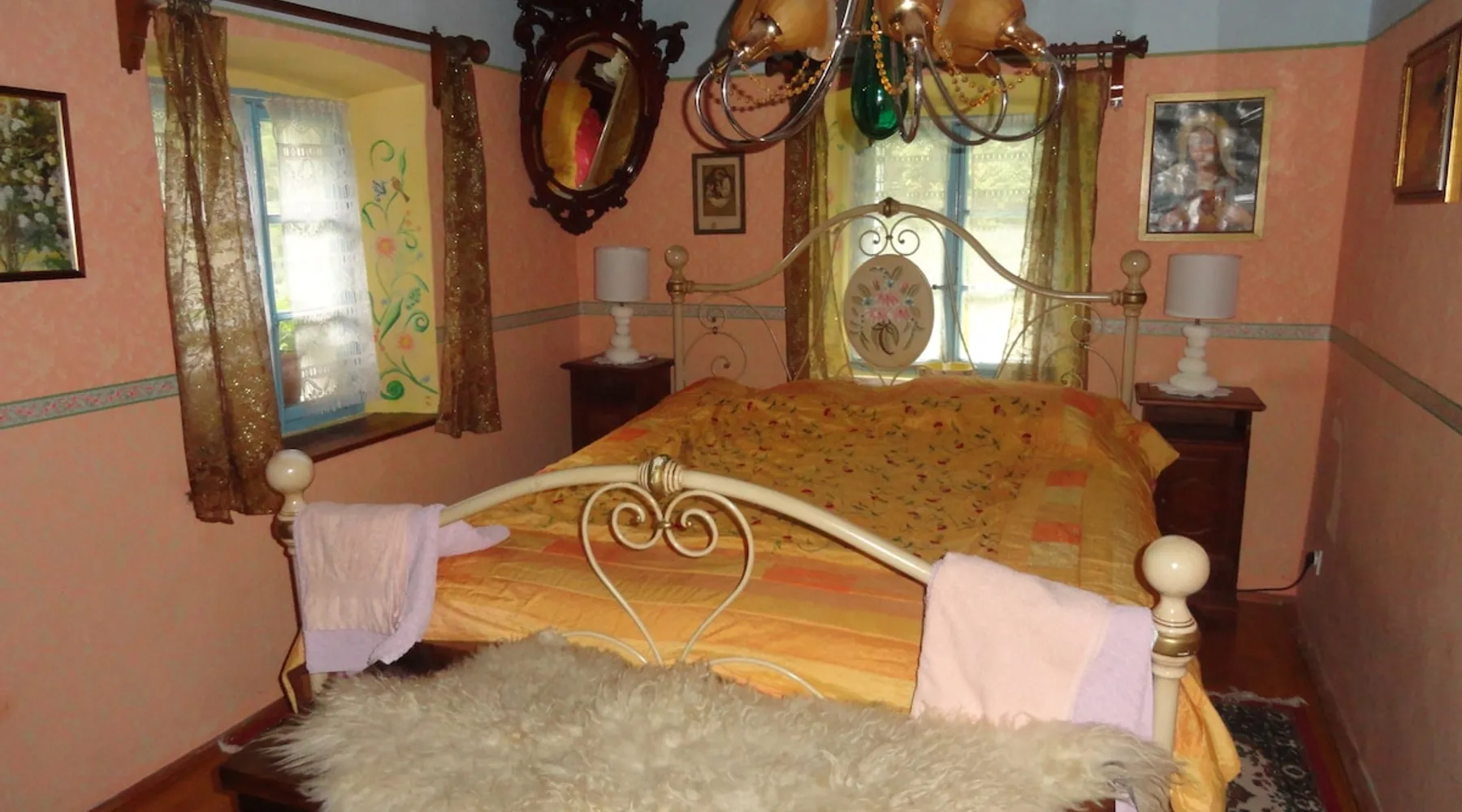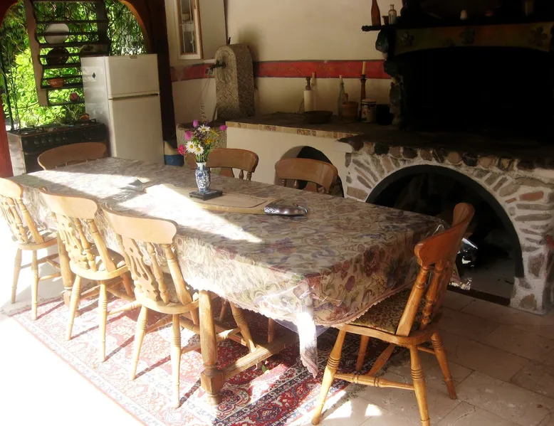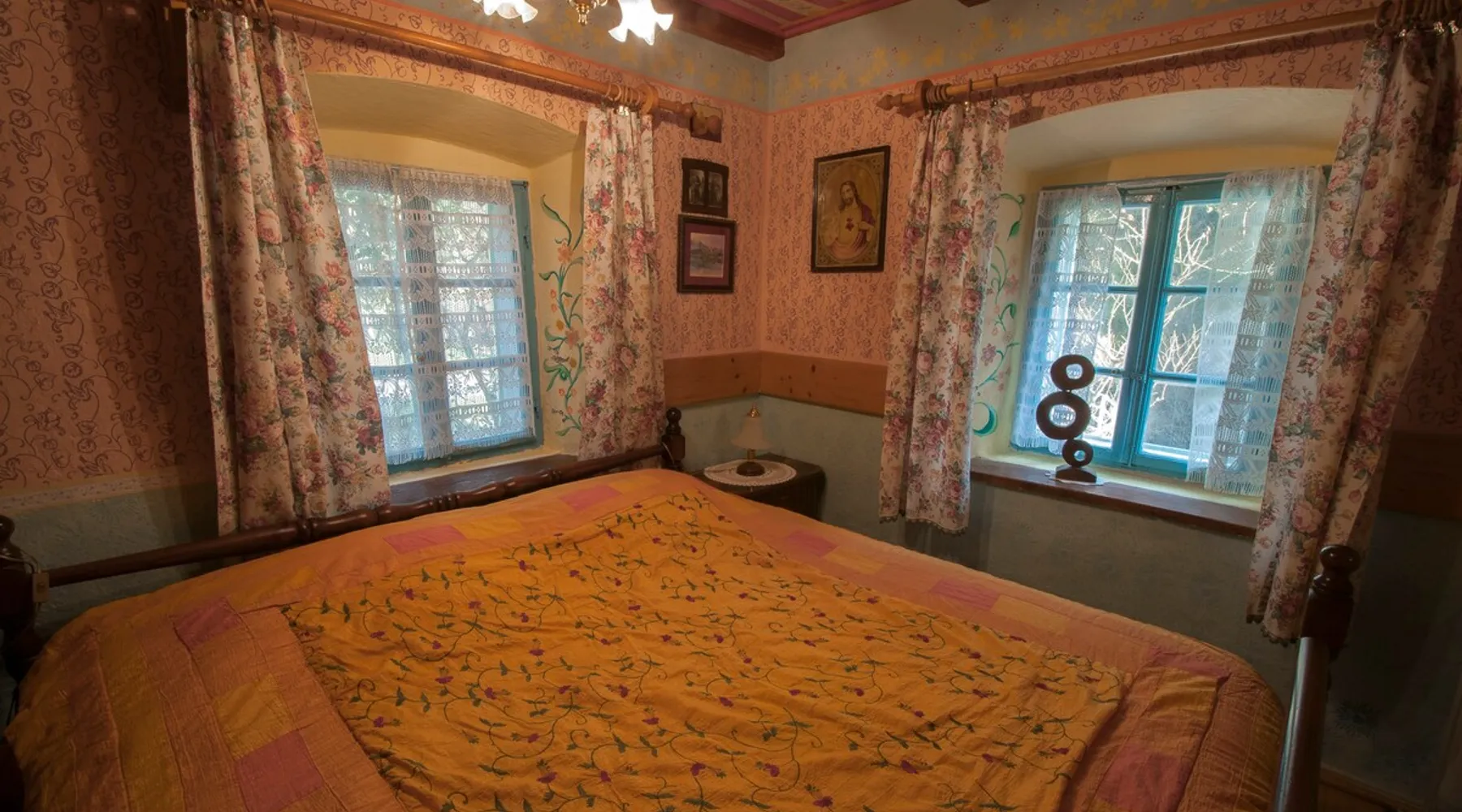"Pri Mačku" is old home house, from 1919, with swimming pool, music pavillion with chimney, hot tube, wine cellar and etno museum. Property stay near Zadlascica, christal clear river of Julian Alps in Soca Valley, 6 km from Tolmin. House has capacity for 15 persons, "old style" kitchen, 6 sensitive bedrooms, 2 bathroomds, large living room. A private pool and a hot tub, both open from 15th of May till 15th September. Surrounded with pasture grounds for sheep. No owner, no neighbour. Special! The space The house is masonry with carved quartz stone. All areas of the house are furnished in a rustic style, with solid wood furniture. It gives the six bedrooms a very special touch...! The restored beds and closets are finely styled and in 100 years old! In the two bedrooms, the walls of the windows are painted with decorations of vitic flora, flowers and surrounding birds. Impressive relaxation allows for swimming in the pool. In case of bad weather there is the possibility of soaking in the spa. Anyway, it's memorable to listen to the Vivaldi concert while floating a fire on a stylized sofa in a music pavilion and sipping a local Sauvignon from a home winery... The pavilion has room for 10 people. For 5 additional people, there is a table with benches or a dining room in the living room near it. Caution is required with the pool and hot tub, especially children, so the use of both is at your own risk, which is confirmed with the acceptance of the reservation. Guest access Upon rental, guests receive a 6-bedroom house, a music pavilion, a winery, and a pool and a hot tub that operate from May 15 to September 15. The house is surrounded by several pastures and a three sheep barn whose guests can feed one time a day with a bread loaf available. Also, firewood and a bag of charcoal are also available to make a barbecue in the fireplace in the gazebo. There are two paths leading from the house to the Zadlakica River. At low water level, it is possible to climb up the navy for about 1.5 km and make its way through two smaller canyons, hollowed into the rocks, which are a natural landmark. Other things to note Please know that heating costs can be charged separately in the winter months.