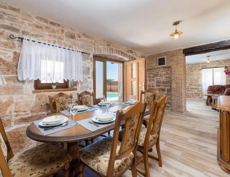 Elegant Accommodations: Villa Zinnia by Briskva in Fabci offers a spacious villa with five bedrooms and three bathrooms. Guests enjoy a private pool, terrace, and garden, complemented by free WiFi. Outdoor Amenities: The property features a seasonal outdoor swimming pool, outdoor fireplace, and barbecue facilities. Free on-site private parking is available for convenience. Comfortable Living: The villa includes air-conditioning, a fully equipped kitchen, washing machine, and a living room with a sofa. Additional amenities include a dining area, TV, and free on-site private parking. Local Attractions: Nearby attractions include Aquapark Istralandia (16 mi), Cathedral St. Eufemia Rovinj (22 mi), Poreč Main Square (11 mi), Pazin Castle (13 mi), and Dvigrad Castle (16 mi). Highly rated for its swimming pool. The private pool is the special feature of this villa. Featuring a private entrance, this air-conditioned villa consists of 1 living room, 5 separate bedrooms and 3 bathrooms with a shower and a hairdryer. Guests will find a stovetop, a refrigerator, a dishwasher and kitchenware in the fully equipped kitchen. The villa also provides guests with a barbecue. Boasting a terrace with garden views, this villa also provides a washing machine and a flat-screen TV with satellite channels. The unit offers 6 beds.