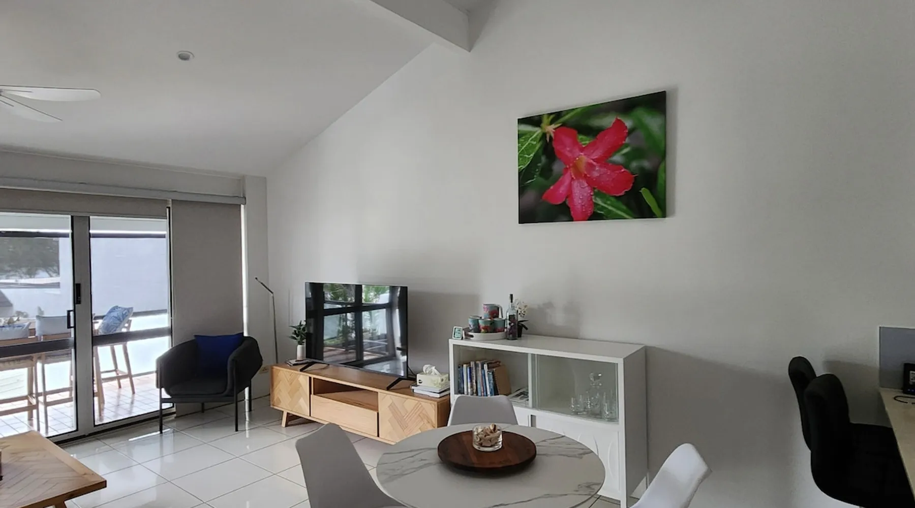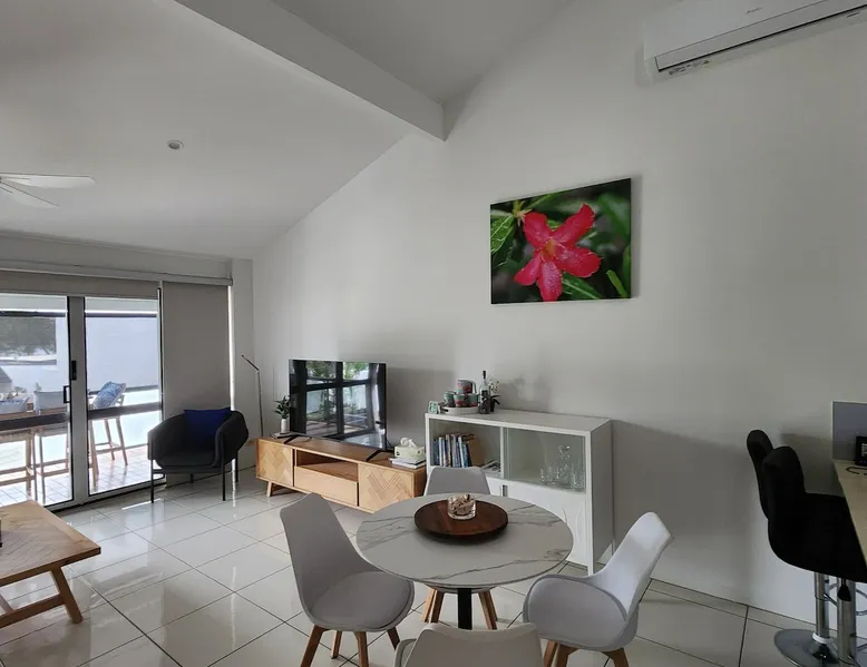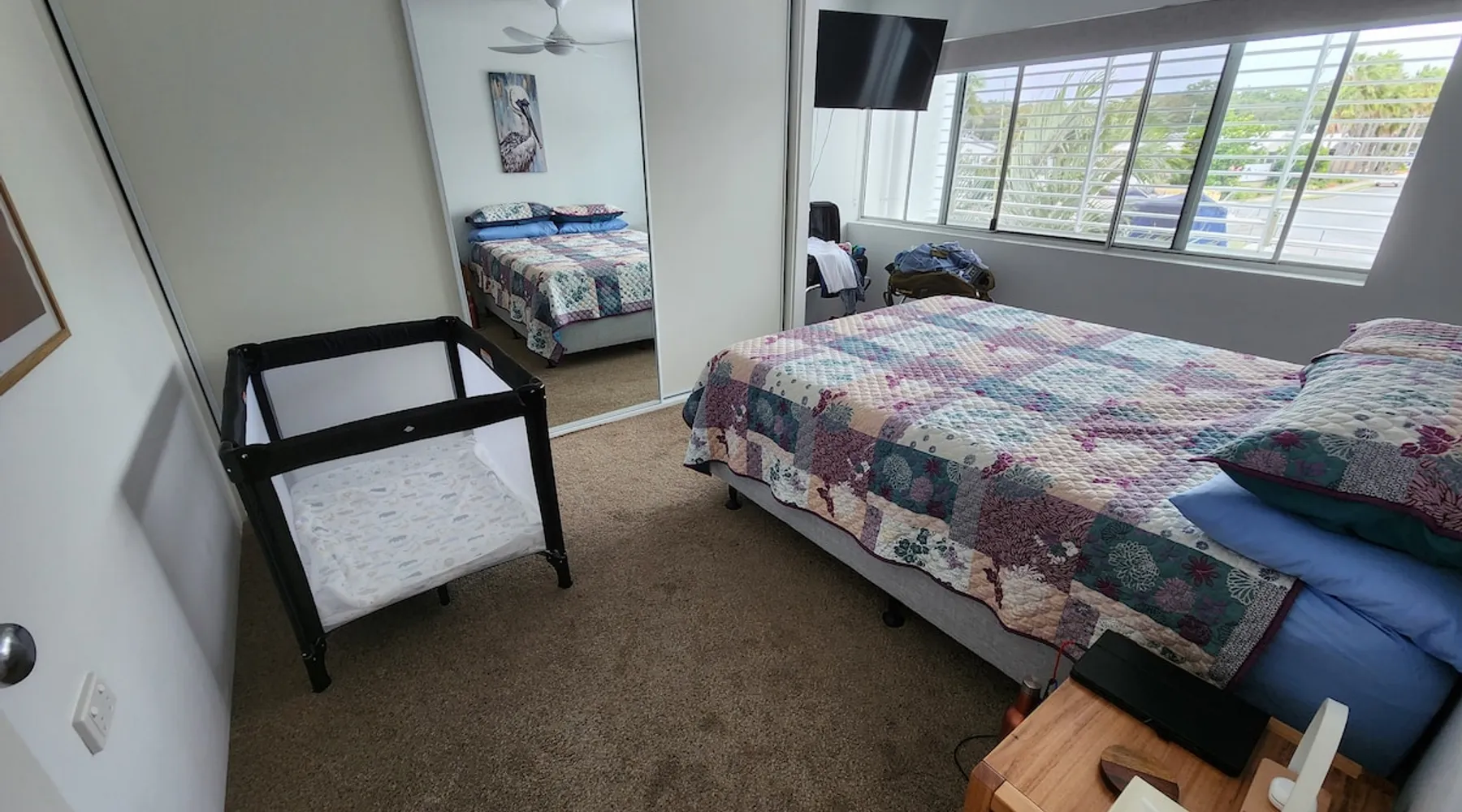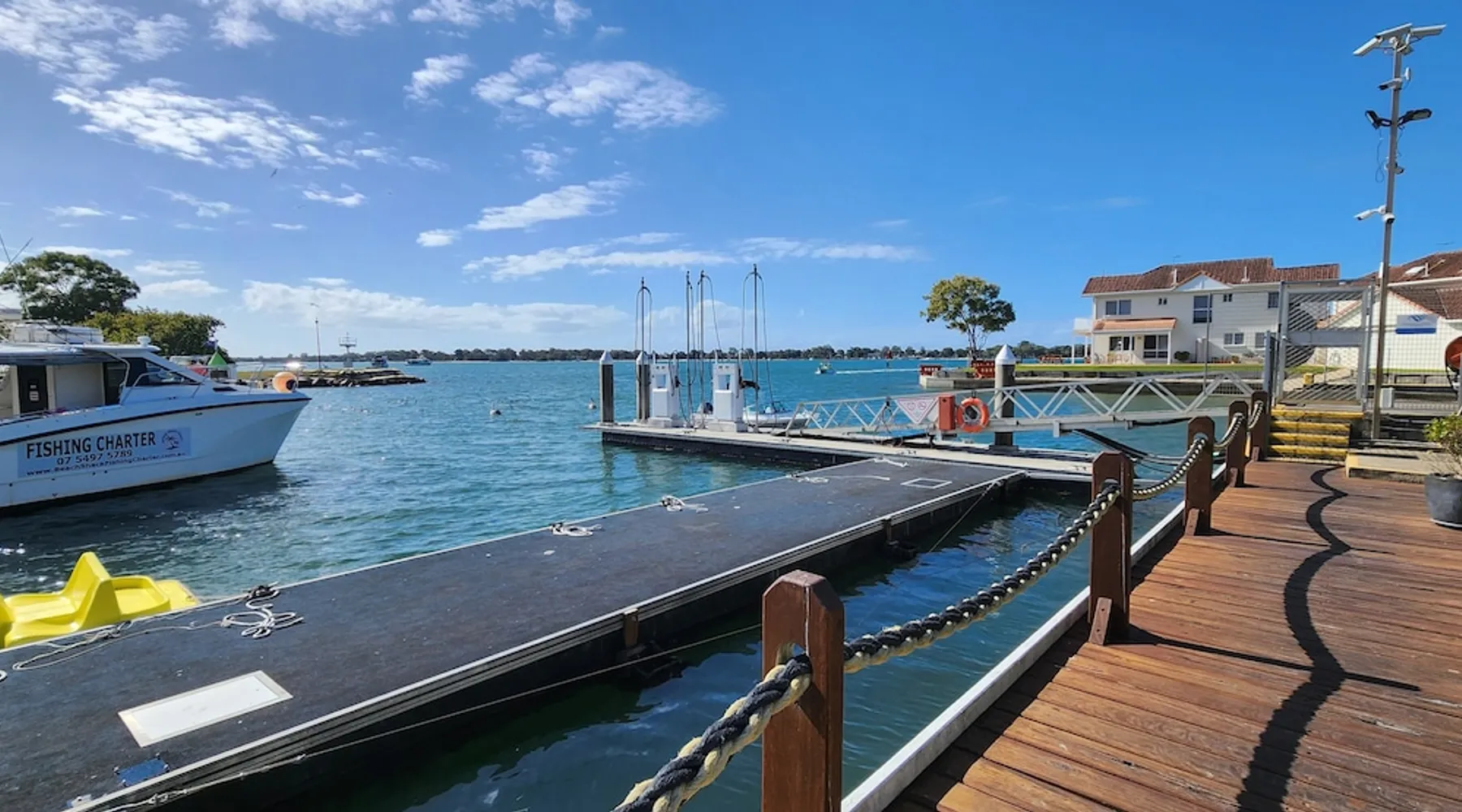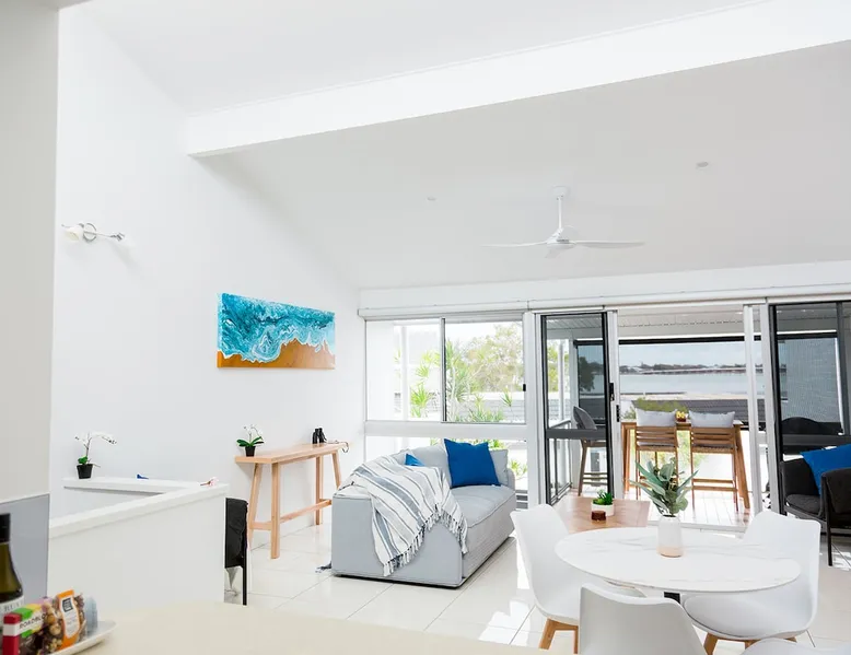 No cleaning fee ! Discover the ideal retreat just moments away from the renowned Sandstone Point Hotel, a sought-after venue for various events and weddings. Nestled in a picturesque coastal neighbourhood, this two-level retreat blends indoor and outdoor living, boasting multiple alfresco dining zones, a BBQ, and captivating views over Pumicestone Passage. Whether you're attending an event or simply seeking a tranquil getaway, this stay offers the perfect balance of convenience and serenity. The space The space Direct waterfront living awaits you at this modern townhouse. Situated in the prestigious "Spinnaker Sound" complex on the shores of the Pumicestone Passage, You’ll feel a sense of calm, taking in the sounds of the water from your balcony. This home is perfect for families or small groups, with an open plan design upstairs and alfresco spaces to soak up the coastal air. Upstairs, you’ll find the airy living and dining area. Glass doors open to the balcony, creating a seamless transition between the indoors and out. Cook up a feast on the BBQ or make use of the fully catered kitchen. A breakfast bar encourages slow mornings at home, while a dining table allows you to share a meal. In the evening, get comfortable in the lounge. In the Kitchen, coffee beans and a grinder along with a French press are provided as well as a variety of teas. Extra beans are in the Freezer. Has a ceiling fan and Split Air Con unit for extra comfort. The primary bedroom is located upstairs and comes set with a queen-sized bed and Air Con and ceiling fan to keep things comfortable. The second bedroom is found downstairs and offers two single beds, ideal for those travelling with kids. Opens out to the rear courtyard and has security doors fitted. This room also has a ceiling fan and Air Con. We also provide 2 x porta cots and linen for the little ones plus a High chair, change mat and some toys. You’ll refresh with two neat bathrooms and enjoy an outdoor shower to rinse off after a dip. Both bedrooms have a wall mounted 40inch Smart TV with streaming services Netflix, Stan Sport and YouTube etc. The master bedroom TV has access to Free to air channels as well. Laundry facilities including a washing machine and dryer add to your everyday convenience, as well as garage parking. Fishing enthusiasts will appreciate the great fishing opportunities on the foreshore, and we provide three rods with lures for your use as the foreshore is only a couple of minutes walk away. for your enjoyment a Kayak is located on the Foreshore with Paddle and Seat/Lifejacket located in the Garage . Additionally, make the most of our provided Beach Wagon stocked with towels, an umbrella, deck chairs, and a cooler for your beachside adventures. For those that wish to bring a small boat (owner uses a 4.3M Runabout when staying) there is an electric winch to pull it into the garage so you can park your vehicle and the Boat in the apartment driveway. Detailed walkthrough video is on youtube - search for @spinnakerwaters. Guest access During your stay, you and your group will have the entire apartment to yourselves, as well as access to the shared facilities including a pool and a private courtyard. Please make yourselves at home! One of the few properties in this complex to have ample parking + a lockup garage. Other things to note No cleaning fee! Please read and respect the house rules. This is very much appreciated, thank you! Before your arrival, we will also share a house guide that contains instructions on how to access the property, use certain appliances, and anything else you may need to know. All Rooms have split AC installed along with Smart TV's and access to Stan Sport and Netflix.