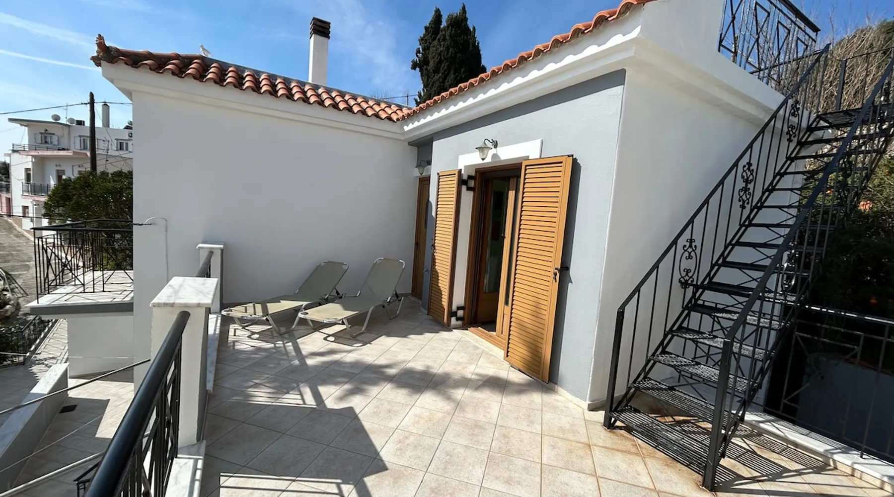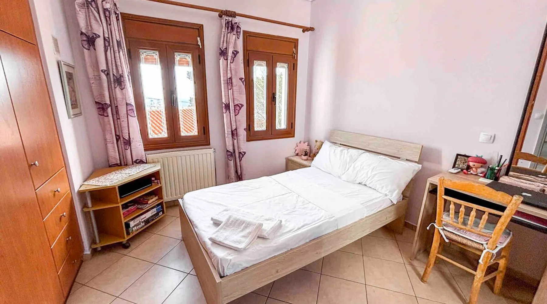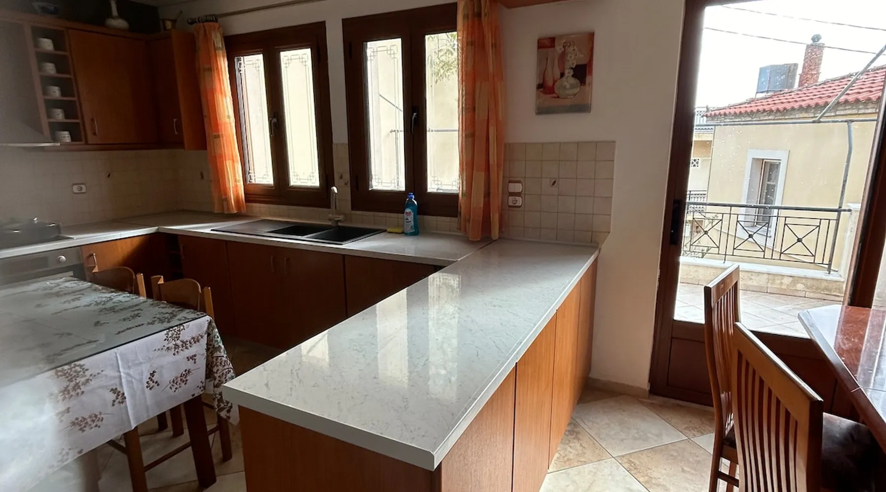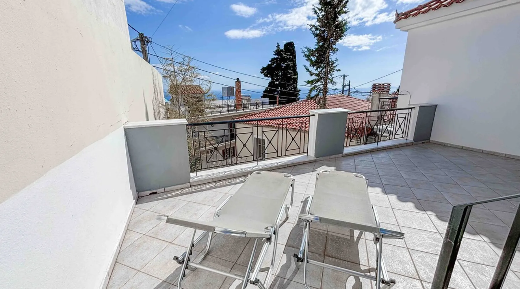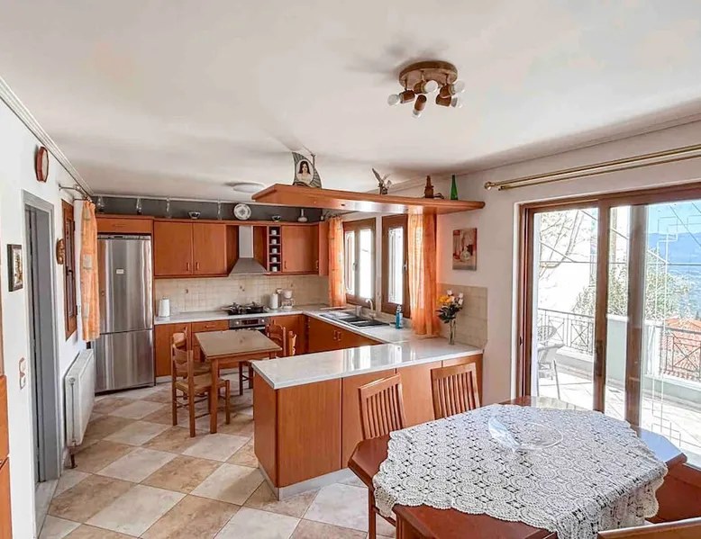 Located in Marathokampos, Samos, Ouranias house is a 100m2 holiday home, offering spectacular views of the sea and the mountain. The house has three bedrooms (one with a double bed, two with single beds and a sofa bed in the living room), ensuring comfortable hosting up to 6 people. The spacious living room with the fireplace creates a warm and inviting atmosphere. There are two bathrooms, one of which has a hot tub, ideal for moments of absolute relaxation. The space The outdoor areas include a balcony and a courtyard, where you can enjoy the magnificent view and the tranquility of the natural landscape. The location is ideal for those who wish to explore the beaches and traditional villages of Samos, offering easy access to local restaurants and natural attractions. Experience a unique holiday experience in a comfortable and authentic environment, combining tradition with modern comfort! Other things to note Marathokampos, a picturesque settlement in southwestern Samos, combines authentic island atmosphere, rich history, natural beauty and unique experiences. Built amphitheatrically on the slopes of Mount Kerki, it offers magnificent views of the Aegean Sea and is an ideal destination for those seeking both relaxation and adventure. Sights & Historical Sites Evangelistria Monastery: A historic 18th century monastery with panoramic sea views. Pythagoras Cave: According to tradition, the philosopher Pythagoras found refuge here. A unique natural attraction, accessible by hiking. Old Settlement of Marathokampos: With narrow cobblestone streets, traditional houses and small squares, Marathokampos offers an authentic taste of Samos' past. Gastronomy & Local Flavors In the wider area, you will find traditional taverns and restaurants serving fresh fish, seafood and local meats. Some of the best choices include: "Kapetanandros": Known for its local recipes and wonderful views. "Chrysi Ammos": A tavern by the sea, with exquisite meze and fresh fish. "Stathmos": Traditional tavern with excellent kid and other local delicacies. Beaches for Swimming & Relaxation The area has beautiful beaches with crystal clear waters: Votsalakia: The most popular beach in the area, with organized facilities and beach bars. Psili Ammos: As its name suggests, it has fine golden sand and turquoise waters. Limnionas: A quieter and more unpretentious beach, ideal for those seeking seclusion. Kalogiros: A beach with impressive rocks and clear blue waters, ideal for exploration. Activities & Exploration Marathokampos is an ideal destination for activities such as: Hiking: With routes leading to Mount Kerkis and isolated chapels with magnificent views. Diving & snorkeling: The clear waters of the area offer unique underwater exploration experiences. Sailing & sea excursions: Discover secluded coves and beaches accessible only by sea. Marathokampos in Samos is a destination that combines authenticity, natural beauty and a wealth of activities, offering a complete experience for every visitor! Registration Details 00002417743
