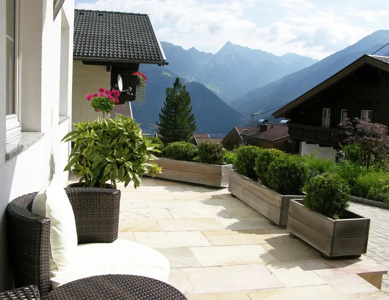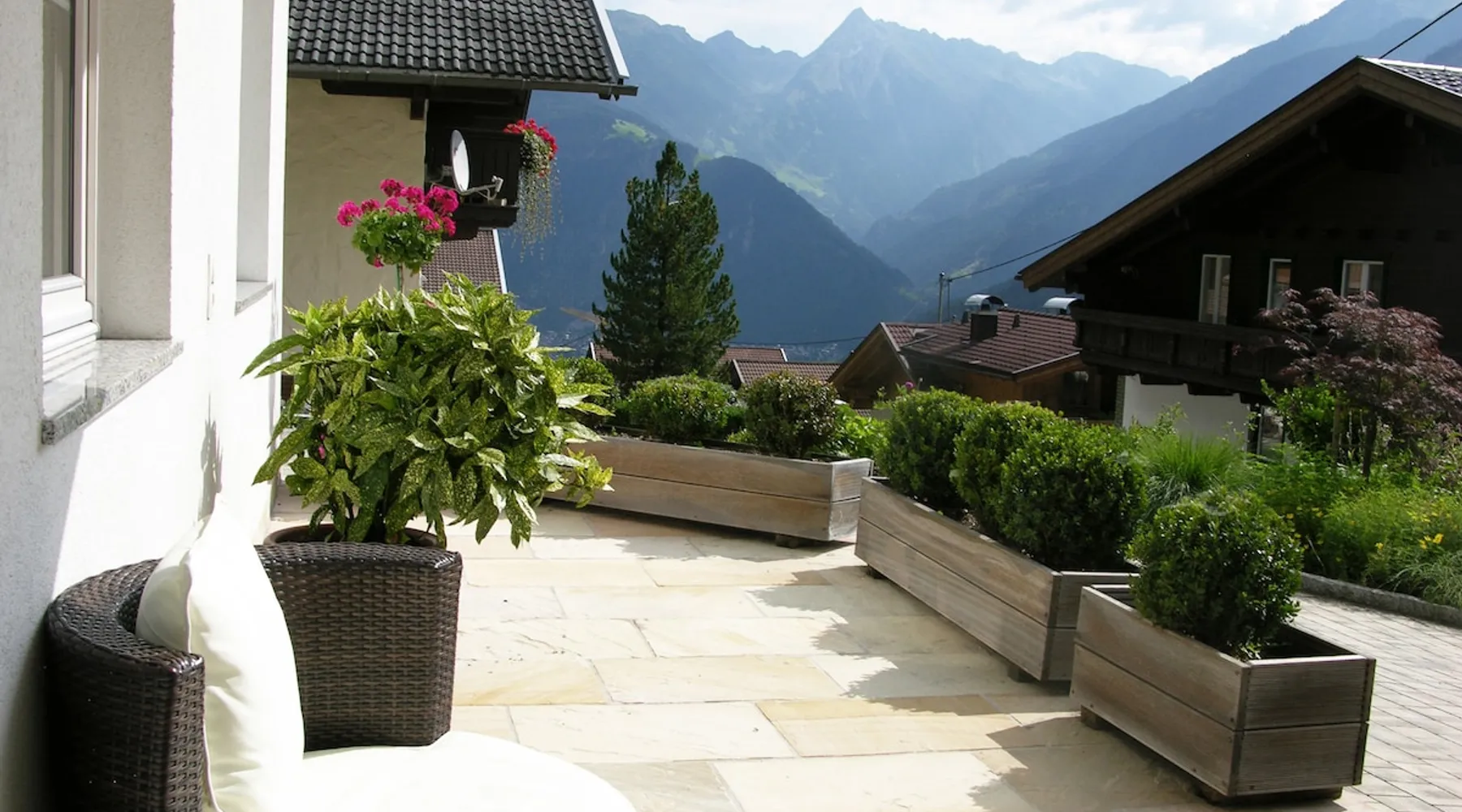 Experience pure comfort and book your dream home in Finkenberg - Tux. Our spacious 55 m² apartment on the upstairs offers everything for your well-being. In a central location, you can experience the Zillertal in all its glory: rest, rest, sports, fun, majestic mountains and breathtaking panoramas. An unforgettable dream vacation is waiting for you! The space Cozy apartment with every comfort * Beautiful kitchen-living room (approx. 20 m²) with dining area and living couch: fully furnished with dishwasher, microwave, oven, coffee maker, Cafissimo coffee capsule machine, Sat-PlasmaTV * 2 separate bedrooms * Spacious bathroom with towel warmer * Comfortable sun terrace overlooking the Zillertal Alps: Tristner, Grünberg, Ahornspitze and Kolm * Ski boot dryer and ski locker * bed linen, towels available * Covered car parking * quiet location of the apartment on the ground floor Other things to note In summer, you'll benefit from free admission to the Finkenberg adventure pool. And in winter: -10% discount on ski and bike rental in the insider sports shop. Please note: The apartment is located on a hill, the access requires good winter tires in winter, especially for heavy snowfalls. Snow chains may be necessary, but the roads are always reliably cleared. Warmly welcome – a pleasant journey!