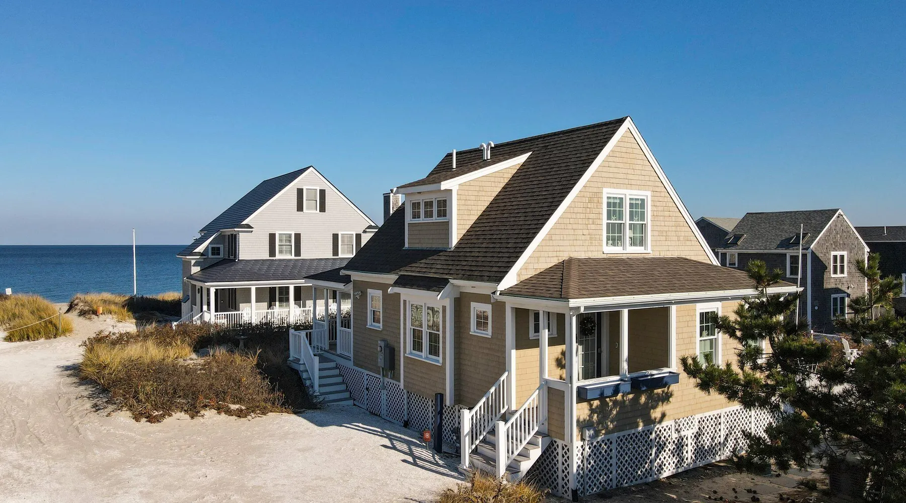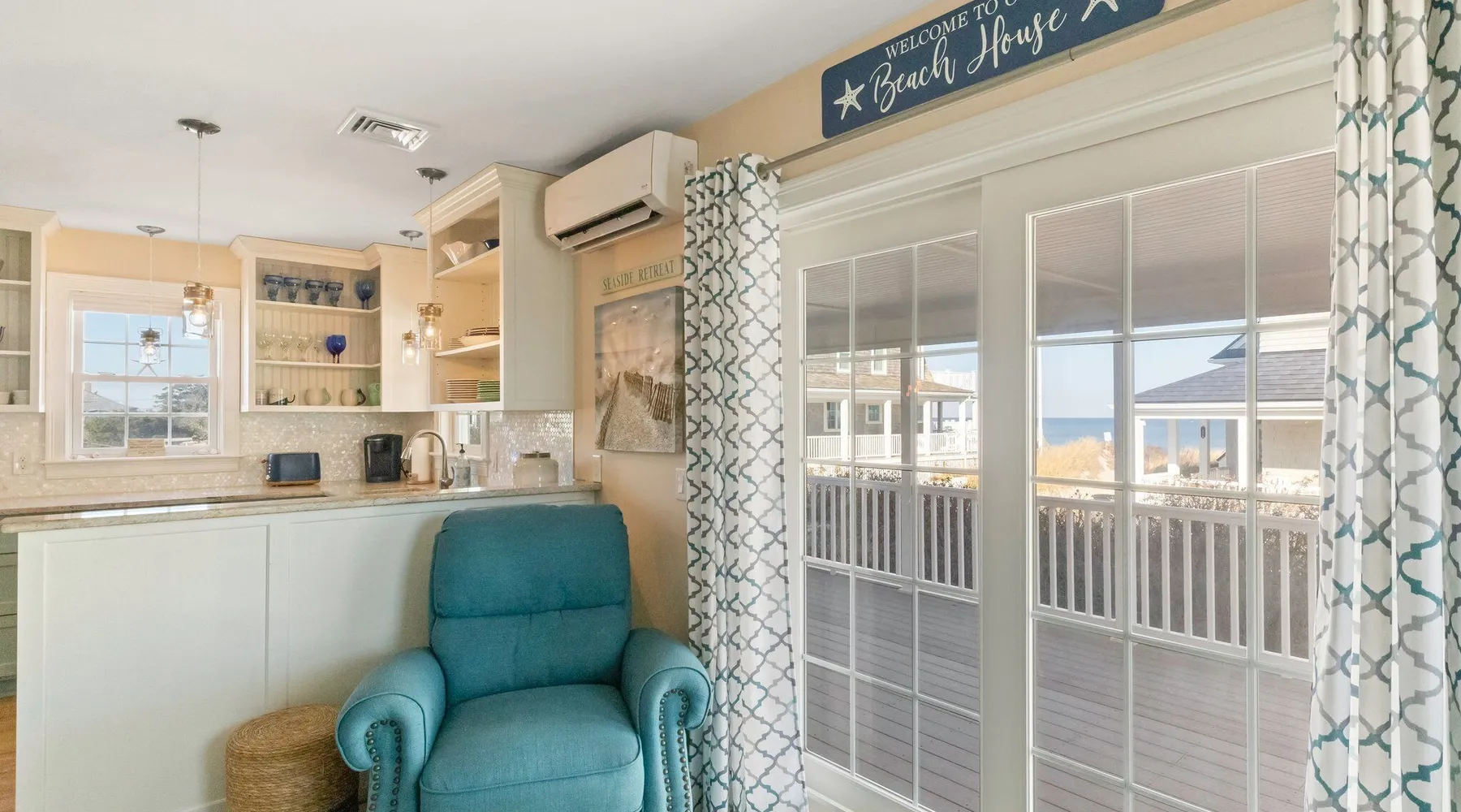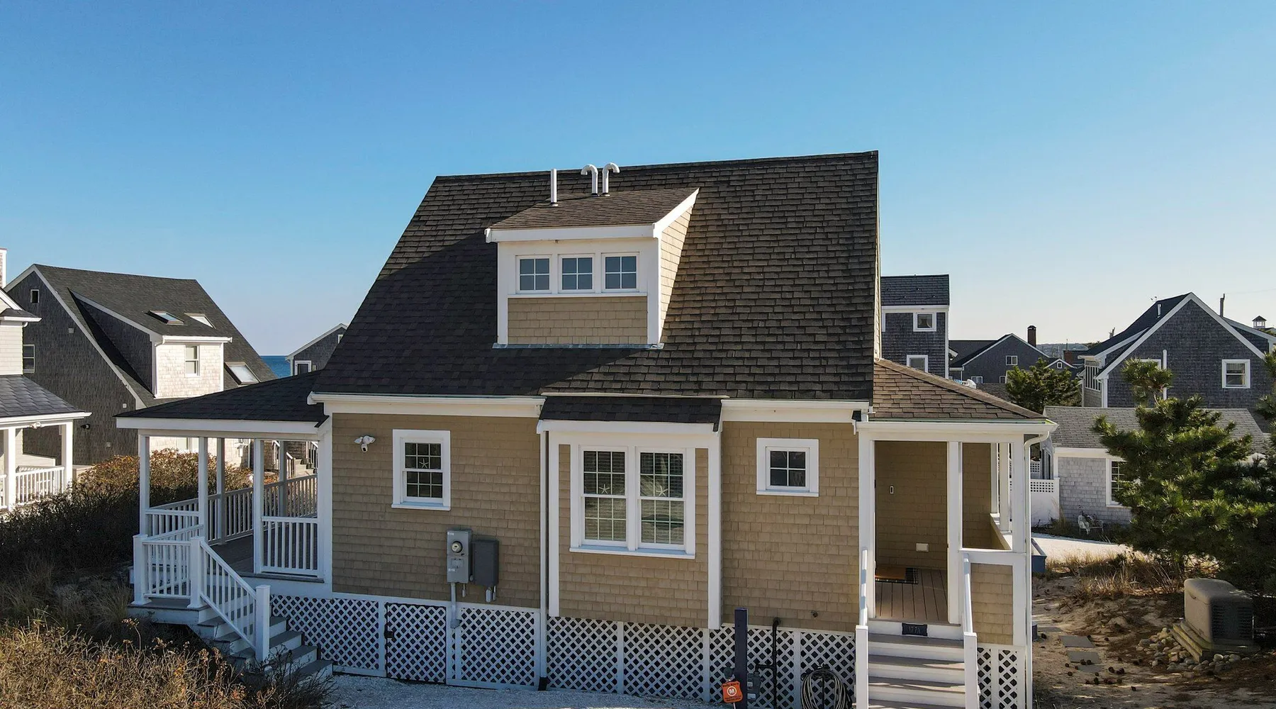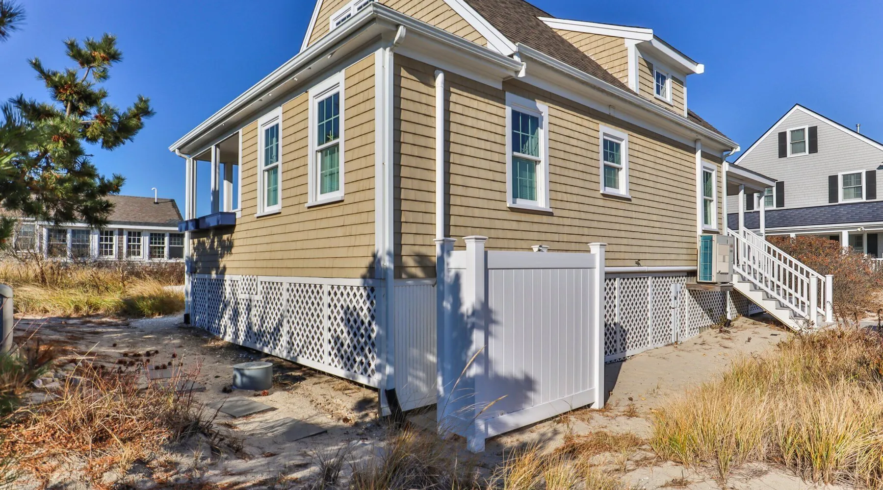 3 Bedrooms, Sleeps 6 2.5 Bathrooms 7 Night minimum rental, Saturday - Saturday About this cottage: Experience the coastal charm of North Shore Boulevard in East Sandwich, MA. This delightful three-bedroom cottage offers captivating views of the ocean and marsh, providing a serene backdrop for your summer retreat. Immerse yourself in the laid-back atmosphere of East Sandwich Beach, a family-friendly haven where relaxation takes center stage, and the sun-filled Cape Cod lifestyle awaits. Step into this well-maintained cottage, where the essence of beach living comes to life. Let the stress of daily life melt away as you kick off your shoes, feeling the warm sand beneath your toes. With three bedrooms accommodating up to six guests, this home ensures a comfortable and inviting escape. On the first floor, a Queen bedroom awaits, complete with a private bathroom featuring a rejuvenating shower. Head upstairs to find a second Queen bedroom and a Twin bedroom, both offering snug retreats for peaceful nights. A second bathroom with a shower on this level ensures convenience for all. Beyond the stunning views, this coastal home is tailored for modern comfort. Stay cool with central air conditioning, breeze through mealtime cleanup with a handy dishwasher, enjoy entertainment options with high-speed internet and cable TV, and handle laundry effortlessly with the convenience of a washer and dryer. Relish in the simplicity of beach life, where the sound of the waves and the ocean breeze create the perfect backdrop for your Cape Cod escape. Whether you're seeking a family-friendly getaway or a tranquil week by the shore with friends, 177A North Shore Blvd is your invitation to a quintessential Cape Cod experience. Book now and make this cottage your home for a memorable summer on the Cape. 1st floor - Bedroom 1 queen - private bathroom with a shower. 2nd Floor Bedroom 1 Queen 2nd Floor Bedroom 2 Twins. There is a bathroom on the 2nd floor with a shower. Sheets and towels are not included and may be brought or rented locally. Look up Dune Tootin linen rentals for pricing.