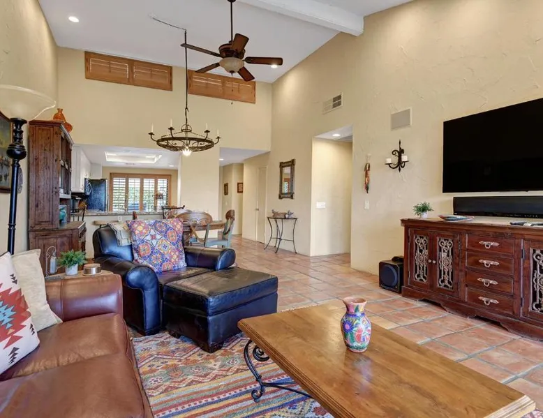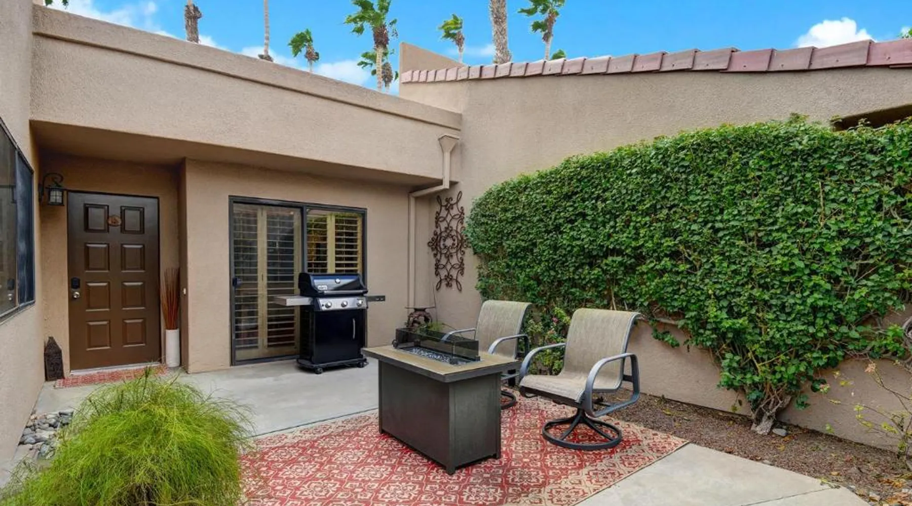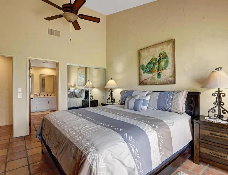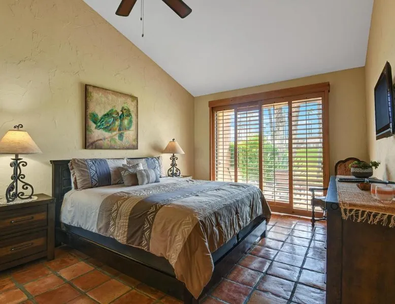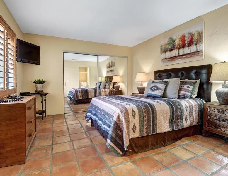 Spacious Accommodations: VS642 -Desert Hacienda - Alice Lodging in Palm Desert offers a spacious holiday home with two bedrooms and two bathrooms. The property features a private entrance and a fully equipped kitchen. Outdoor Amenities: Guests can enjoy a seasonal outdoor swimming pool, a terrace, and a lush garden. The outdoor seating area provides a relaxing space, while the hot tub offers a perfect retreat. Convenient Facilities: The holiday home provides free WiFi, air-conditioning, and a washing machine. Additional amenities include a casino, hot tub, and free on-site private parking. Nearby Attractions: Palm Springs International Airport is 13 mi away. Saks Fifth Avenue Palm Desert is 6.2 mi, while Escena Golf Club is 14 mi from the property. Guests will have a special experience as the holiday home provides a hot tub. Featuring a private entrance, this spacious holiday home also consists of 2 separate bedrooms and 2 bathrooms with a bath and a hairdryer. Guests will find a stovetop, a refrigerator, a dishwasher and kitchenware in the fully equipped kitchen. The holiday home also offers a barbecue. This air-conditioned holiday home is consisted of of a dining area, a TV with streaming services a washing machine and outdoor furniture. The unit offers 2 beds.