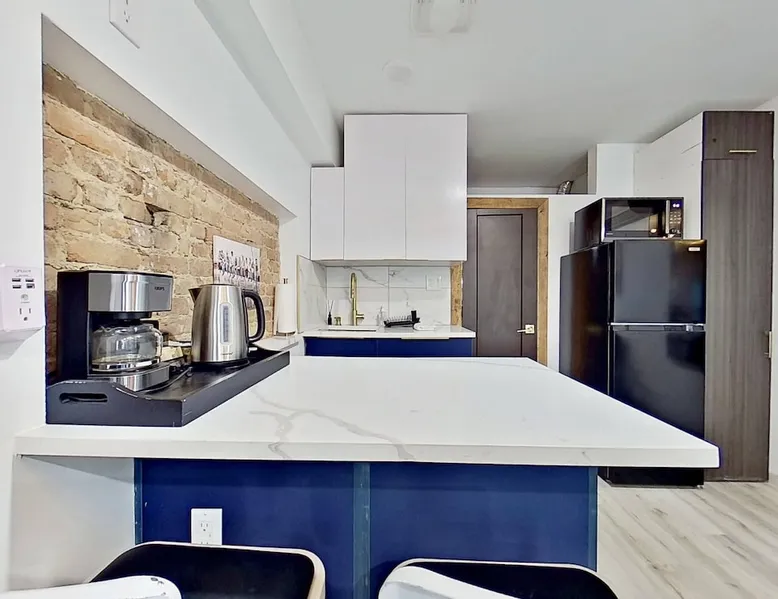 The host will share some area. Shared kitchen includes cooktop, microwave, dishes, coffee, and tea. Private bedroom in Bushwick with a full bathroom, king bed, desk, smart TV, A/C, heat, and fast WiFi. Linens, towels provided. Small pets welcome. Great location in a busy, walkable neighborhood. Guest access Private taxi $45 to JFK/LGA (30 mins) and quick subway access— All subways are 5-15 minutes walk. J, M, Z, L You can to nearby cafes, bars, restaurants, nightclubs, galleries, grocery stores, and laundry. During your stay Shared apartment with the host and the room is 100% private. Other things to note Shared apartment with the host and the room is 100% private. Registration Details OSE-STRREG-0002204