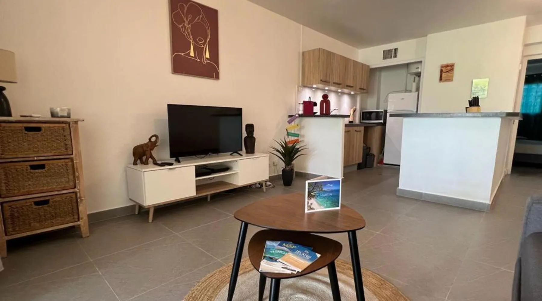 Elegant Accommodations: Ti case Baie nettlée in Marigot offers a comfortable apartment with one bedroom, a bathroom, and a spacious living room. Guests enjoy free WiFi, a swimming pool with stunning views, a lush garden, and a terrace. Convenient Amenities: The property features free on-site private parking, ensuring easy access for all visitors. The apartment includes a fully equipped kitchen, providing all necessary facilities for a pleasant stay. Prime Location: Located on Rue de Sandy Ground, the apartment is a short walk from Nettle Bay Beach and Petite Baie Beach, each 1.2 mi away. Baie Rouge Beach is also 1.2 mi from the property. Boating opportunities enhance the surrounding area. Highly Rated by Guests: Guests appreciate the excellent facilities and the attentive reception staff, who speak English and French. The apartment is highly rated for its comfortable accommodations and excellent services. The unit has 2 beds.