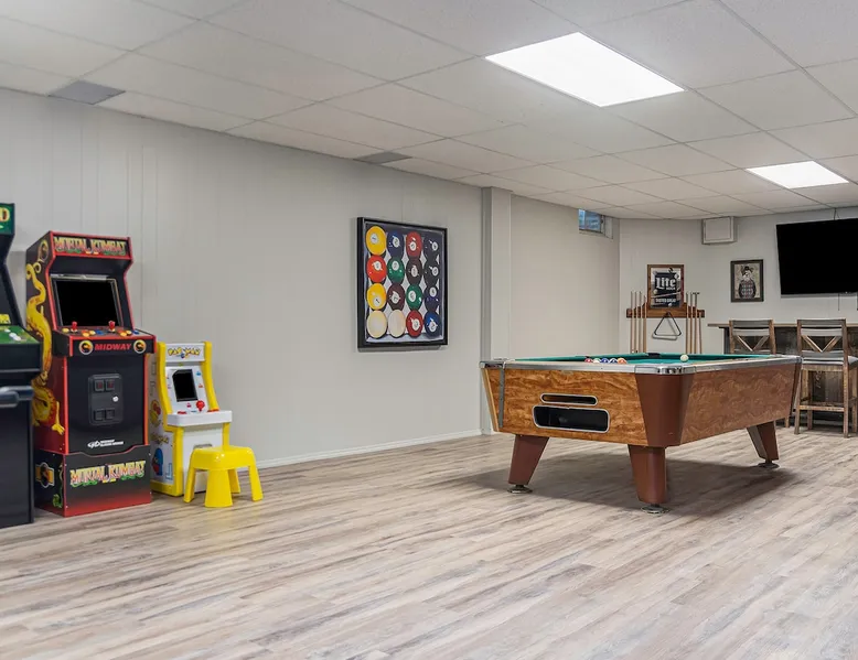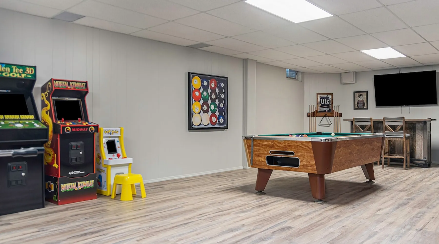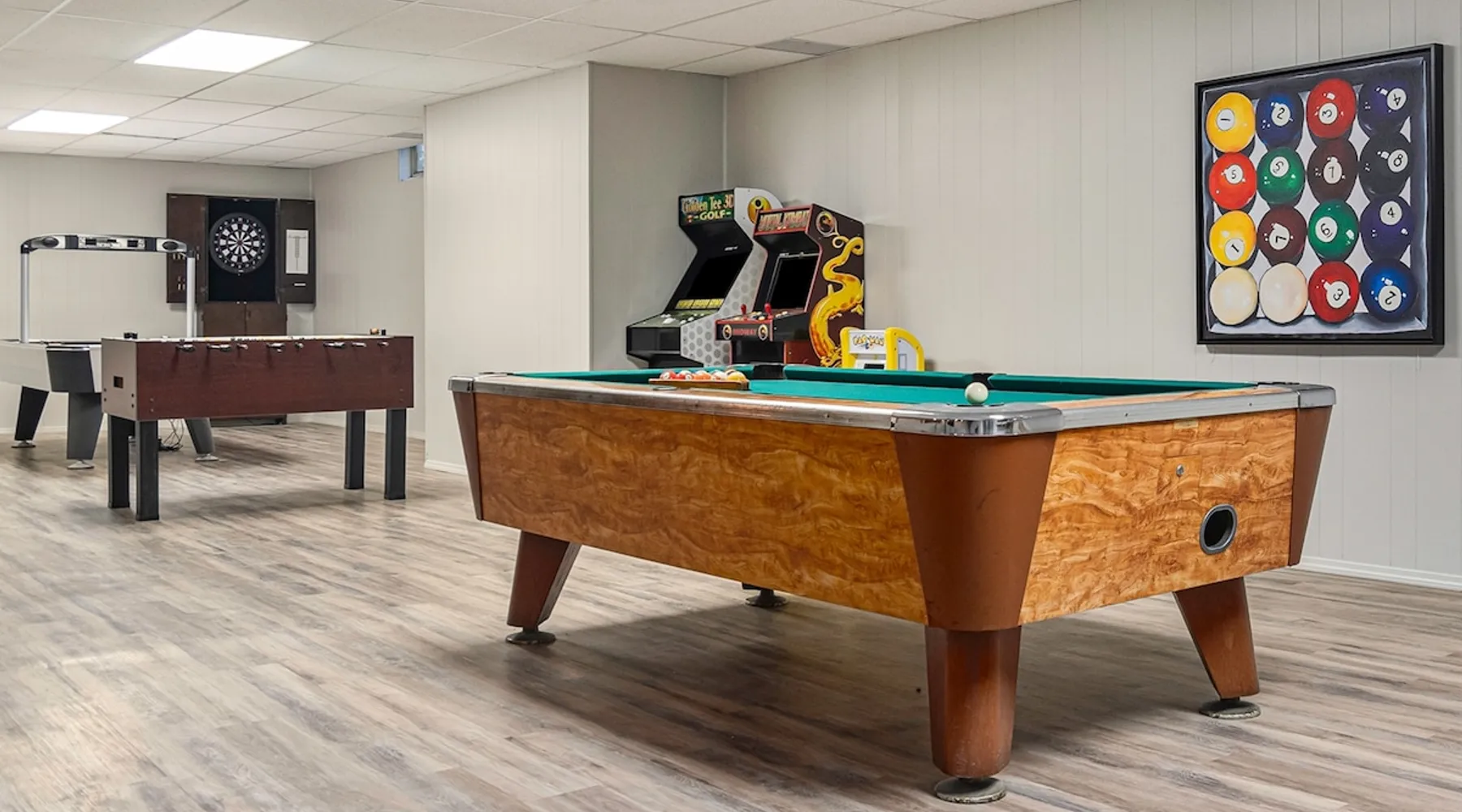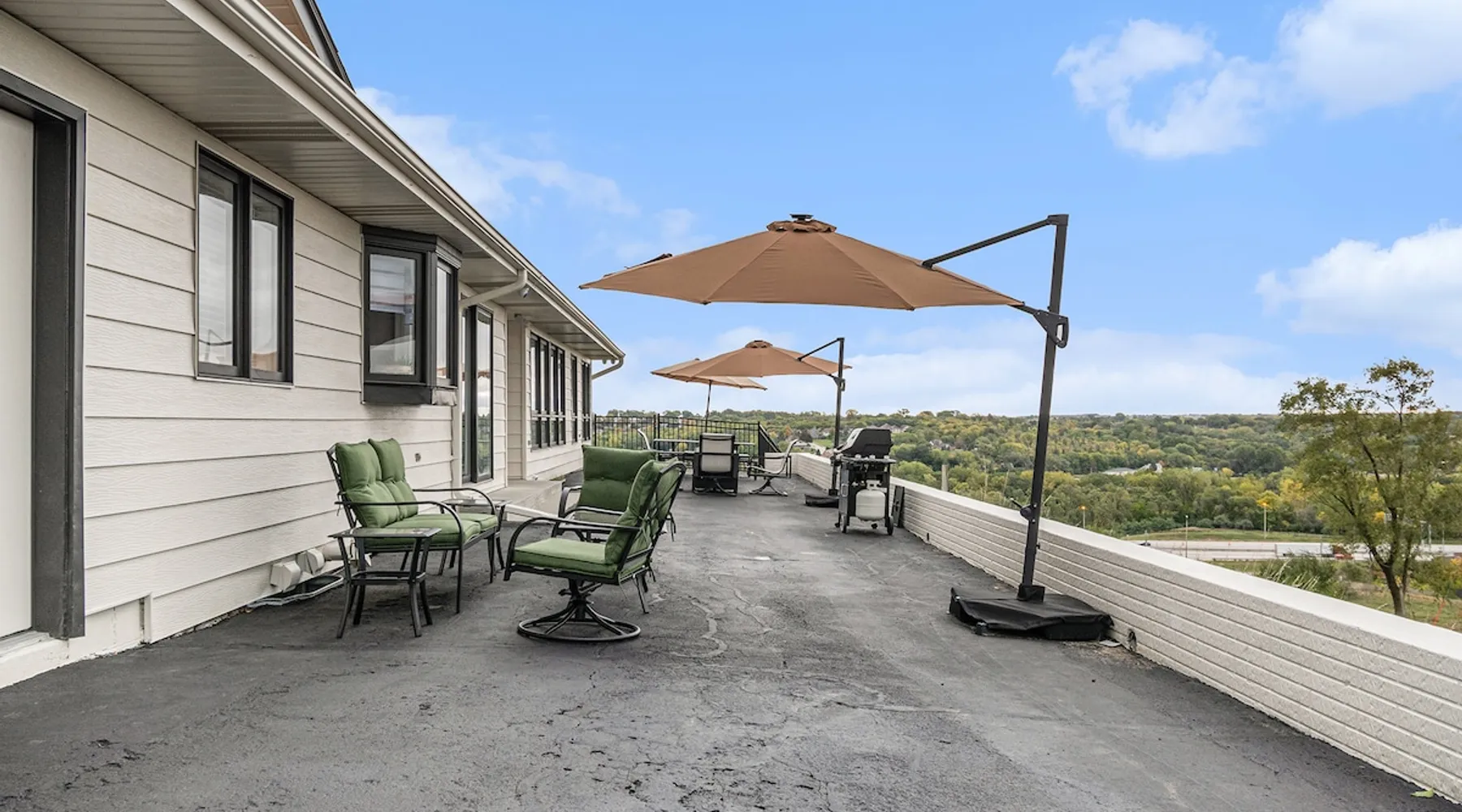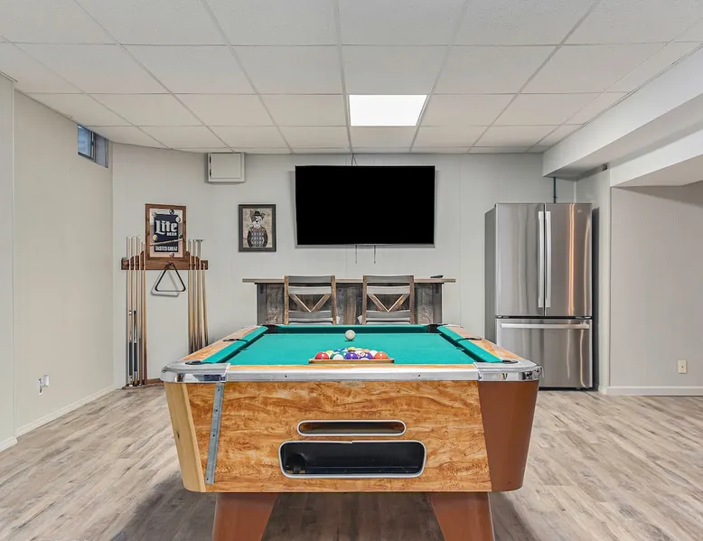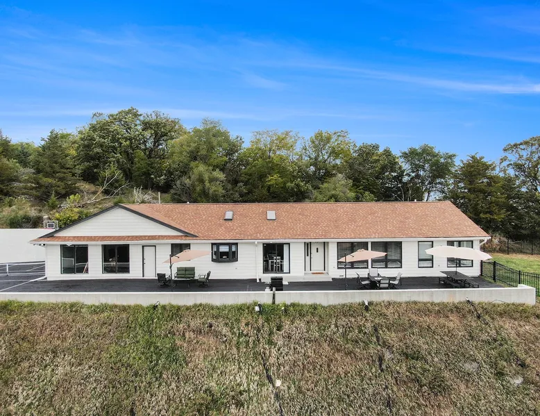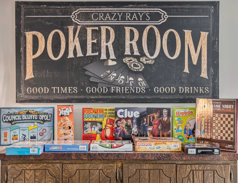 Enjoy the ultimate family getaway, only 10 minutes from Downtown Omaha! This ranch-style house is set on almost 3 acres of fun, with plenty of activities for everyone. Whether you like volleyball, horseshoes there's something for all ages. Since there are no neighbors close by, it's perfect for family reunions and big parties. Plus, it's super close to Downtown and the Zoo, so you can start your Omaha adventure right away! The space ➝ Enjoy nearly 3 acres of hilltop paradise in this ranch-style home, perfect for family fun! ➝ Outdoor activities: Volleyball, Horseshoe, Bags, Full Pickleball Court and Basketball ➝ Indoor Activities: Pool Table, Foosball table, Air Hockey, Darts, Poker Table & Board Games ➝ Outdoor Grill and Patio - fenced in backyard ➝ Family Friendly: Pack'n Play, highchair and kids dishware provided (Pack n' Play only comes with the padding from the box, and no beddings) ➝ Free off-street parking ➝ Fully stocked kitchen with coffee provided ➝ In home washer + dryer w/ detergent and dryer sheets provided ➝ 1 King Bed + 5 Queen beds ➝ Self check in with Smart Lock ➝ Central A/C and heat ➝ Main Floor: 4 bedrooms + 2.5 bathrooms ➝ Basement: 1 bedroom + 1 bathroom ➝ Dog Friendly - up to 2 pups under 40lbs (must be included in the reservation- $60 per pet fee), sorry no cats. ➝ 10 Minutes to Zoo and Downtown ➝ 20 min from Omaha Airport Guest access Everything the light touches. : ) Other things to note Because of the location of the home being on a large hill, due to inclement weather we may need to cancel reservations if completely necessary. Please note: A rental agreement must be signed after booking to confirm house rules and safety terms. For security, camera is located at the front door. Feel free to reach out with any questions.