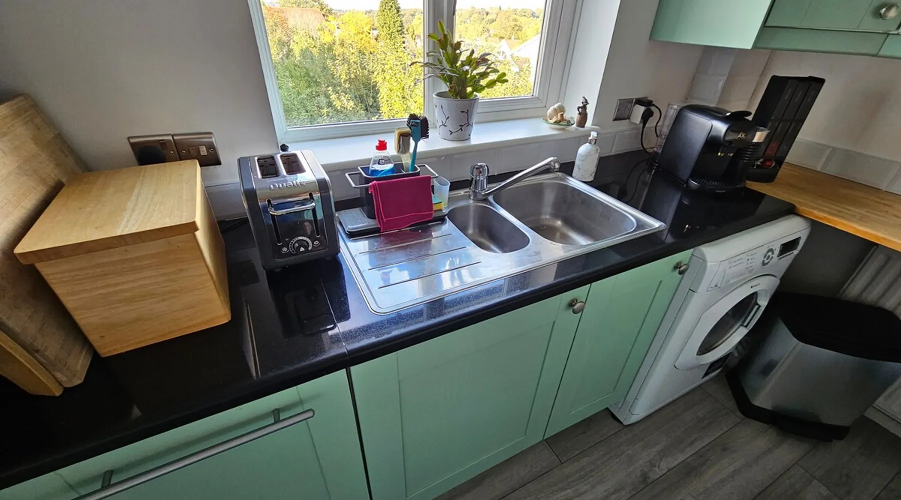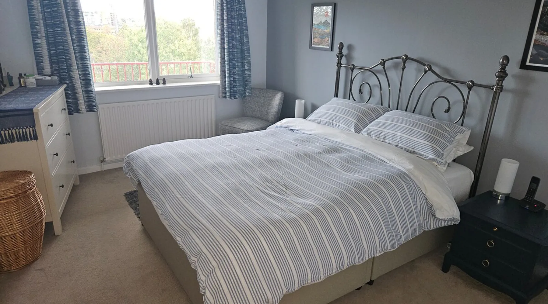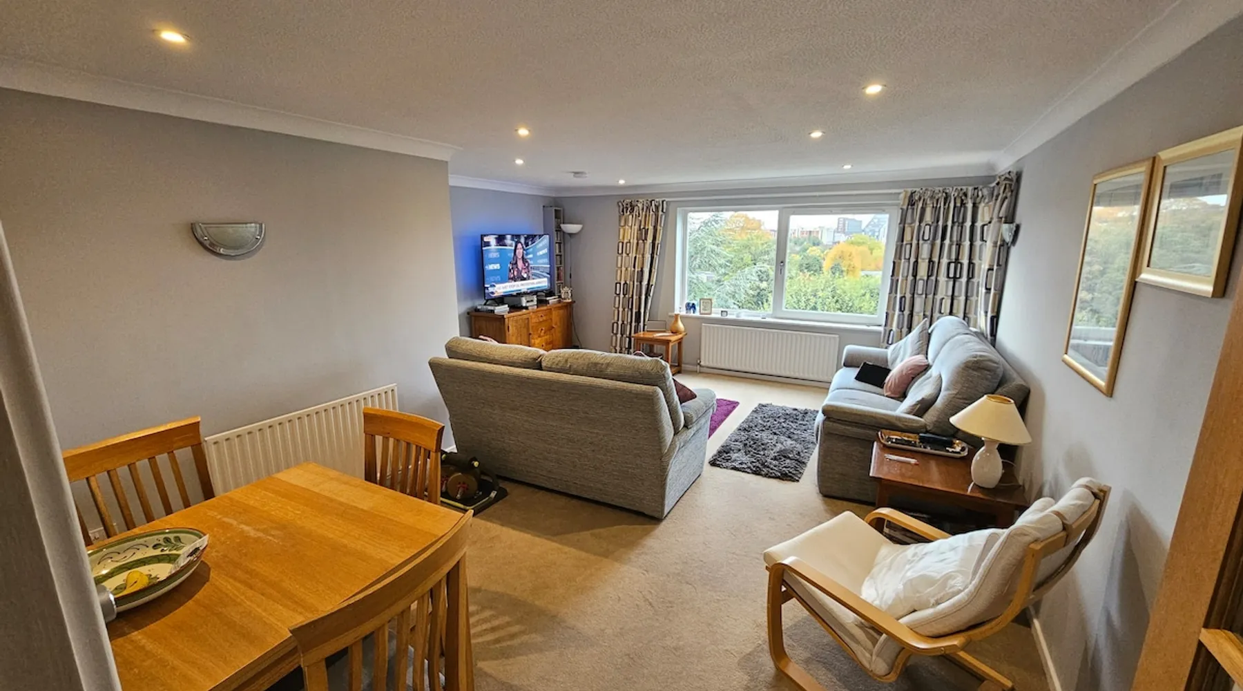 Fantastic bright and large penthouse flat with great views over Bromley. Large carpeted lounge with dining area. From the lounge you can locate the door onto balcony with great views. A fully loaded kitchen with neff hob, oven, microwave, fridge freezer, dishwasher and washer dryer leads off of the lounge.There is large bright bedroom which has a comfortable king bed, bedside cabinets and a fitted wardrobe. The fully tiled bathroom has a bath with power shower, toilet and fitted wash basin. The space Exceptionally large one bedroom flat in great location for central Bromley and transport links to London, Kent and beyond. Set in a prestigious block on the hill above Bromley Town centre. Lovely gardens and well kept communal areas make this a sought after location to stay. A quiet secure block and location Guest access Access to the flat is via the block main entrance with secure entry system. The flat is located on the 3rd floor via the nicely decorated communal hallway. Other things to note This is a quiet block where you will enjoy your stay and the peace and quiet