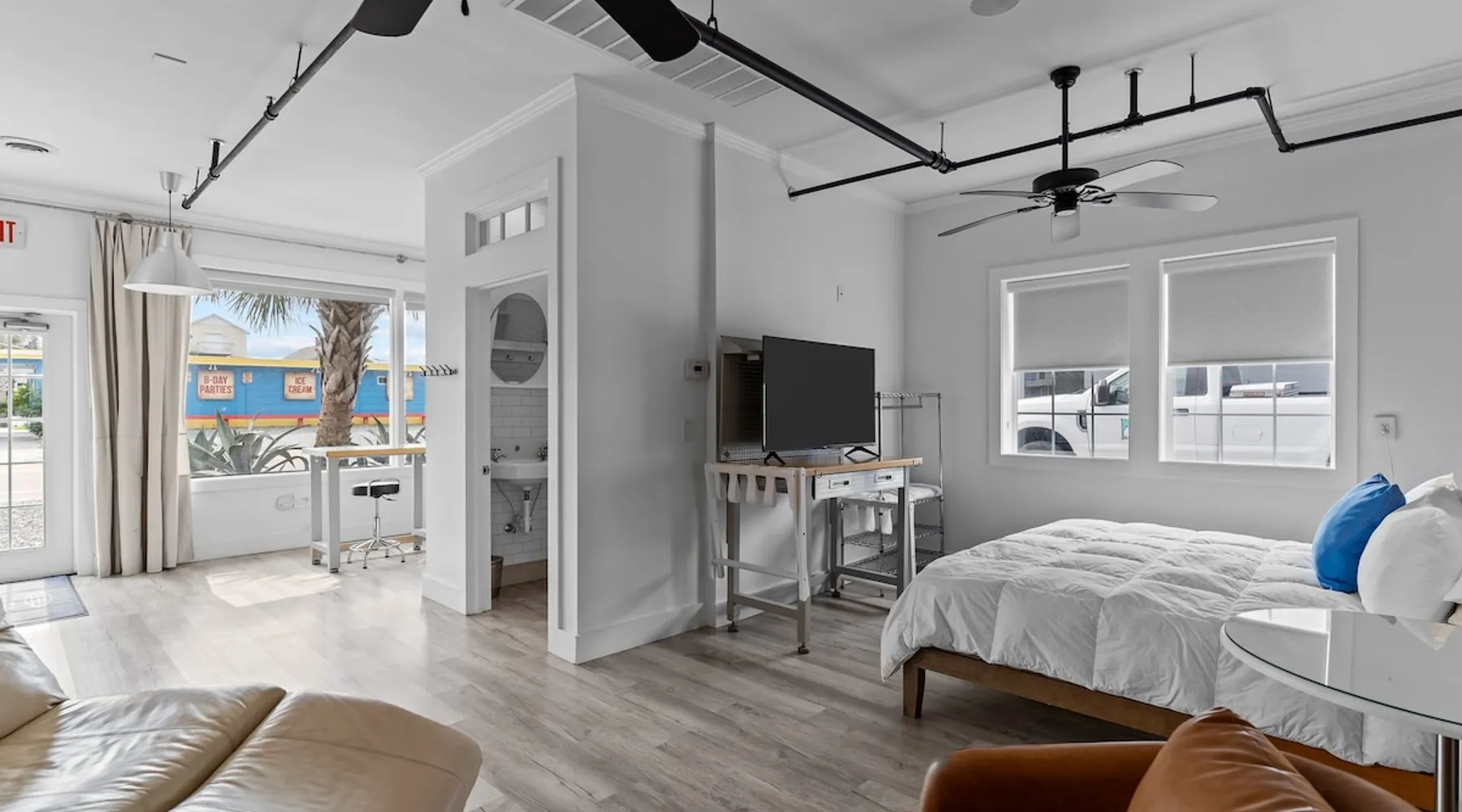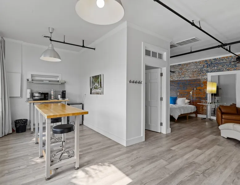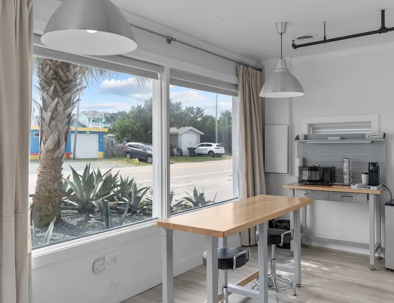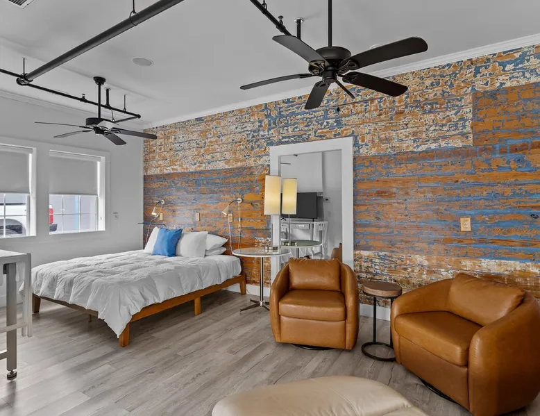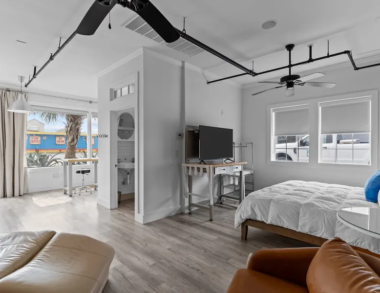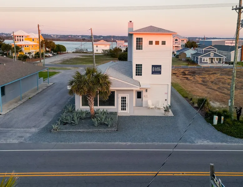 An enviable location in the heart of downtown Topsail Beach, the Guest House Topsail is walking distance to quaint stores, markets and galleries. You’ll also find beautiful beaches, peaceful parks, boat launches, fishing piers, picnic shelters and viewing decks nearby. The spacious Shore Suite is the perfect space for your getaway. This Suite features a large bar-style dining area, a King bed, and plenty of space to lounge. Guest House Topsail is managed by Carolina Resort Company.
