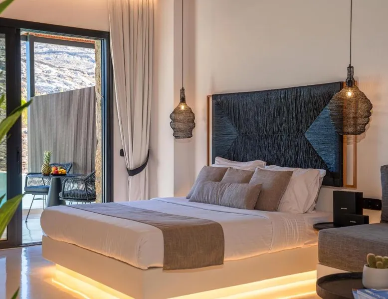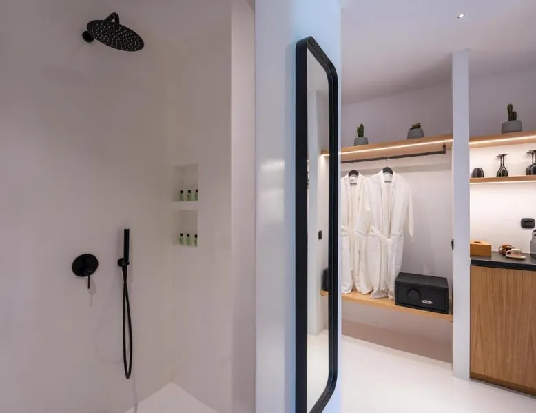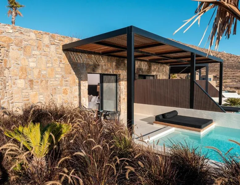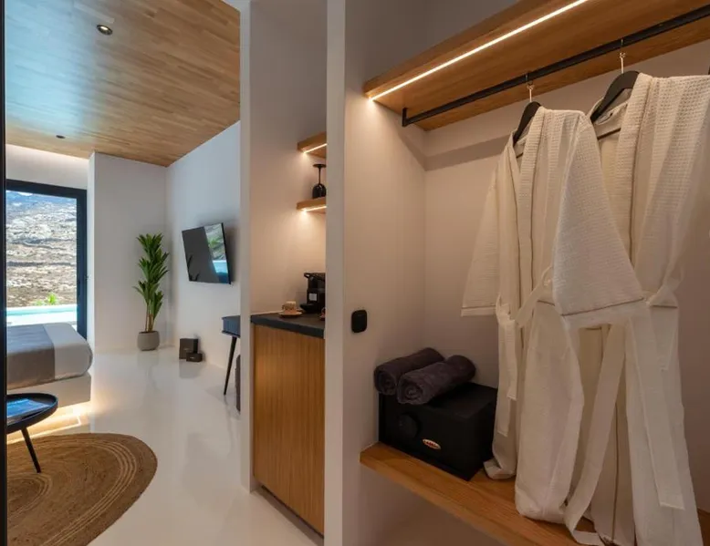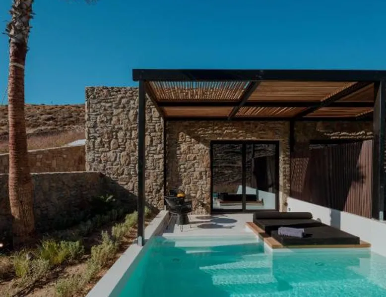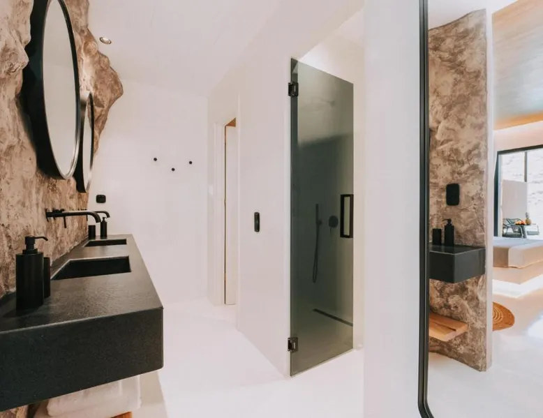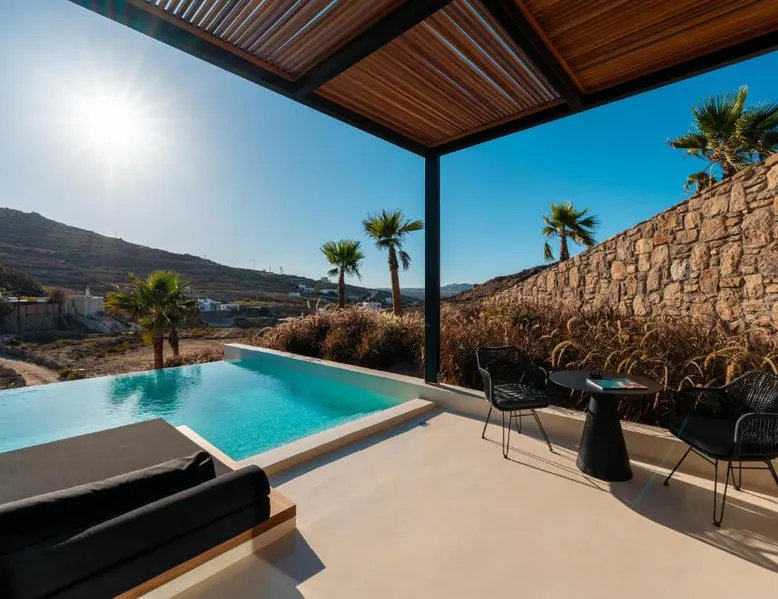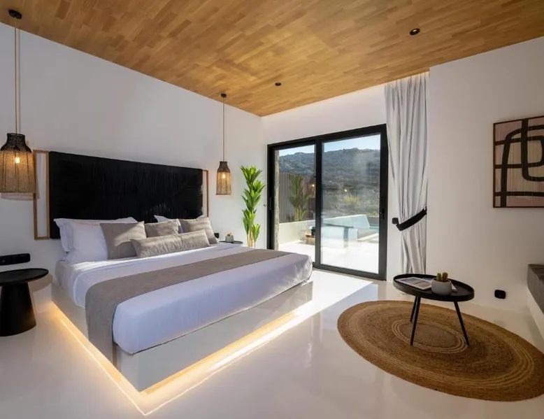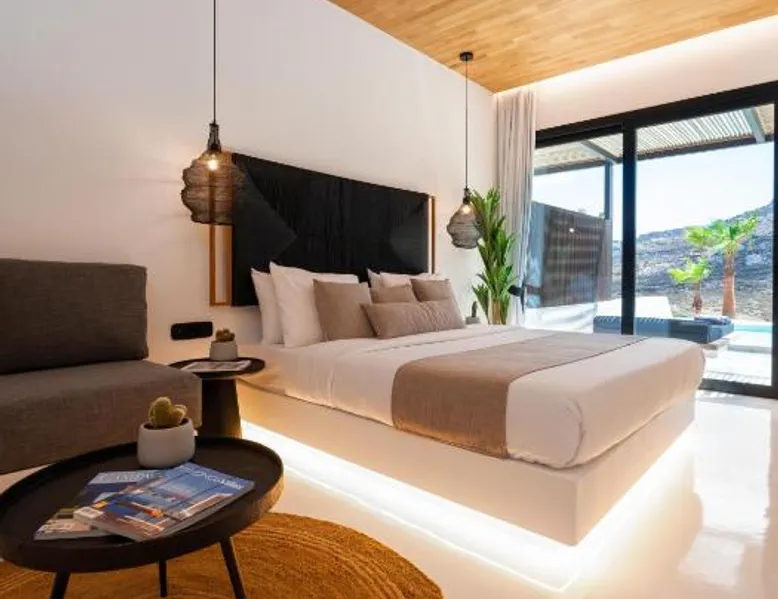Located in Ftelia, just a few steps from Ftelia Beach, Ftelia Black Villas offers luxurious accommodations with an outdoor infinity pool, a scenic-view plunge pool, private parking, a lush garden, and a sun terrace. Guests can unwind at our bar restaurant with panoramic views, indulge in our cave spa, or stay active in the 24/7 gym. Wellness services, including a massage room, are available for ultimate relaxation. Each elegantly designed room features an open-type wardrobe, a desk, a flat-screen TV, a private bathroom, and air conditioning. Upgrade to our King Suite for an exclusive outdoor jacuzzi. A daily breakfast buffet is served, and guests can enjoy airport transfers and room service. Free WiFi is available throughout the property. Panormos Beach is 1.1 mi from Ftelia Black Villas, while Agios Sostis Beach is 1.7 mi away. The nearest airport is Mykonos Airport, 5 mi from the hotel. Guests will have a special experience as the suite features a pool with a view. Featuring a private entrance, this air-conditioned suite consists of 1 bedroom and 1 bathroom with a walk-in shower and a bath. Boasting a terrace with garden views, this suite also provides soundproof walls and a flat-screen TV with satellite channels. The unit offers 2 beds.