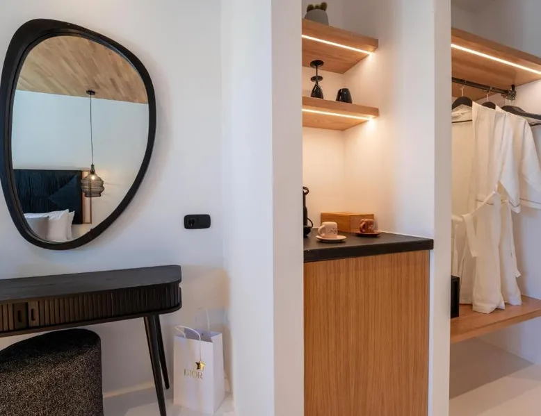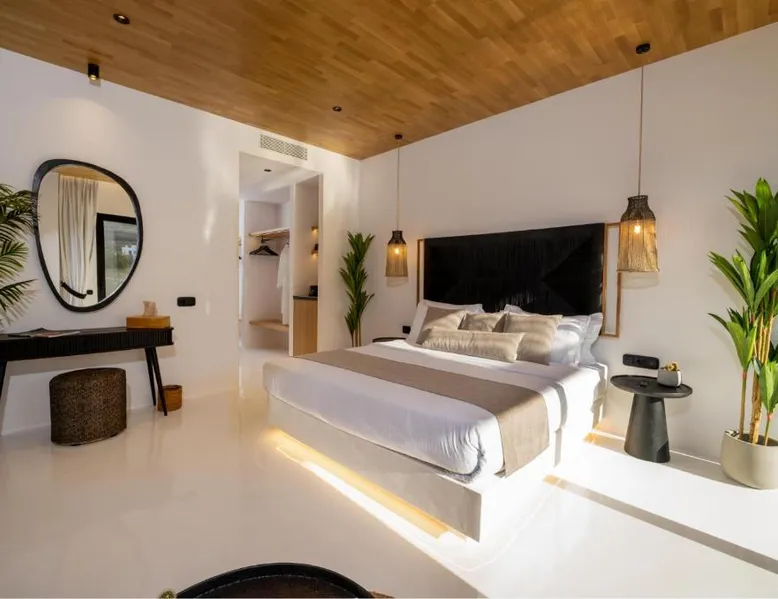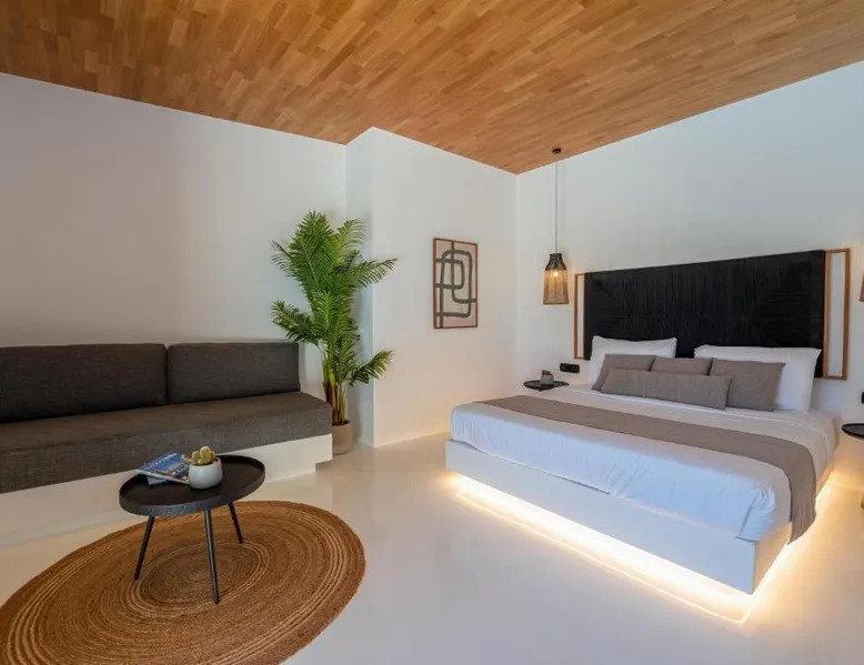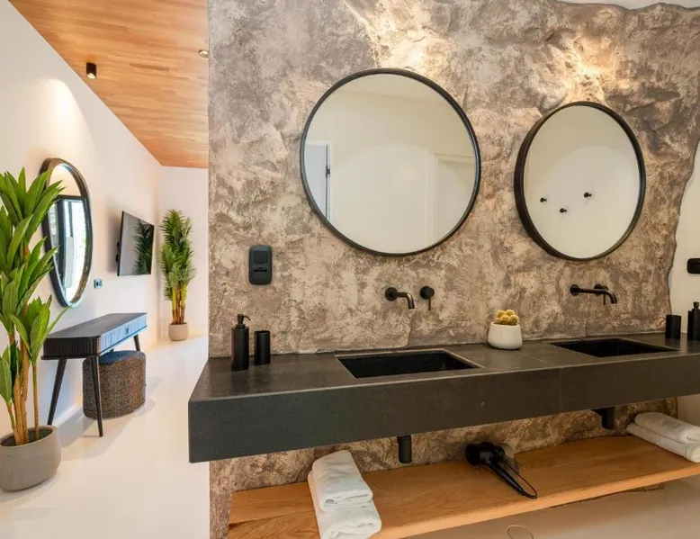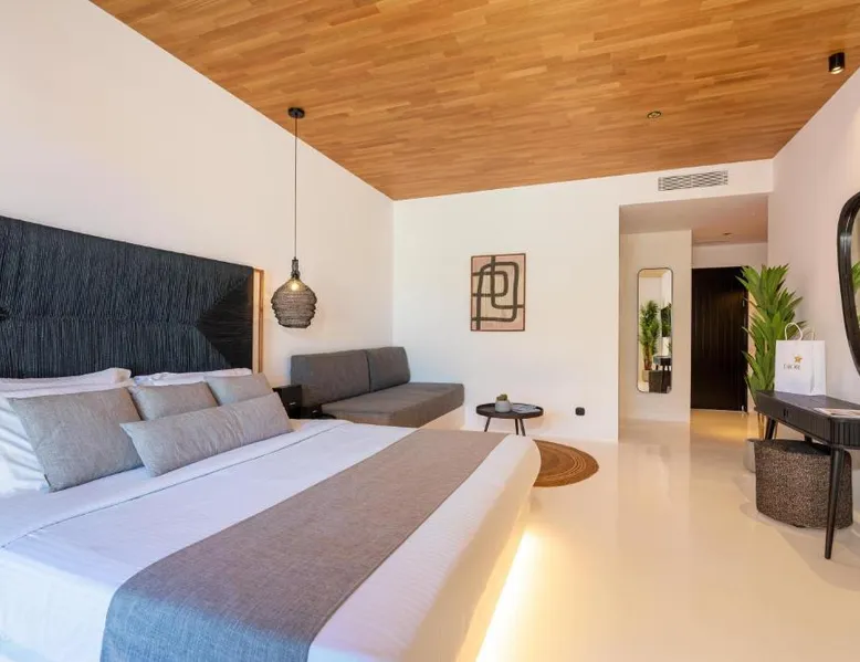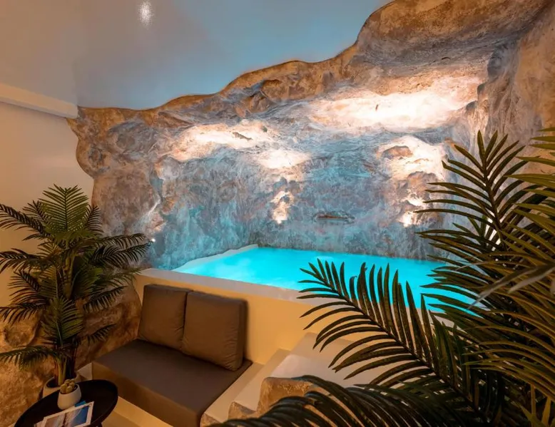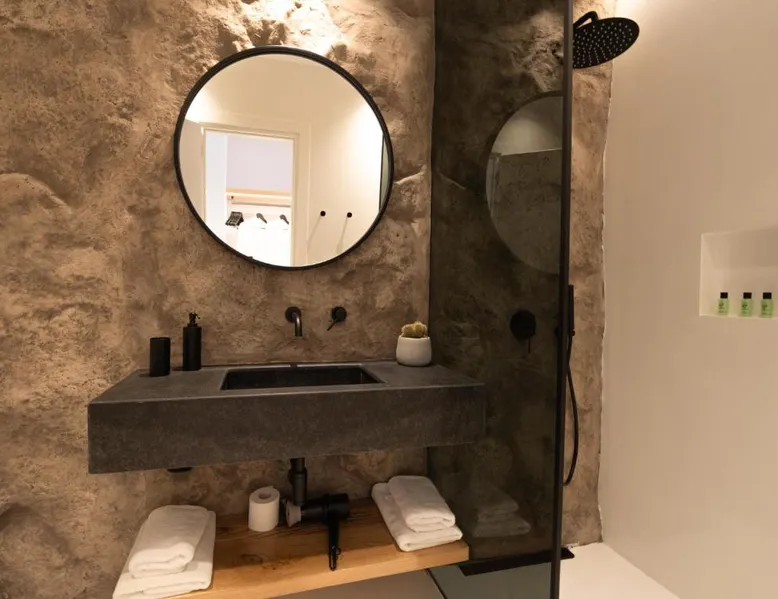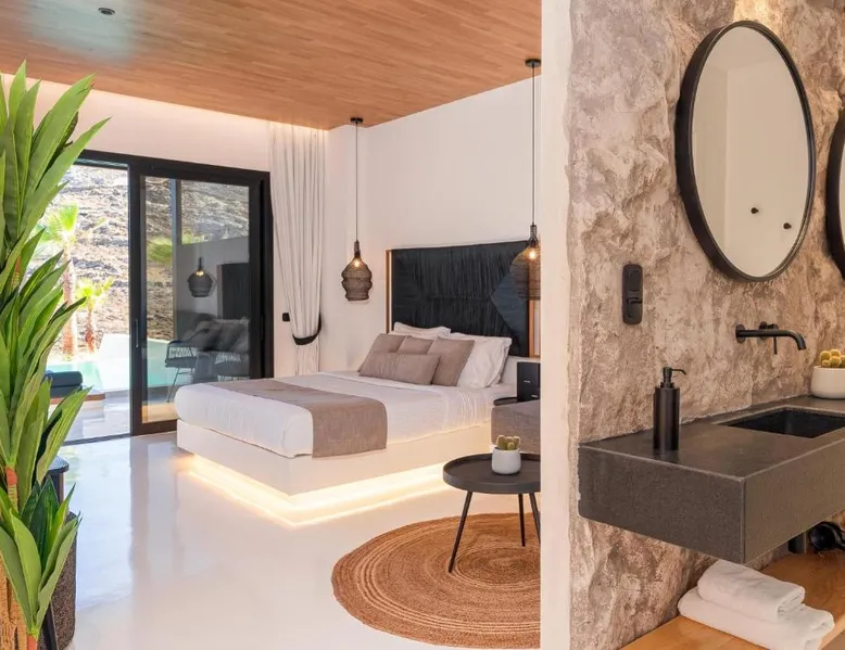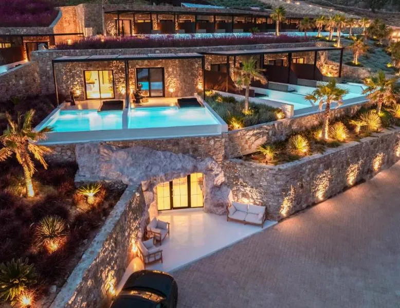 Located in Ftelia, just a few steps from Ftelia Beach, Ftelia Black Villas offers luxurious accommodations with an outdoor infinity pool, a scenic-view plunge pool, private parking, a lush garden, and a sun terrace. Guests can unwind at our bar restaurant with panoramic views, indulge in our cave spa, or stay active in the 24/7 gym. Wellness services, including a massage room, are available for ultimate relaxation. Each elegantly designed room features an open-type wardrobe, a desk, a flat-screen TV, a private bathroom, and air conditioning. Upgrade to our King Suite for an exclusive outdoor jacuzzi. A daily breakfast buffet is served, and guests can enjoy airport transfers and room service. Free WiFi is available throughout the property. Panormos Beach is 1.1 mi from Ftelia Black Villas, while Agios Sostis Beach is 1.7 mi away. The nearest airport is Mykonos Airport, 5 mi from the hotel. Guests will have a special experience as the suite features a pool with a view. Featuring a private entrance, this air-conditioned suite consists of 1 bedroom and 1 bathroom with a walk-in shower and a bath. Boasting a terrace with garden views, this suite also provides soundproof walls and a flat-screen TV with satellite channels. The unit offers 2 beds.